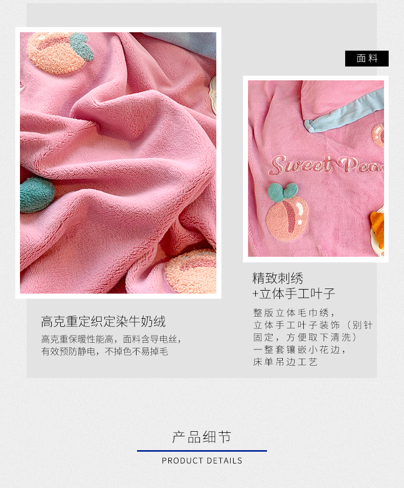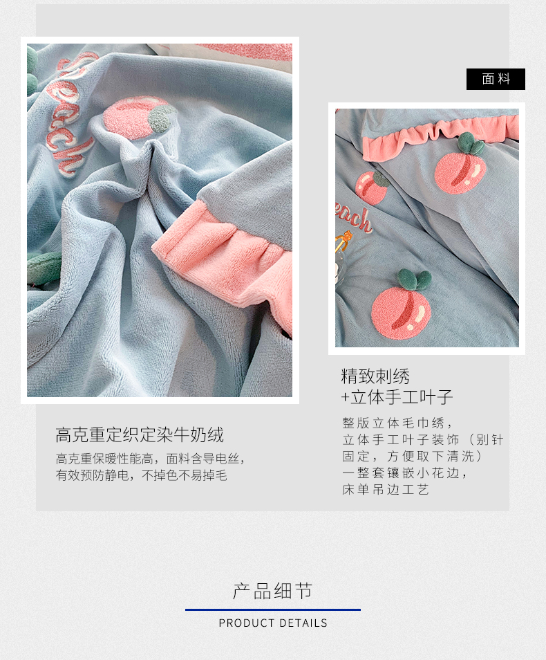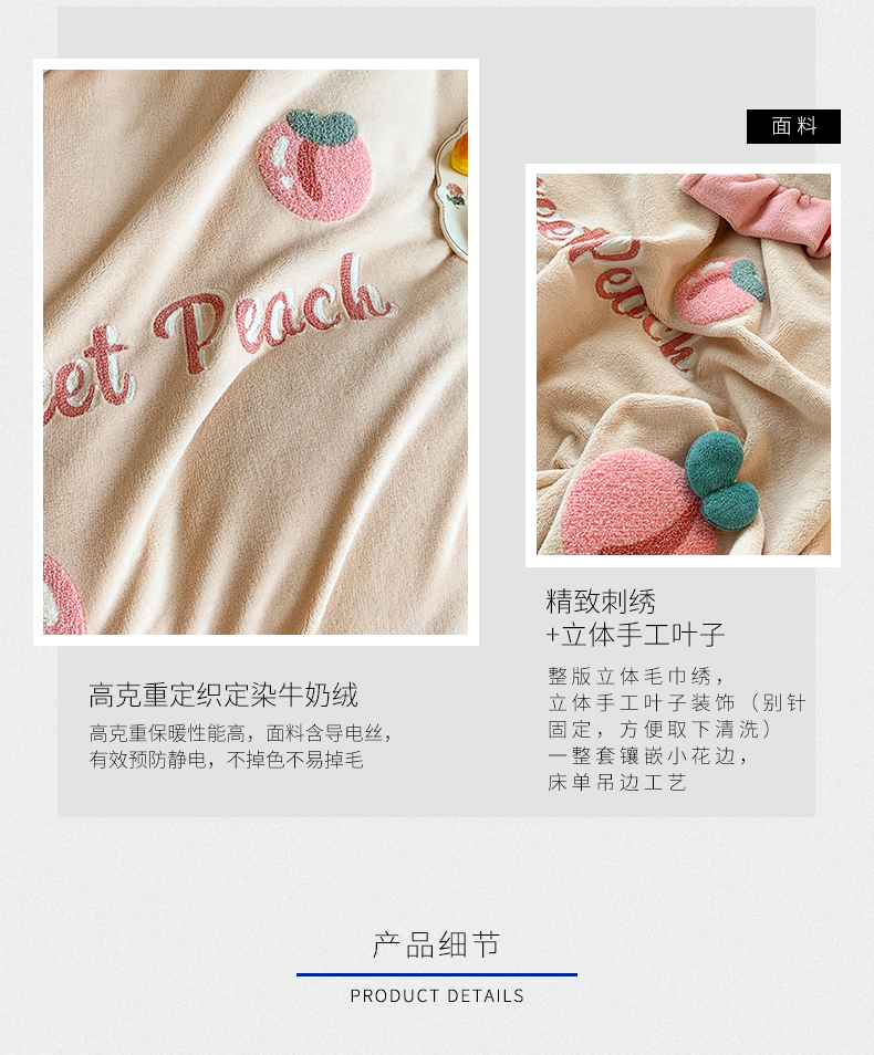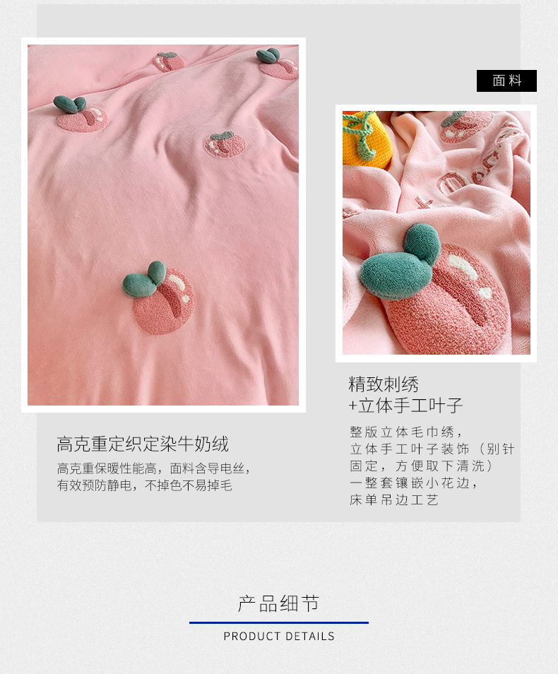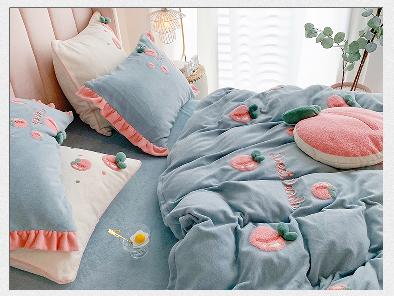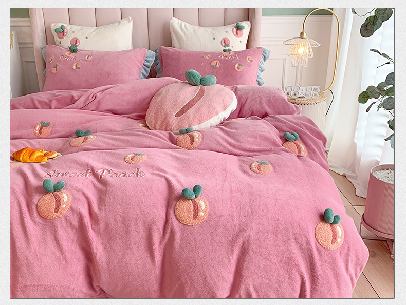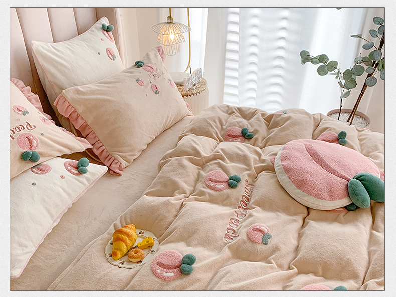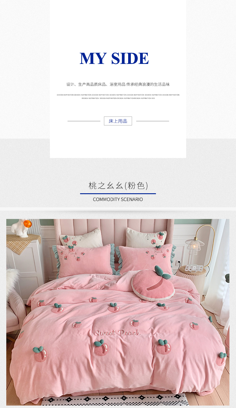 立体毛巾绣牛奶绒秋冬保暖四件套/三件套 御寒被套床单-桃之幺幺