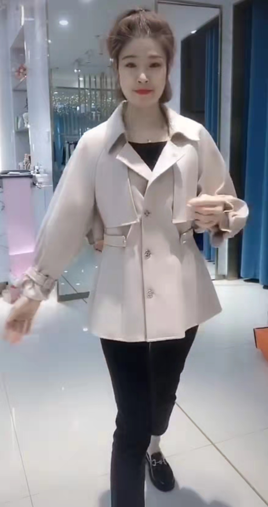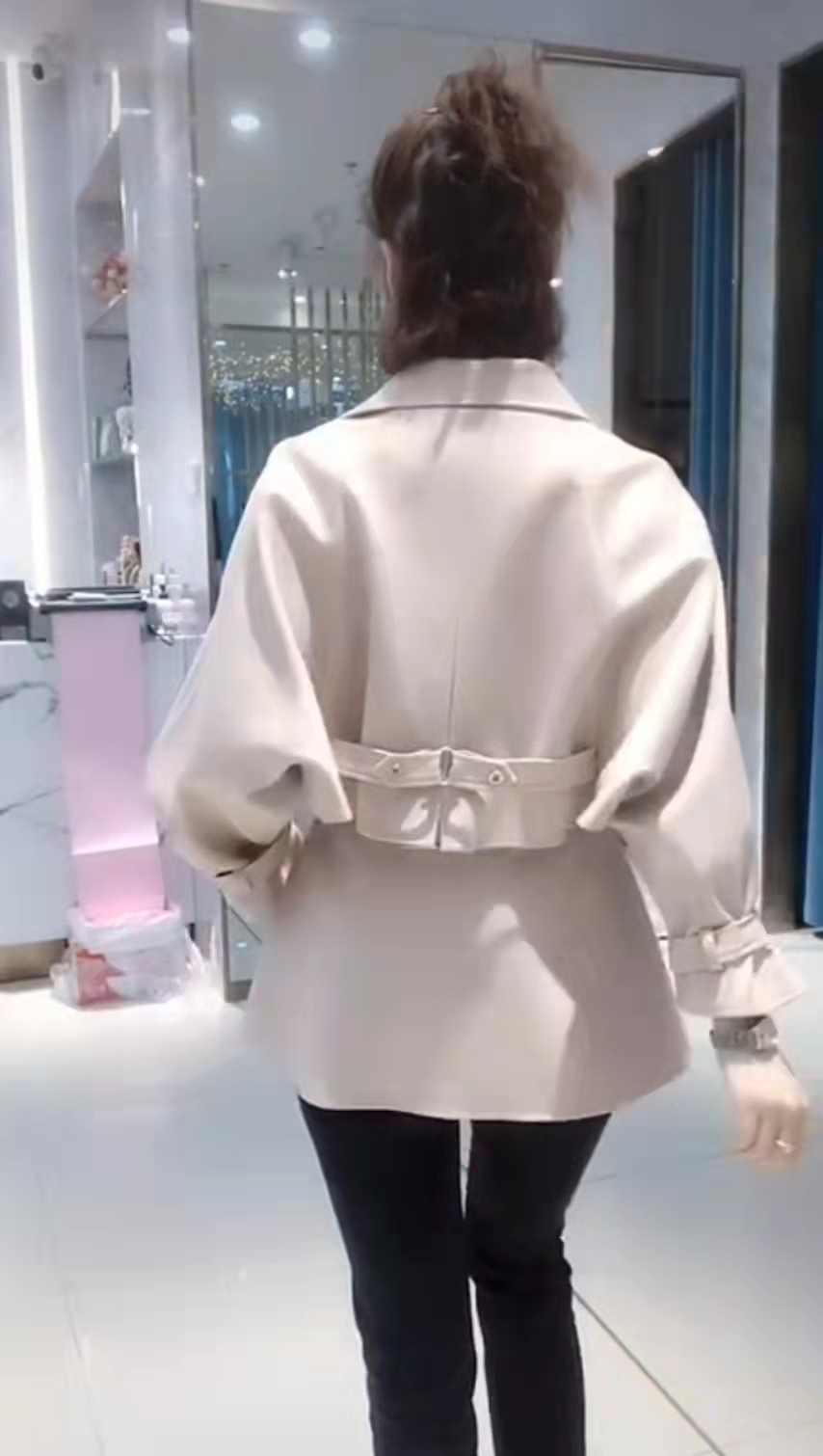 中九时尚短款风衣颜色米色咖色码数MLXLXXL面料聚酯纤维氨纶适合25-45年龄