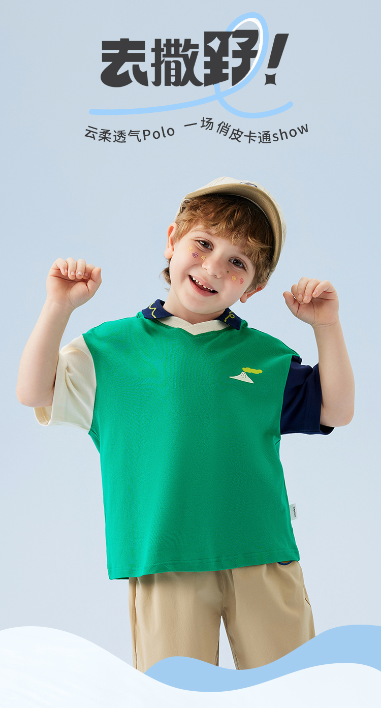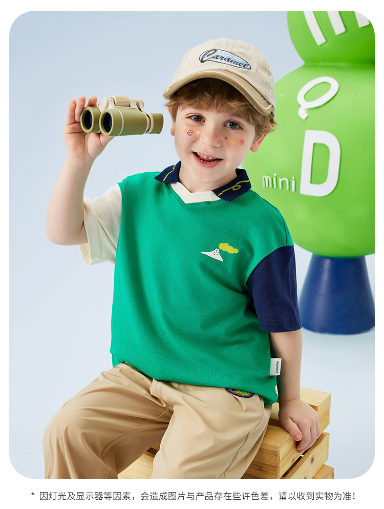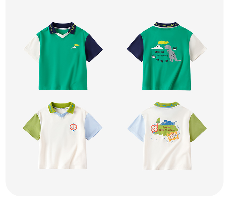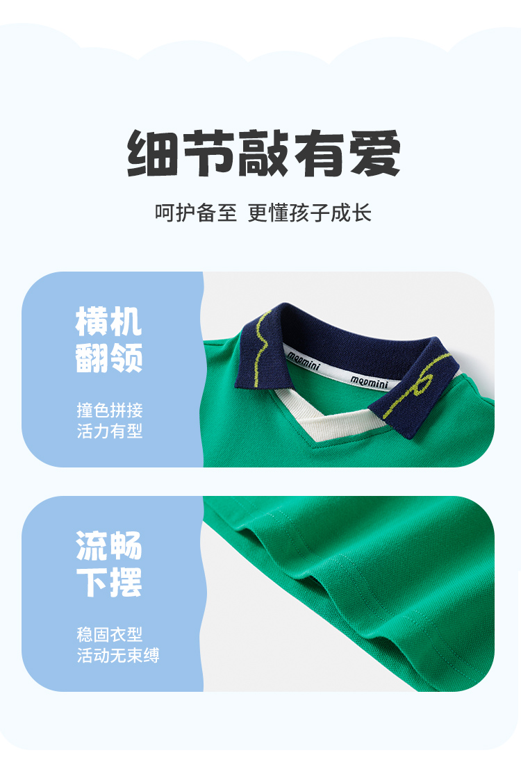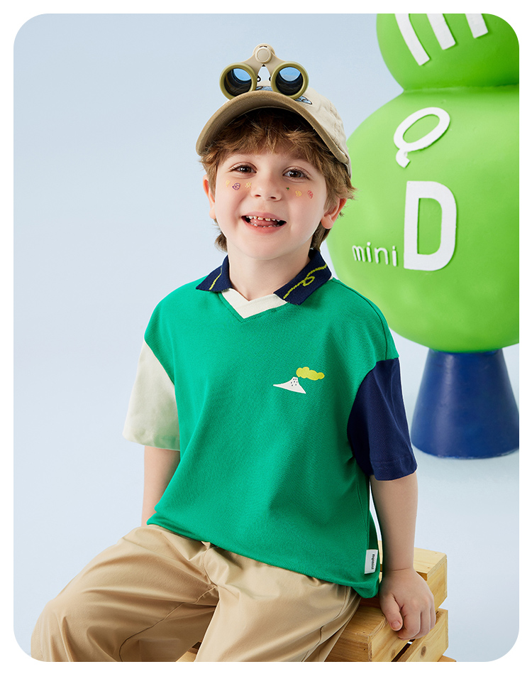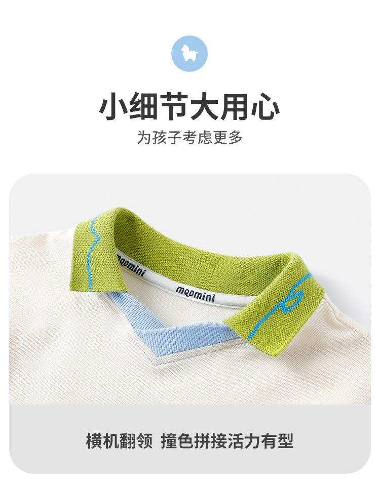 【云柔透气】【90-140】【MQDmini】男童短袖Polo衫夏季中小童撞色落肩袖T恤(95%棉 5%氨纶)