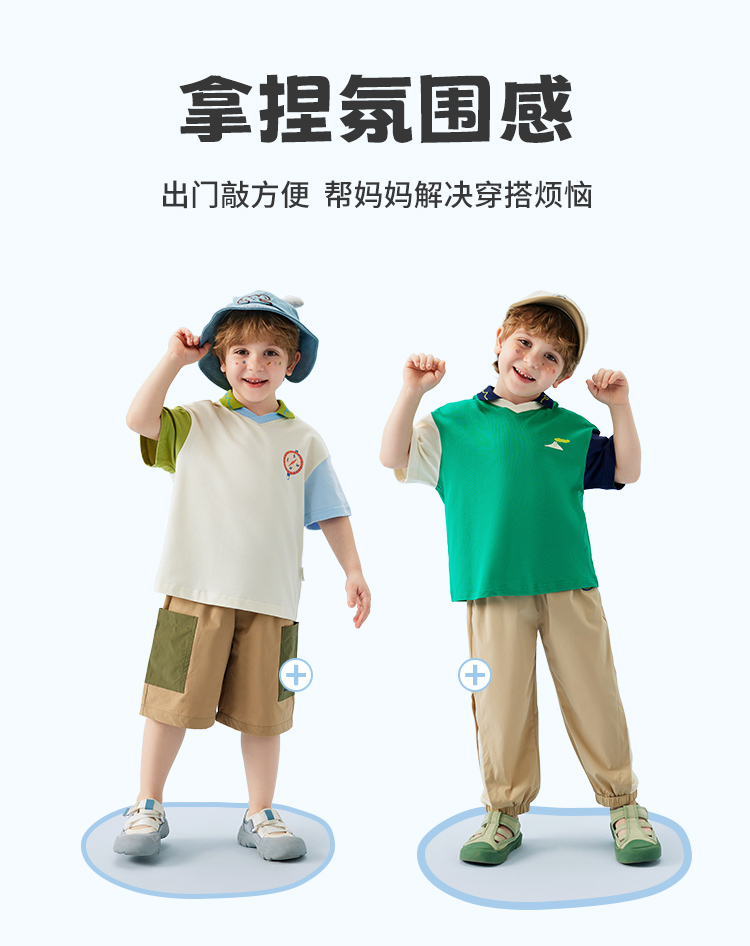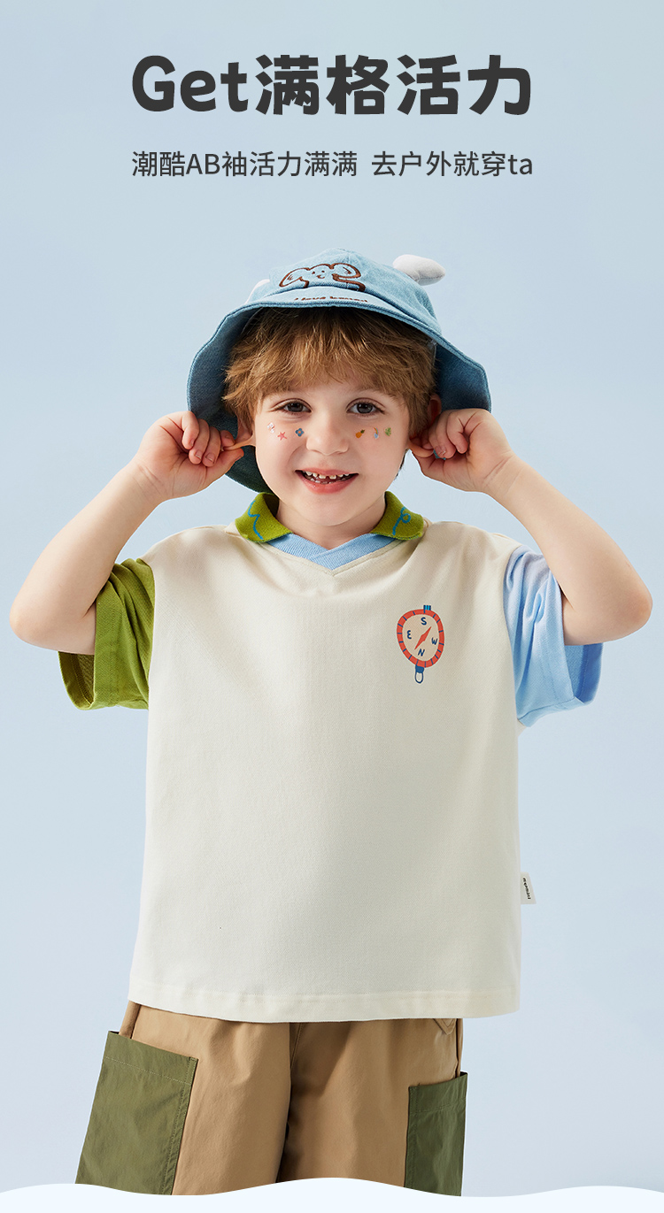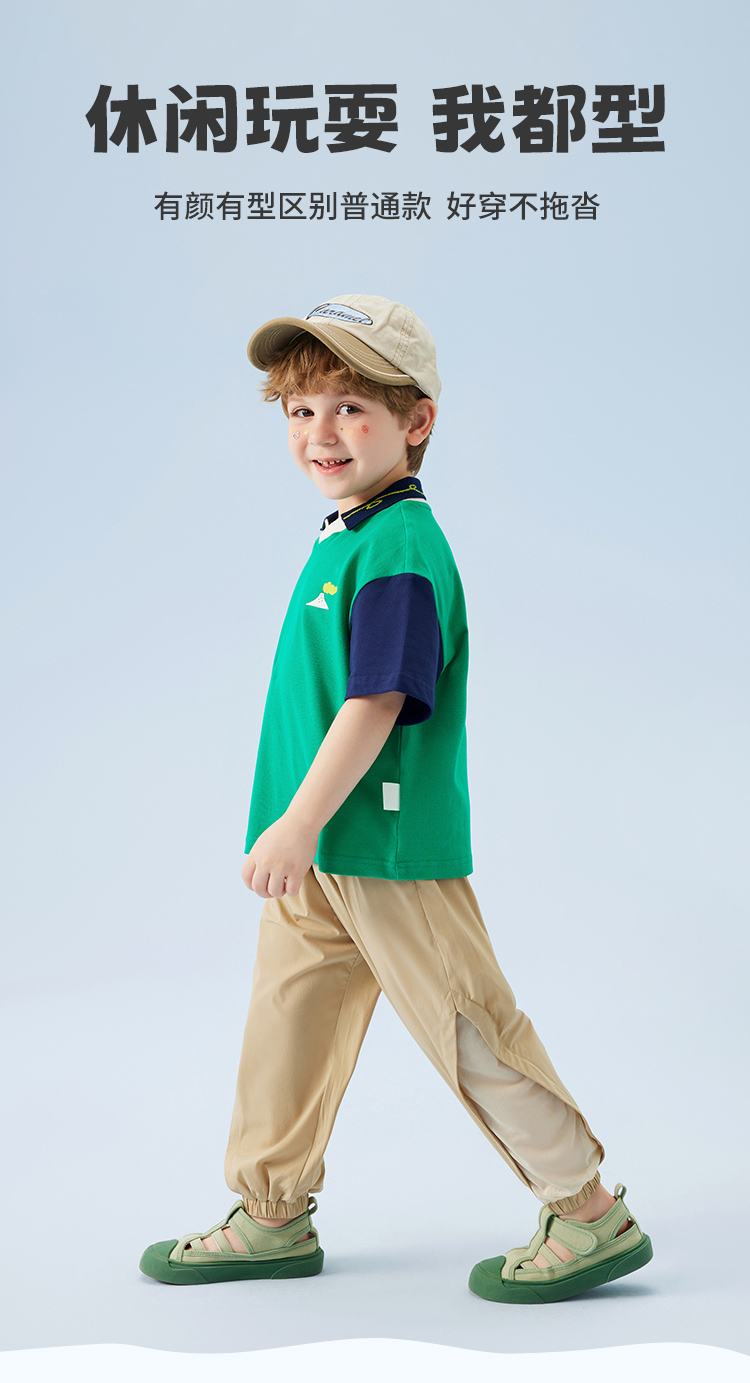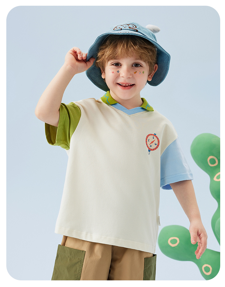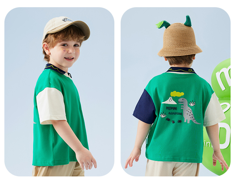 【云柔透气】【90-140】【MQDmini】男童短袖Polo衫夏季中小童撞色落肩袖T恤(95%棉 5%氨纶)