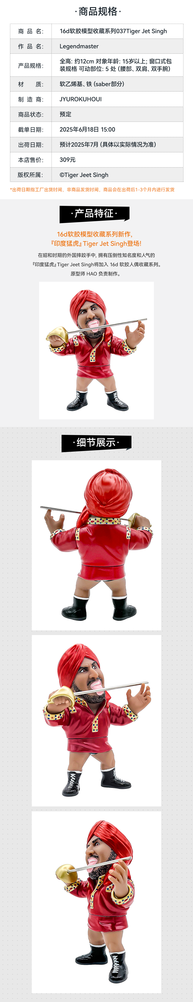 【GSC现货】16d软胶模型收藏系列037Tiger Jet Singh