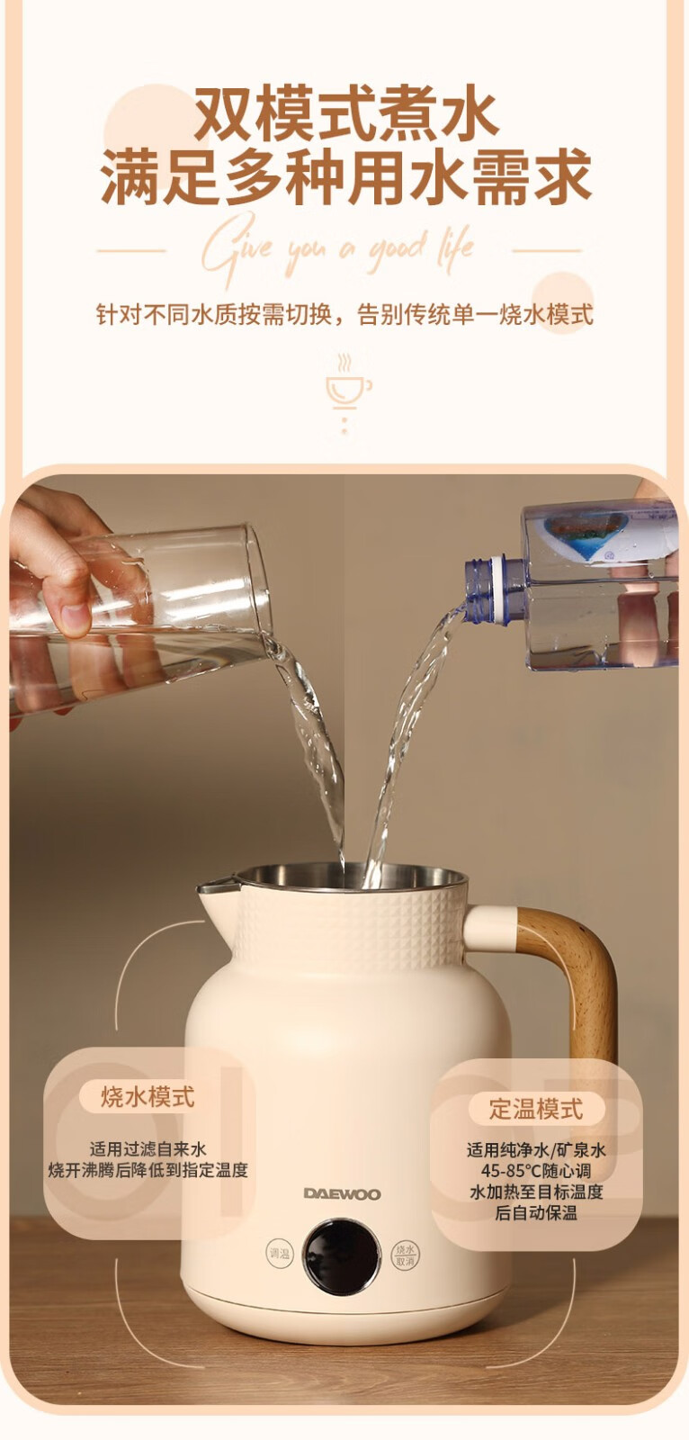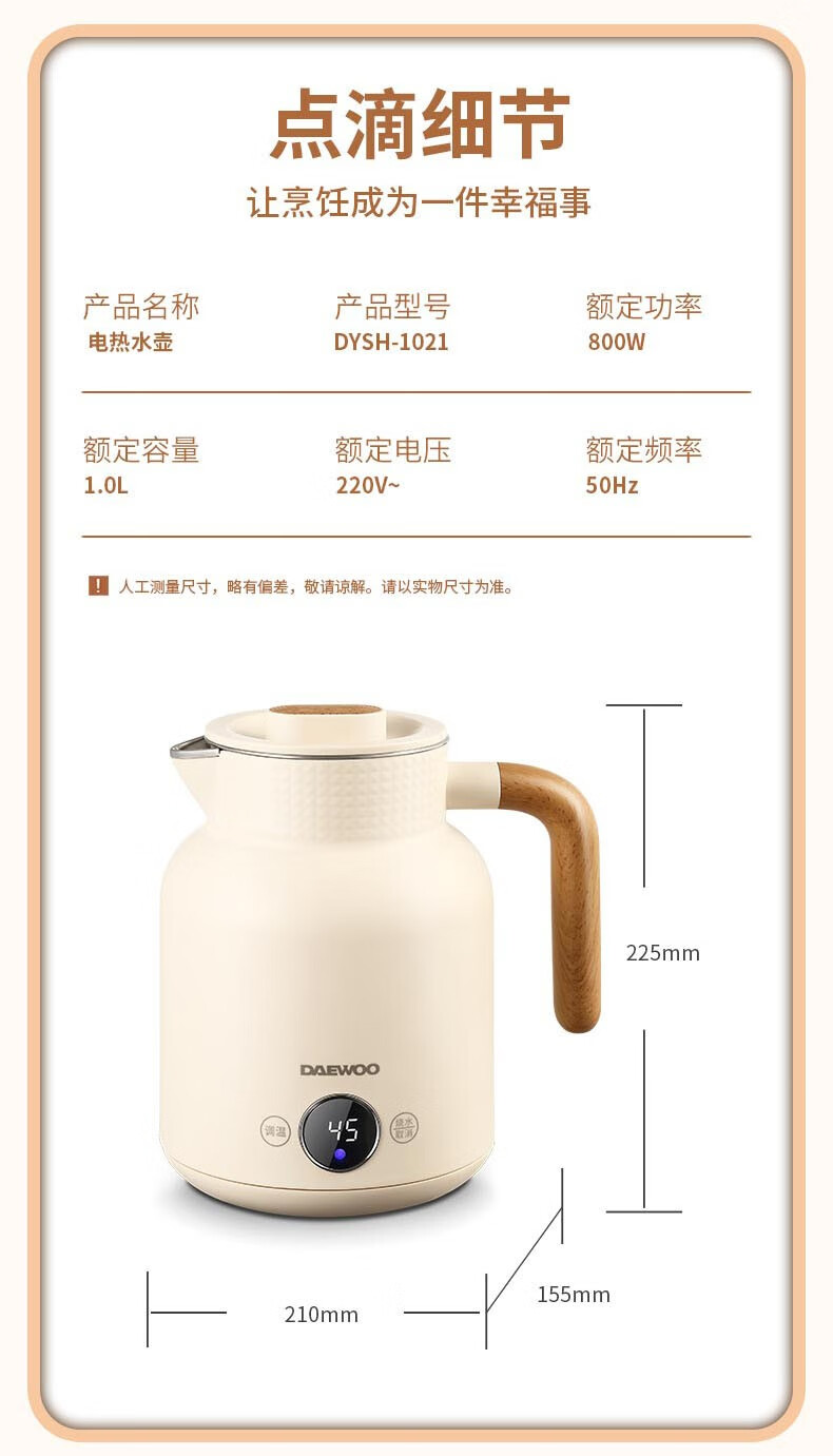 大宇(DAEWOO) 家用电水壶泡茶泡奶恒温双层防烫电热水壶DYSH-1021 DYSH-1021电热水壶