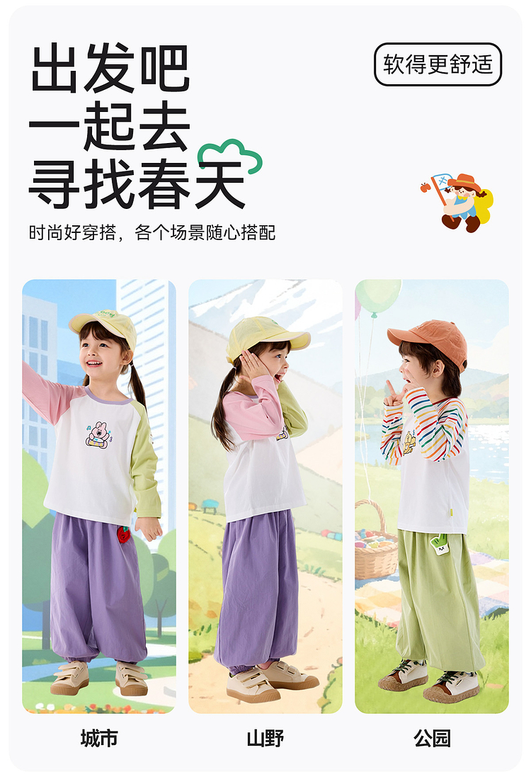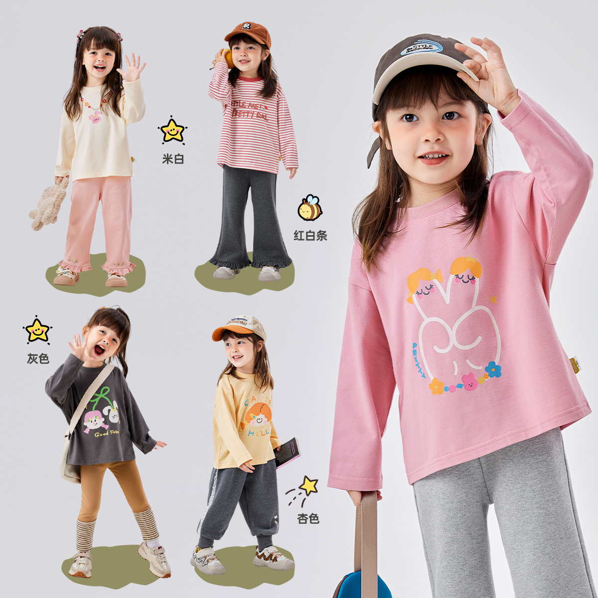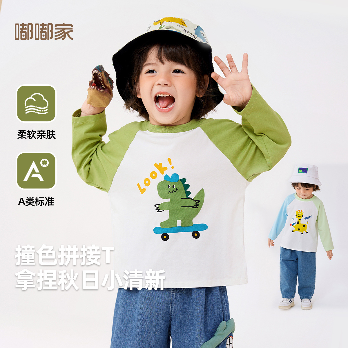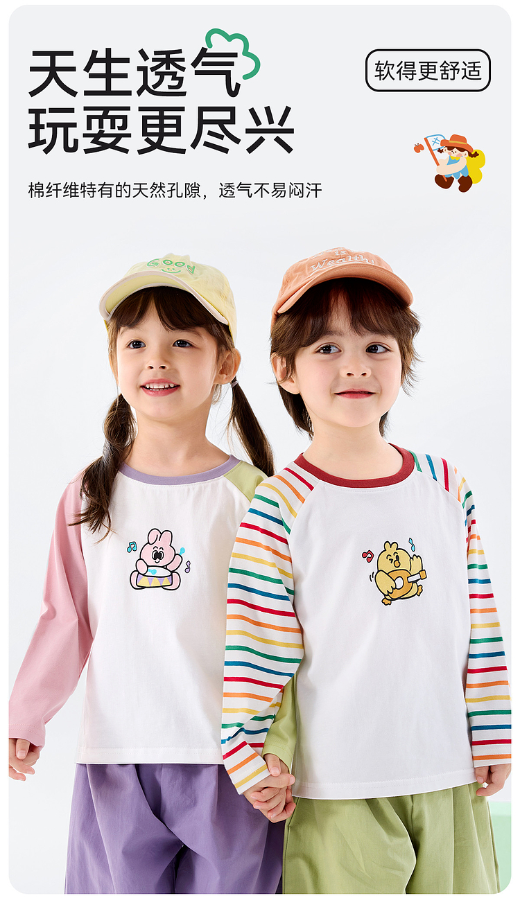 【69.9/3件-春款T恤合集】嘟嘟家宝宝T恤秋季儿童长袖男童卡通上衣女童打底衫★