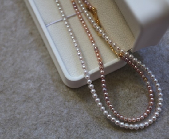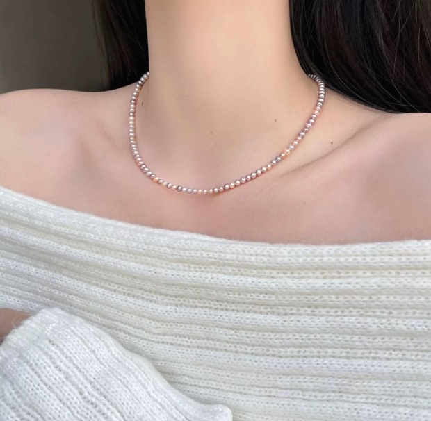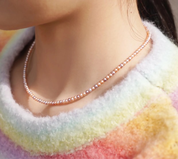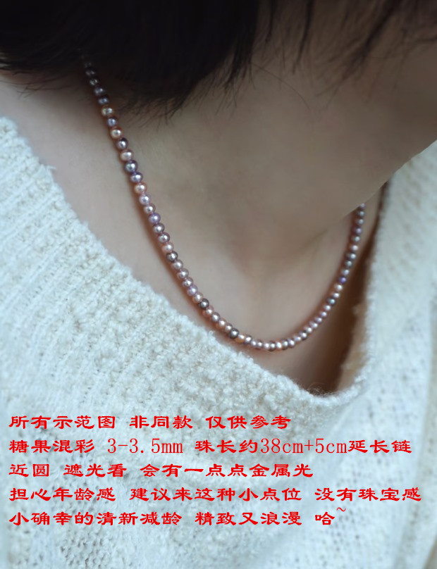 年少不知珍珠美 哈!天然淡水 小点位 近圆 糖果混彩&白细胞片 项链 两款入