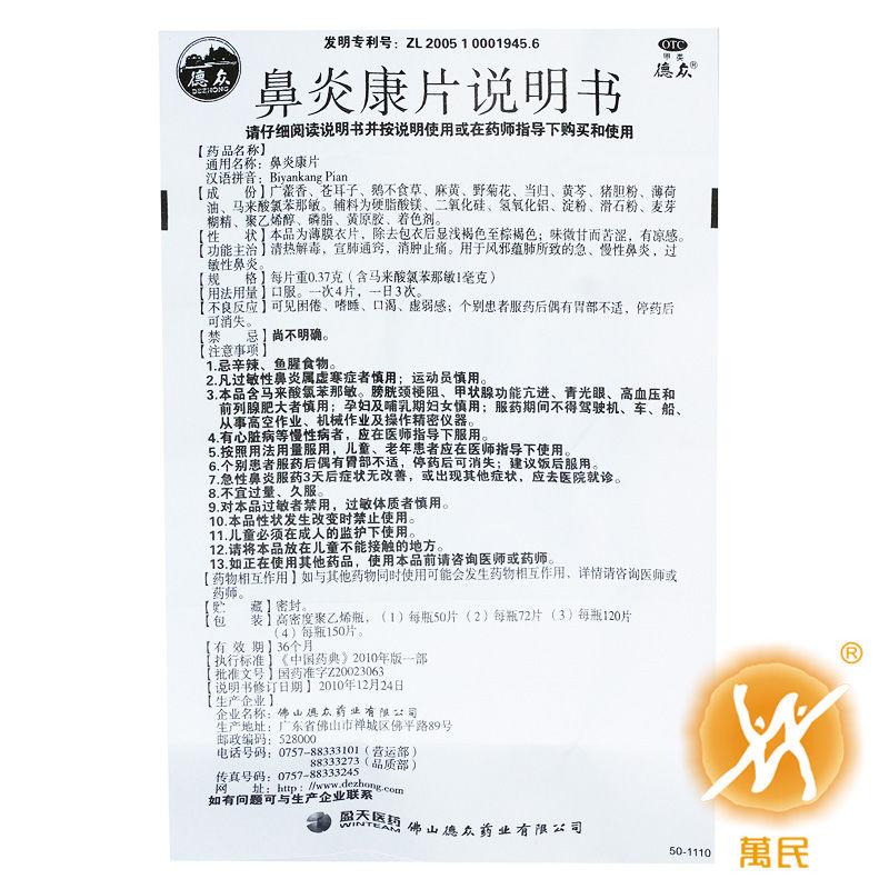 德众鼻炎康片72片
