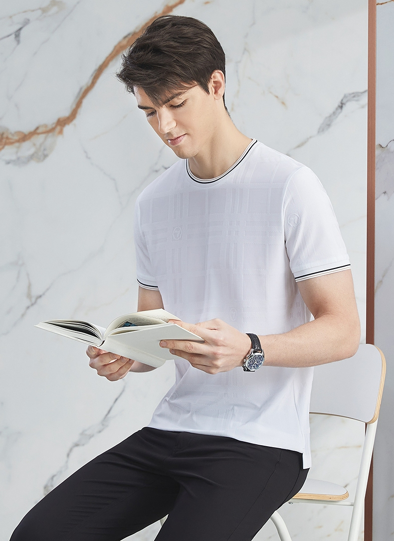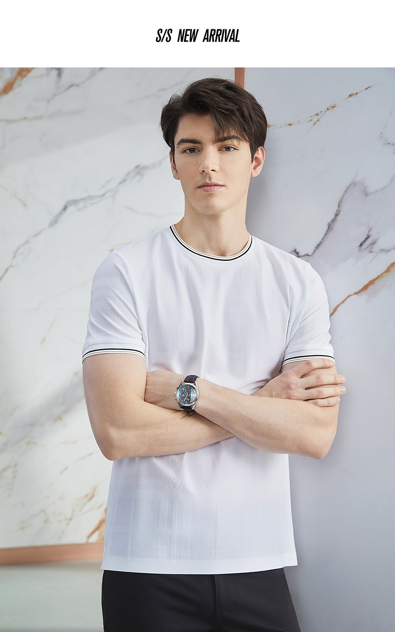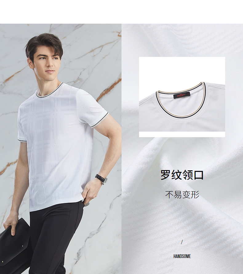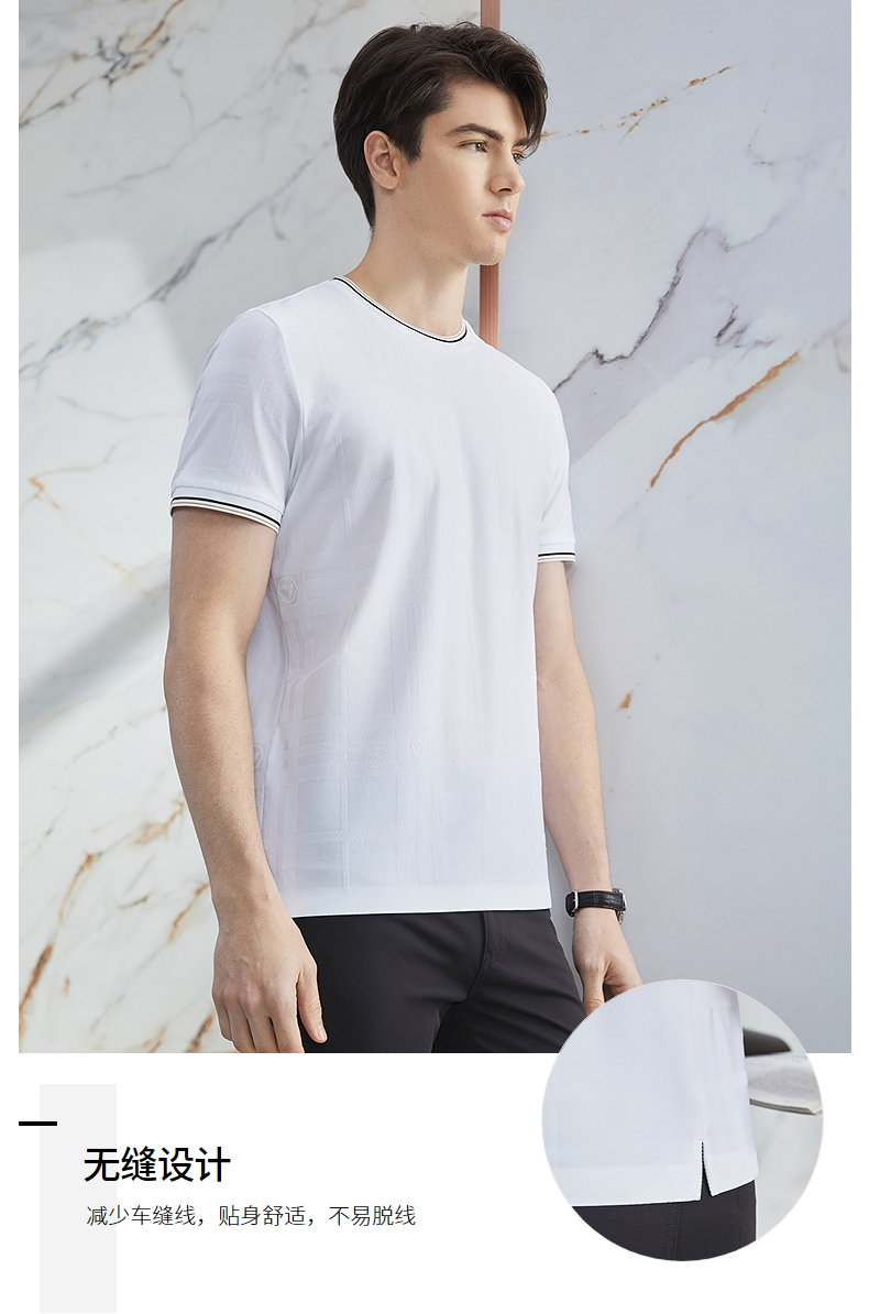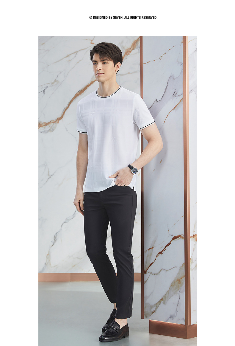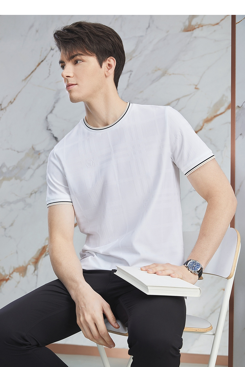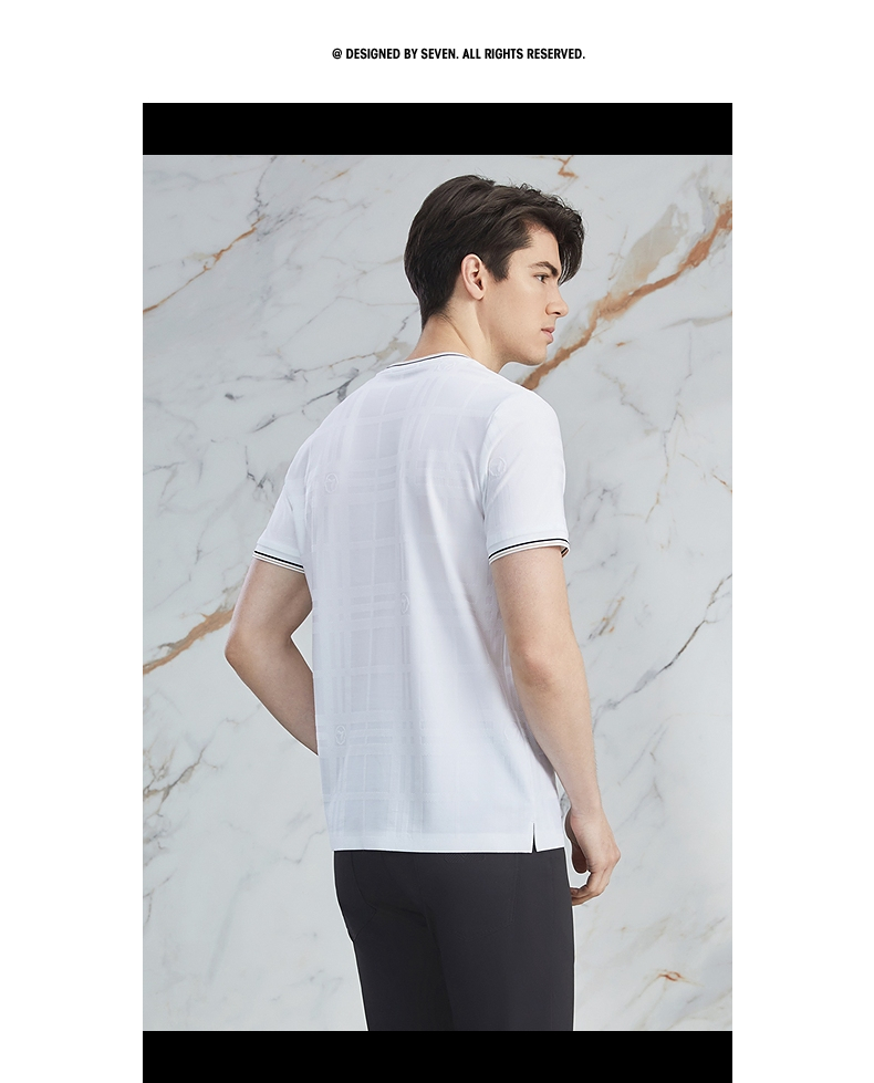 【高端系列】柒牌男装短袖T恤男士2024夏季新款格纹提花肌理体恤 126T72300