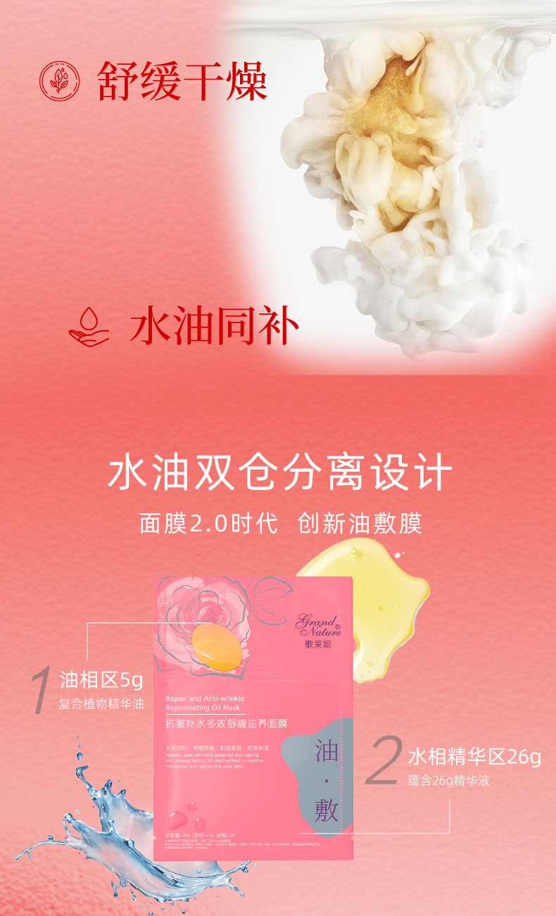 抗皱补水多效舒缓油养面膜新升级油养面膜(盒装5片装)