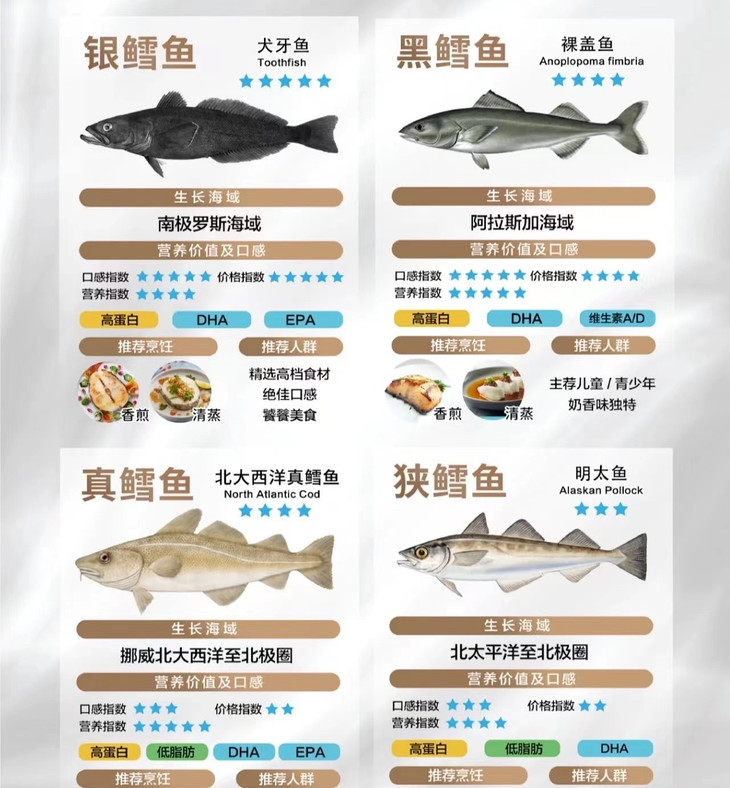 所以也被称为“奶油鱼”,✅同时鱼肉中富含的DHA和维生素A、D也是黑鳕鱼价格高的关键呐,不过这个价格很美丽哦,性价比极高,品质不用担心~