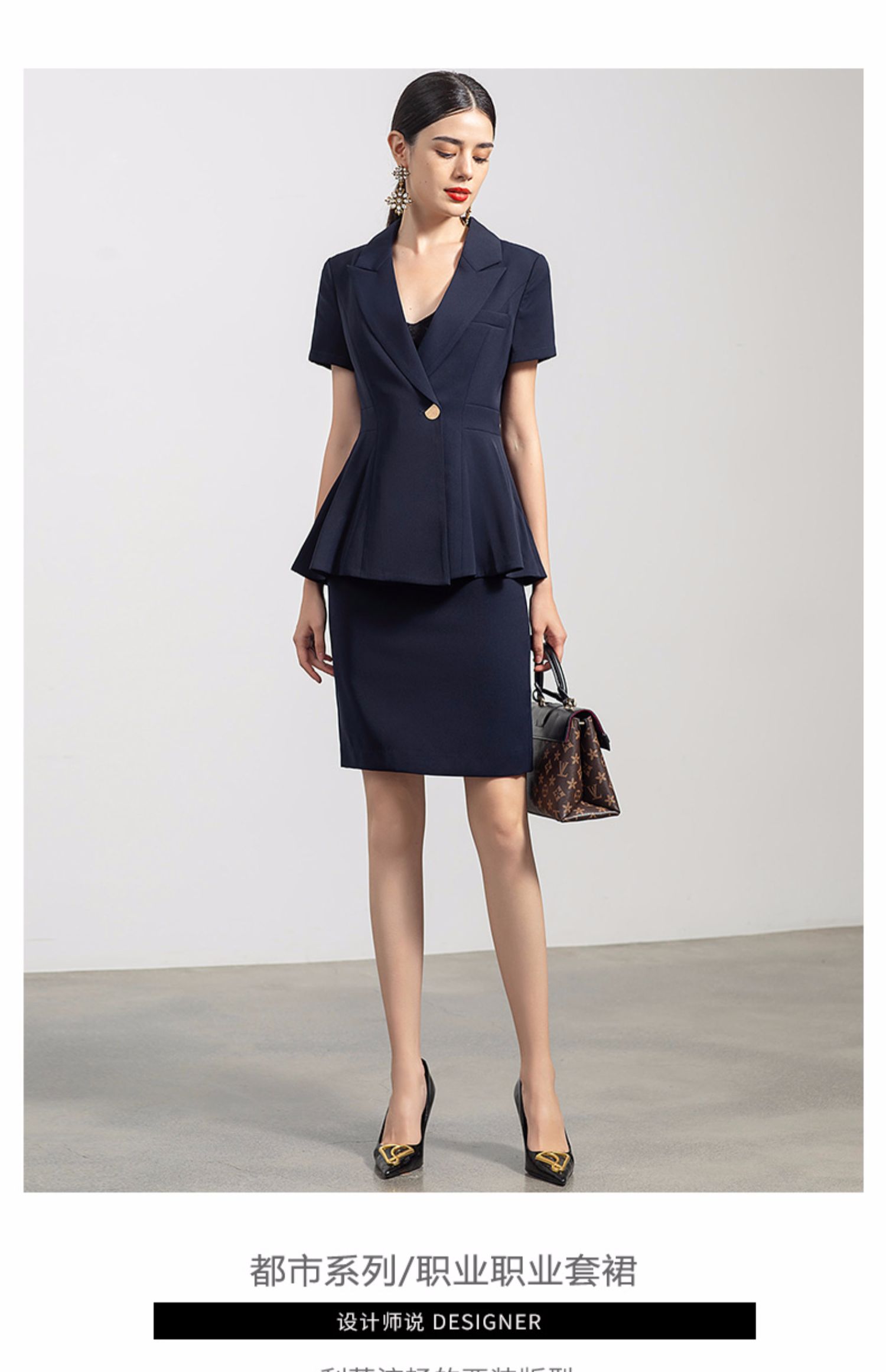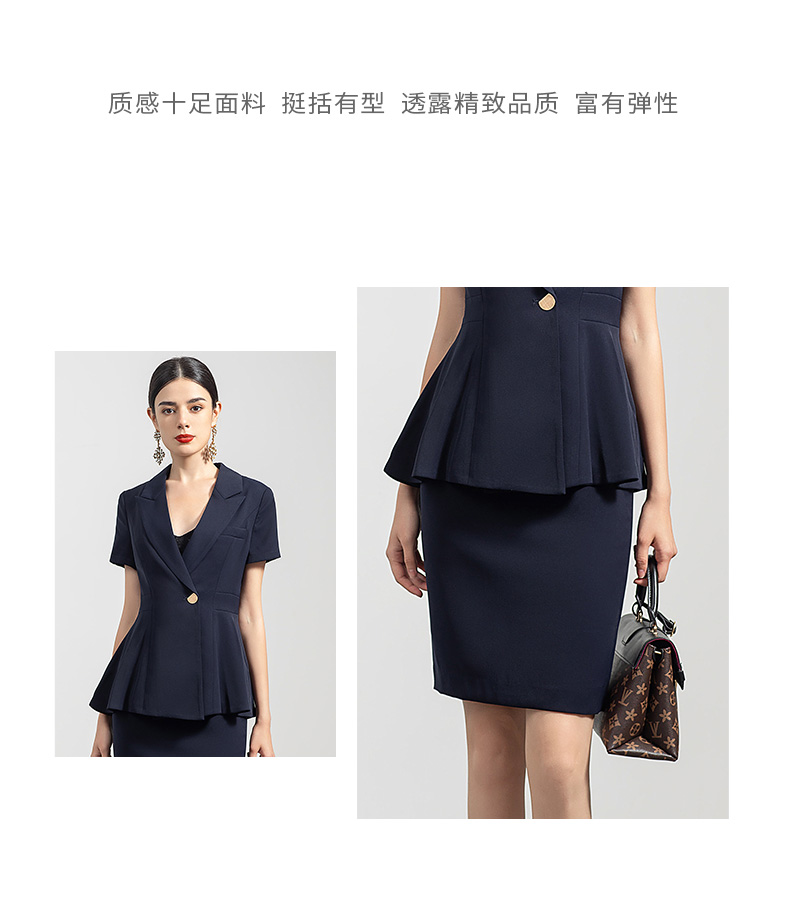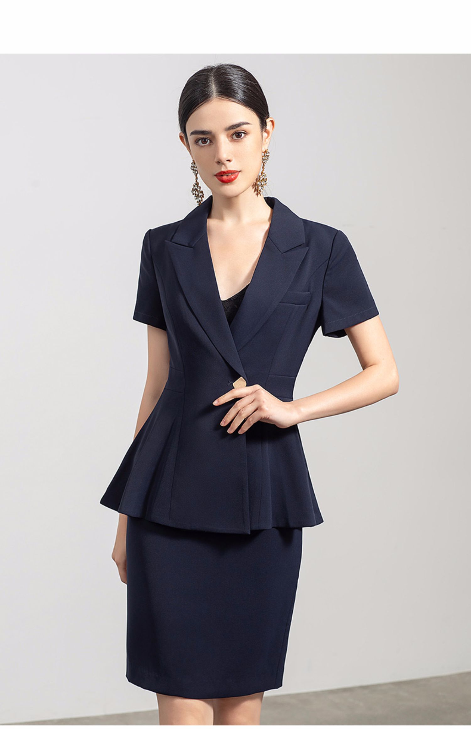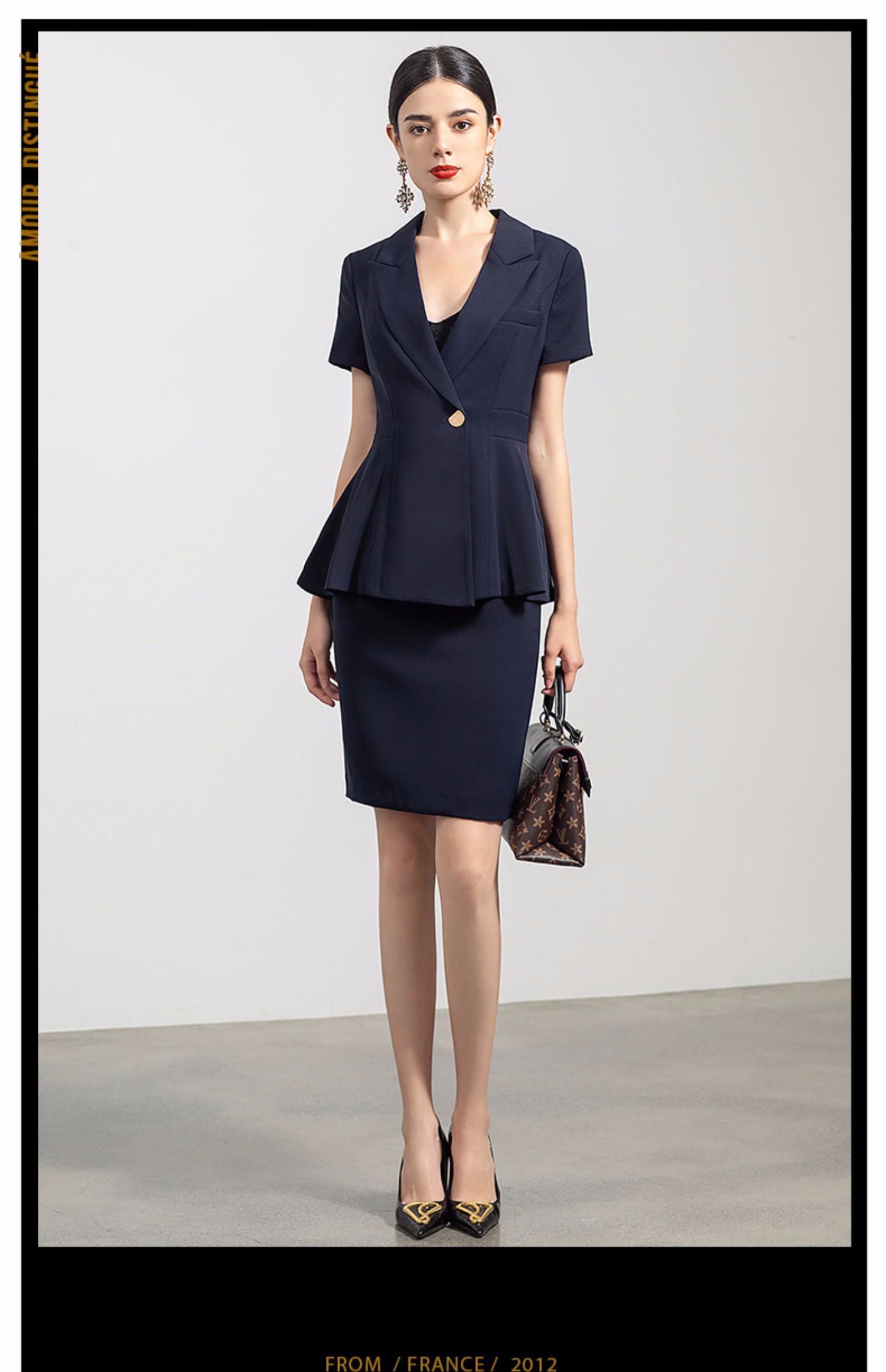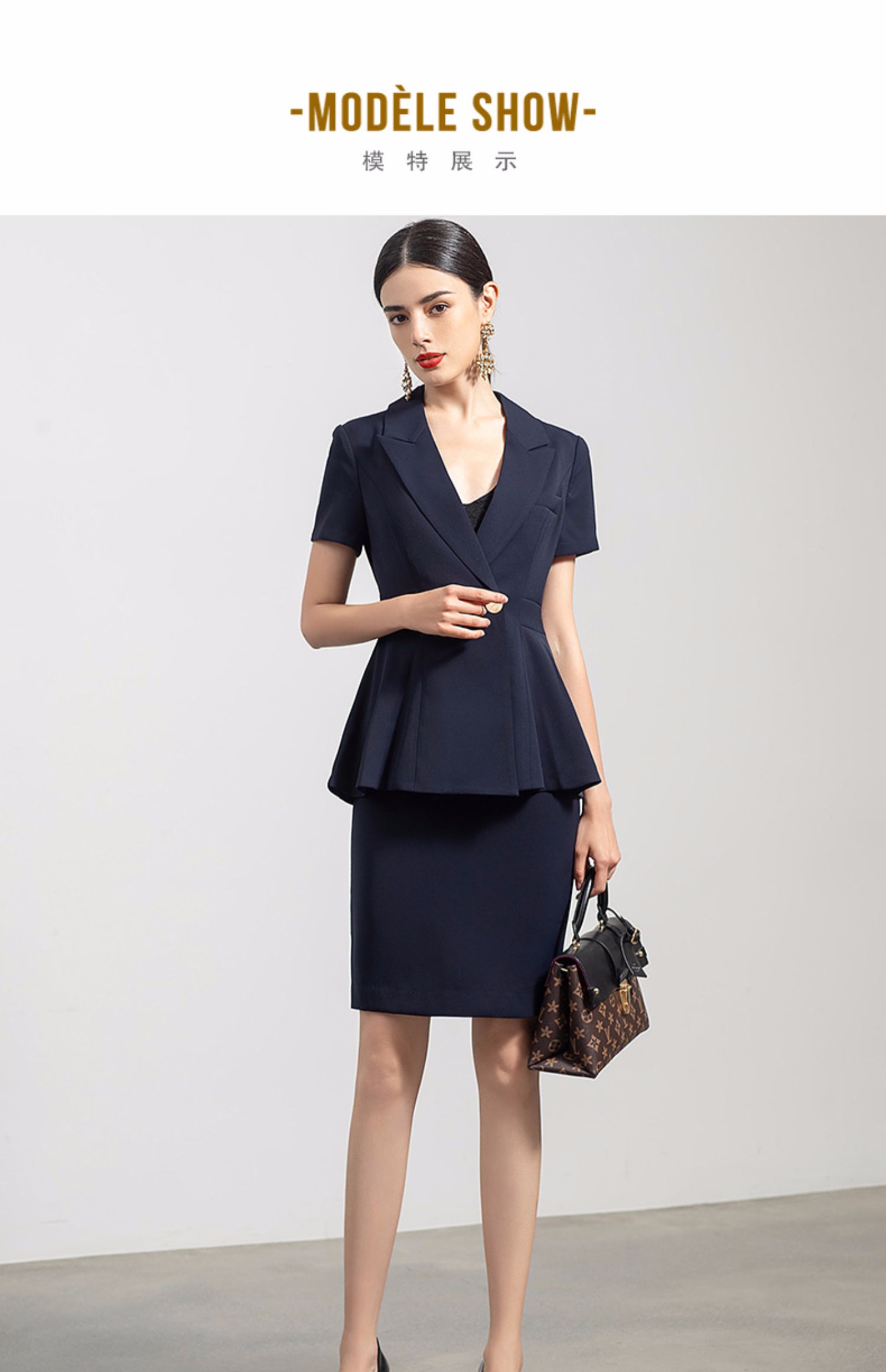 IWY/藏青短袖职业装套裙薄款西装套装女工作服面试售楼部高端正装CS552