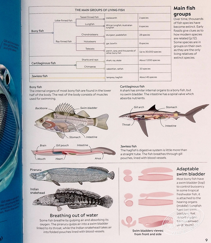 这本特别的、图文并茂的指南揭示了食人鱼的致命下巴、豪猪鱼的 "膨大"、狗鱼如何游泳、鱼鳞上的生长环、4亿年前的鱼是什么样子,以及一条有腿的鱼 使用引人注目的全彩照片和插图,发现鱼群是如何保持在一起的,为什么有些鱼会倒着游,黄貂鱼是如何蜇人的,以及为什么鱼需要水来呼吸,等等。