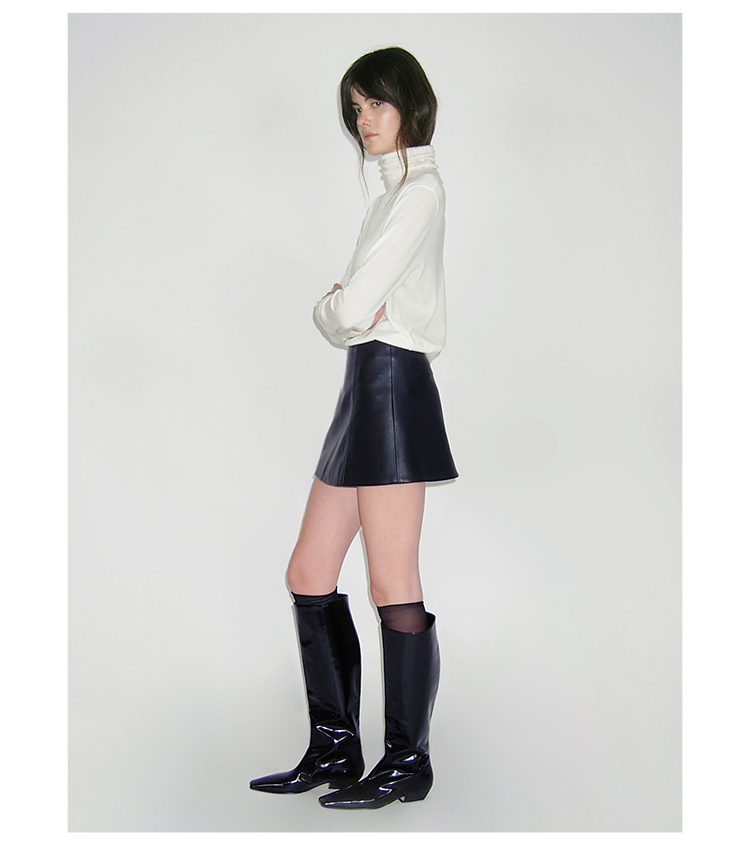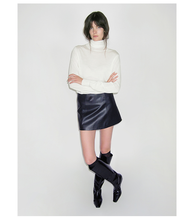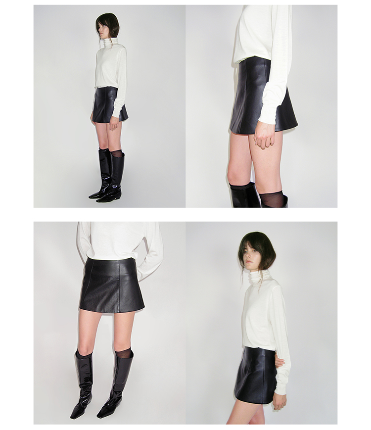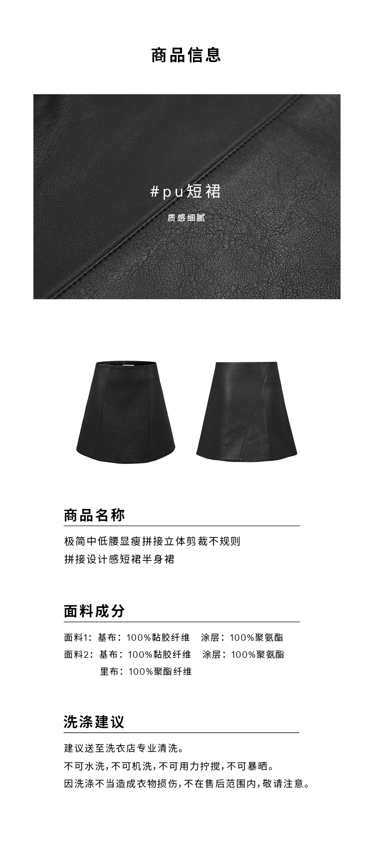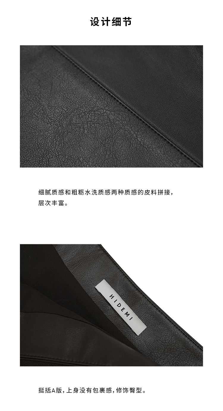 HIDEMI 极简中低腰显瘦拼接立体剪裁不规则拼接设计感短裙半身裙皮裙