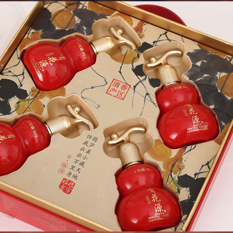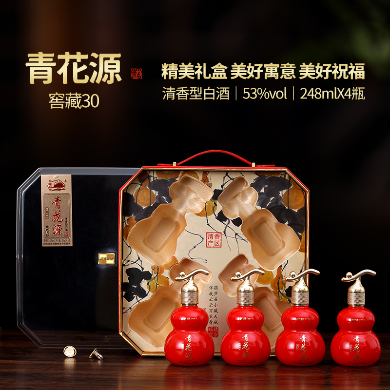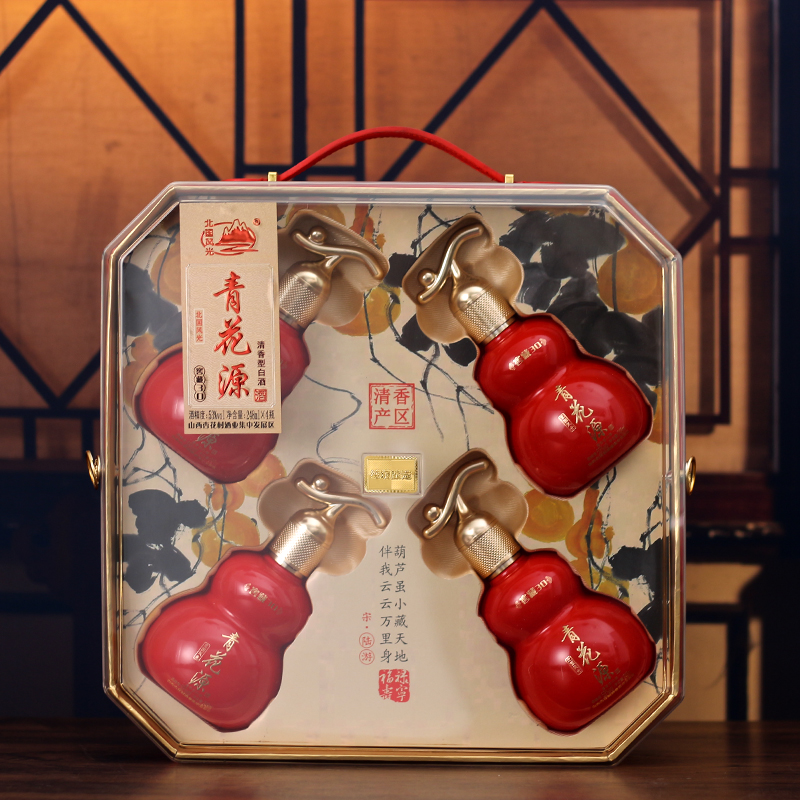 【中秋限时特价】北国风光青花瓷葫芦白酒53度清香型纯粮248ml*4瓶礼盒装