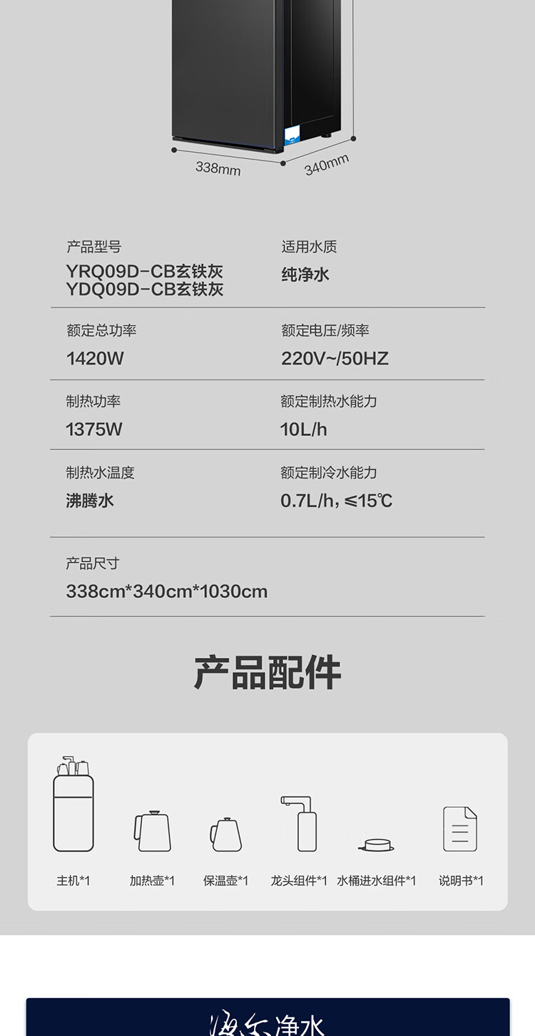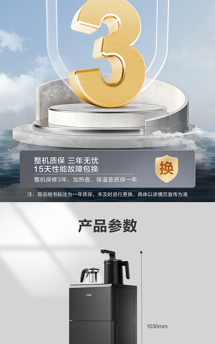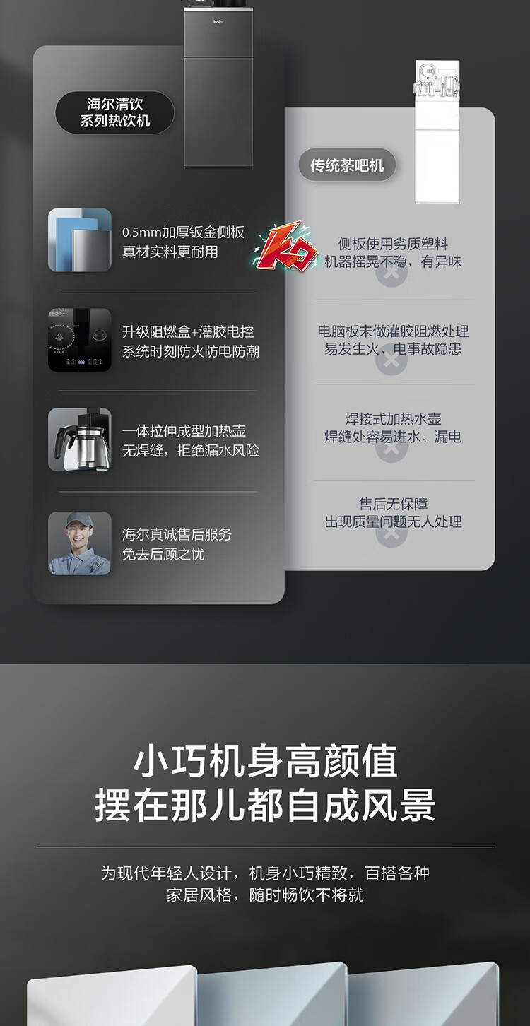 海尔(Haier)冷热型 家用立式多功能智能高端饮水机 可调温全自动上水下置水桶 冷热型 YDQ09D-C