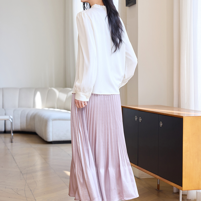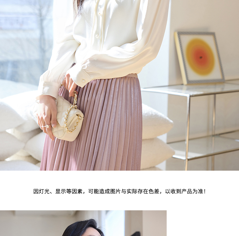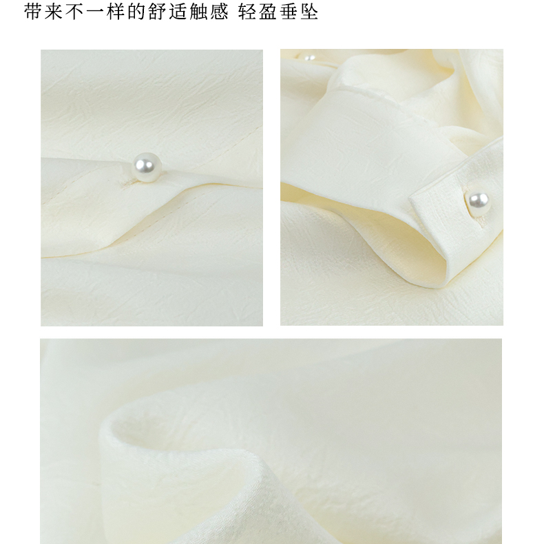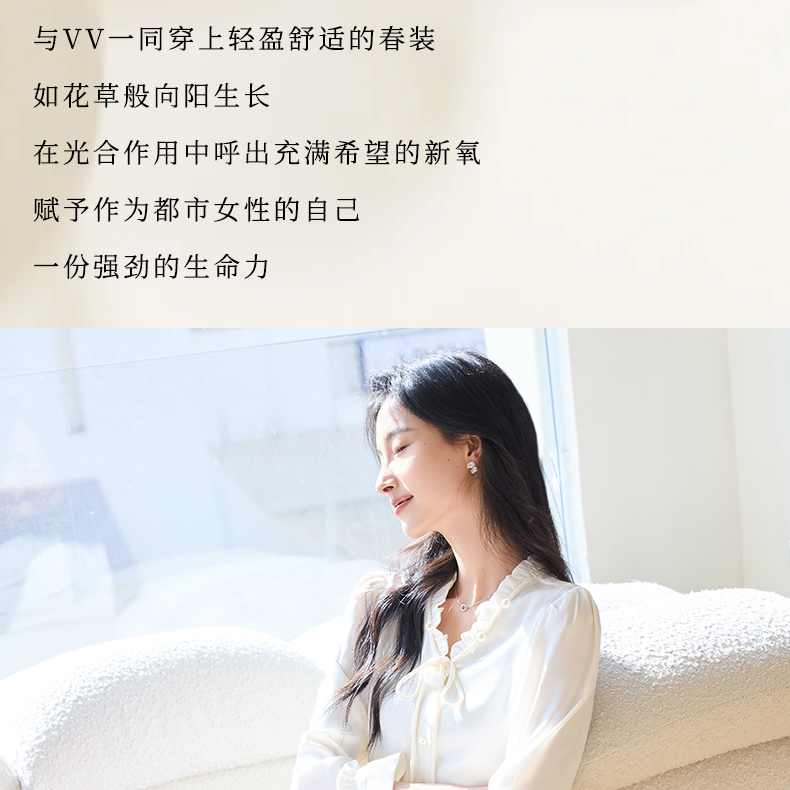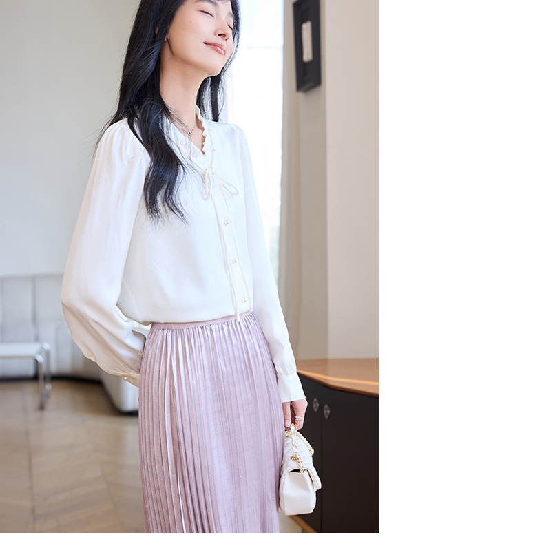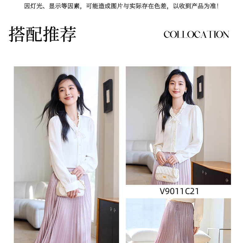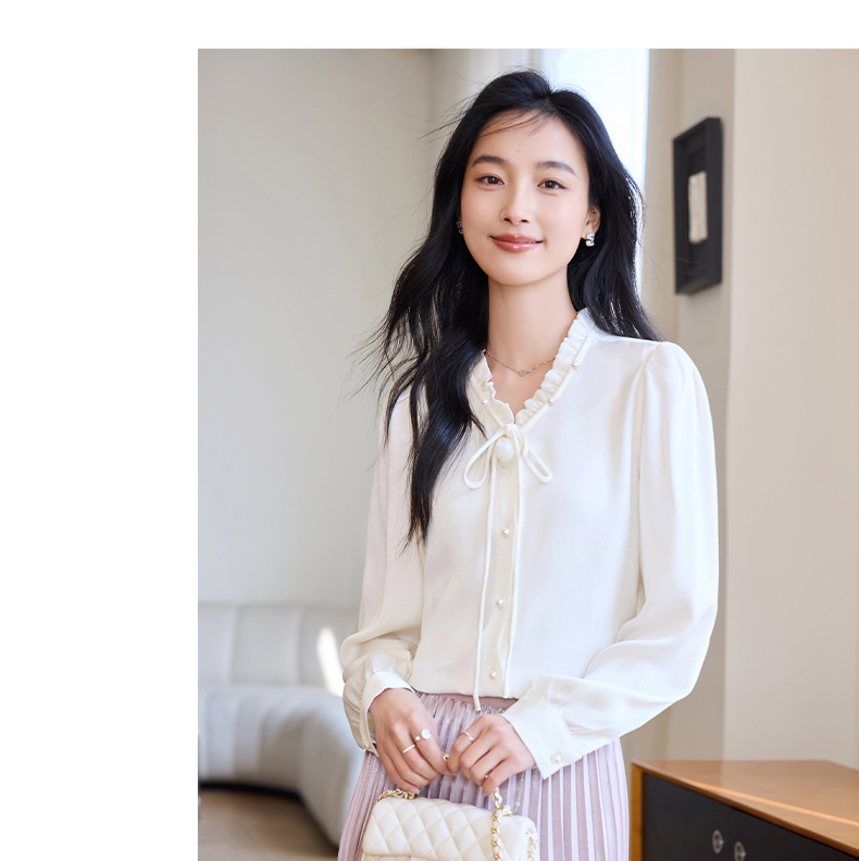 VICTORIA&VERA春季“云艾诺丝”系列亲肤舒适仿醋酸胸口立体花绑带肌理衬衫