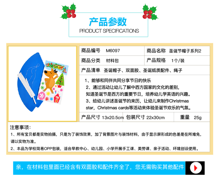 美可幼儿头戴式圣诞帽礼物 创意儿童手工diy系列2纸质帽子材料包