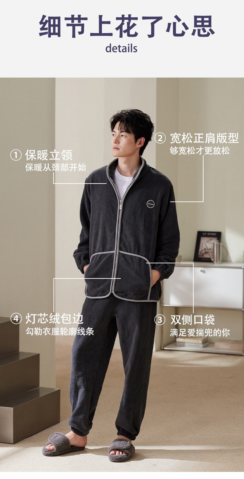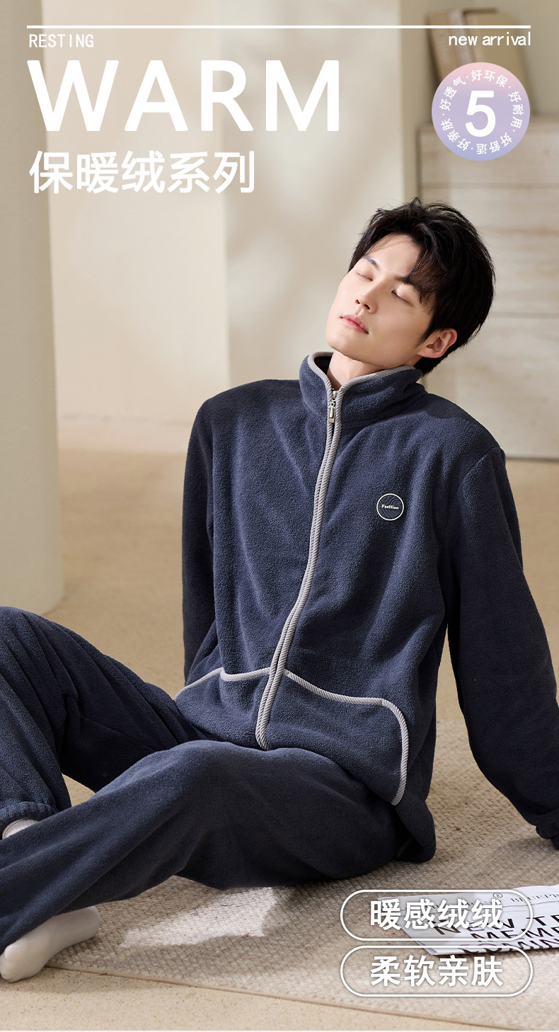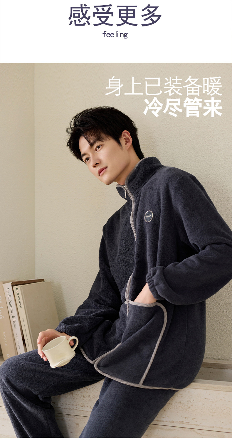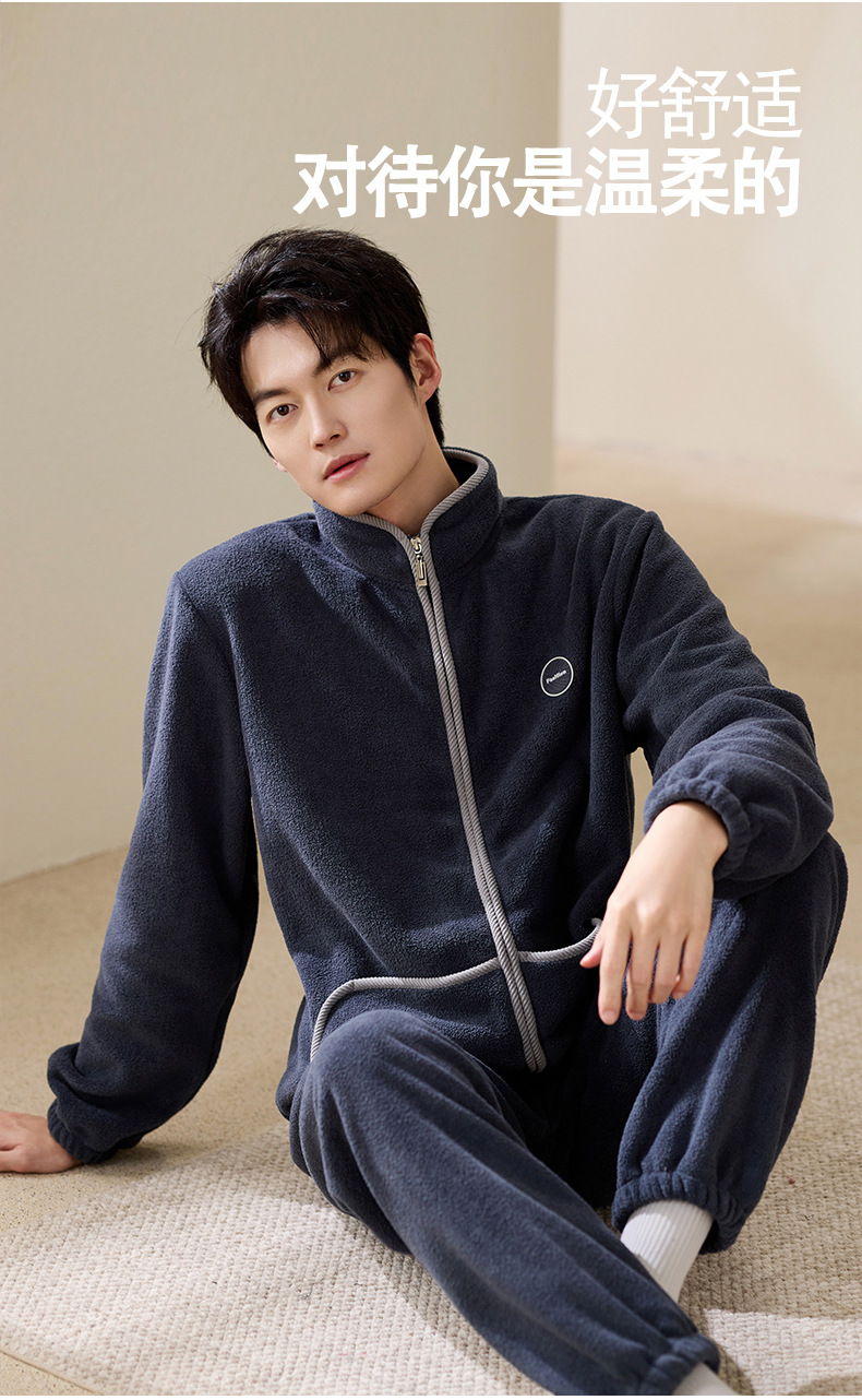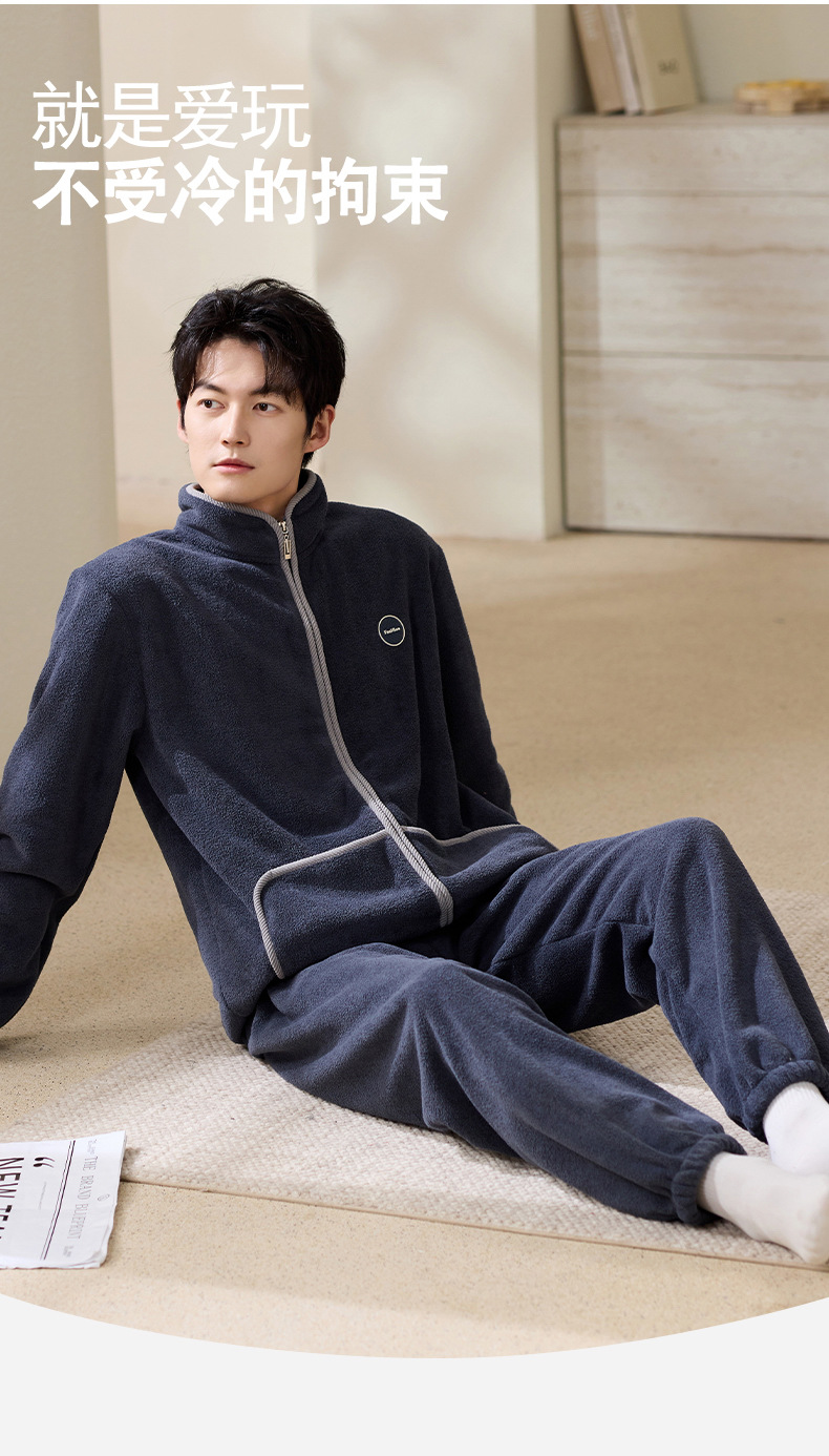 2025冬季新品男士拉链款立领珊瑚绒套装可居家可外穿家居服