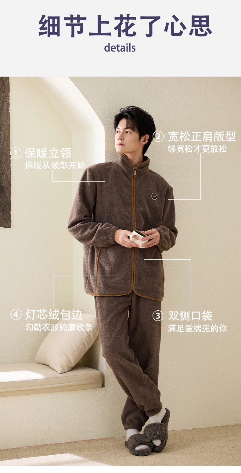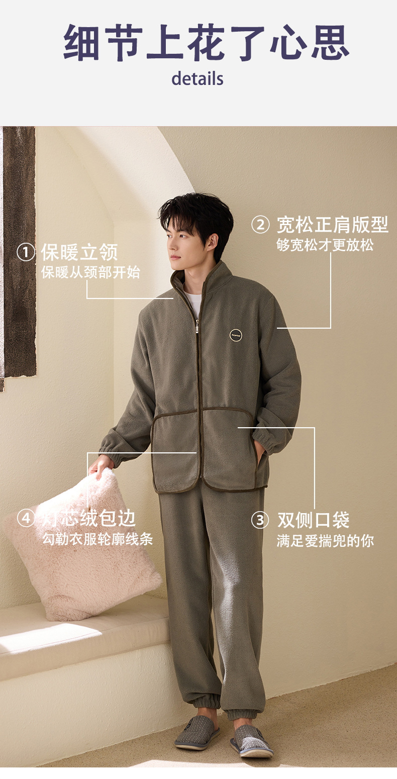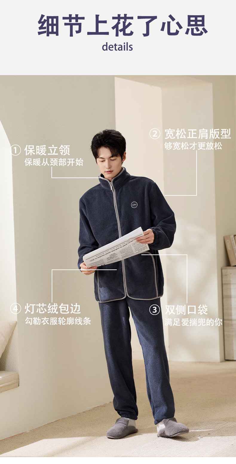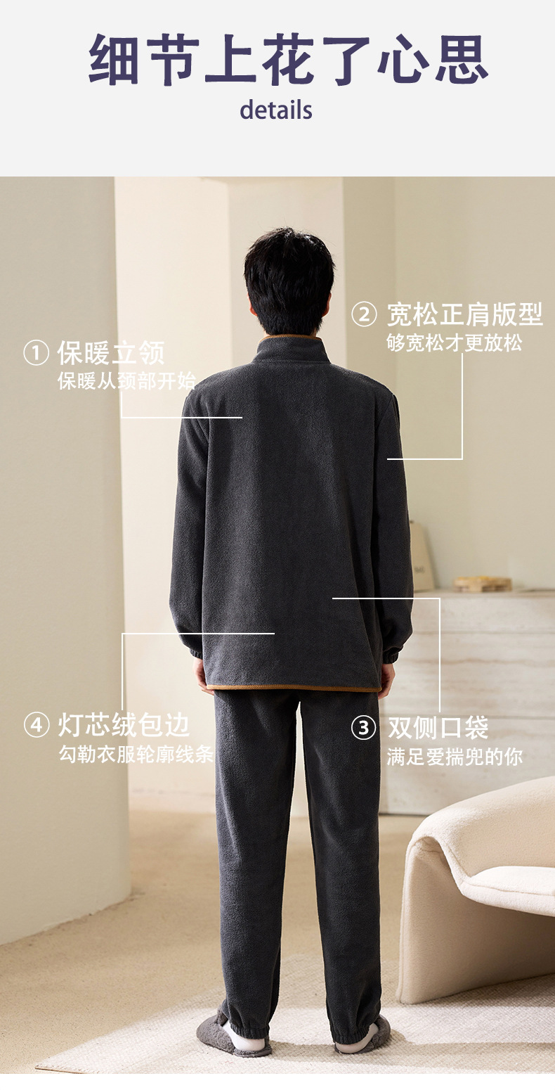 2025冬季新品男士拉链款立领珊瑚绒套装可居家可外穿家居服