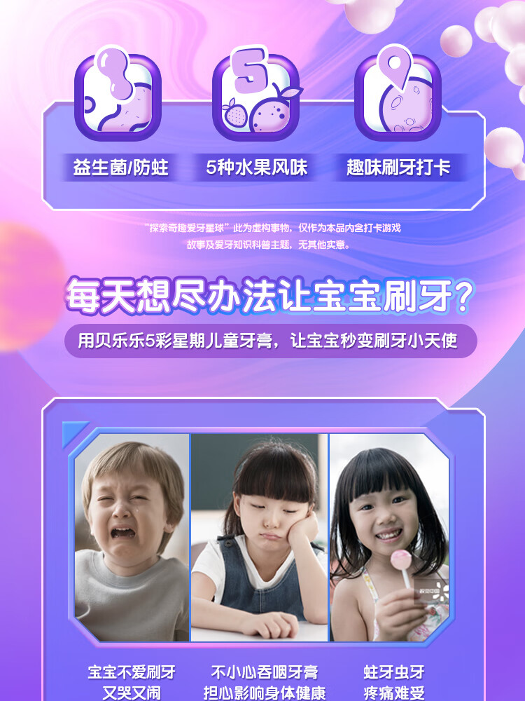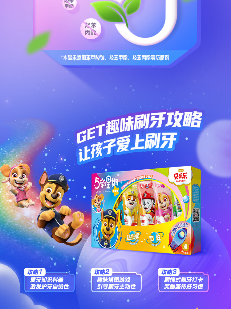 冷酸灵贝乐乐安心优护儿童牙膏5彩星期套装25g*5支/盒