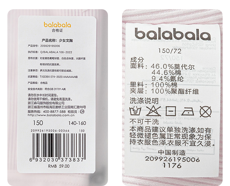 【balaOne】巴拉巴拉女内衣发育期防凸点儿童小背心少女文胸舒适