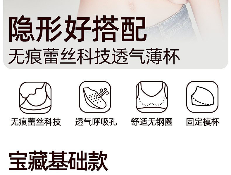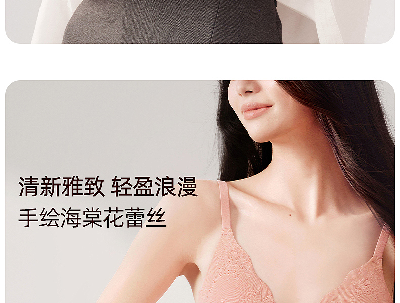好奇蜜斯无痕内衣女蕾丝无钢圈小胸聚拢文胸罩套装隐形薄春 梅琳