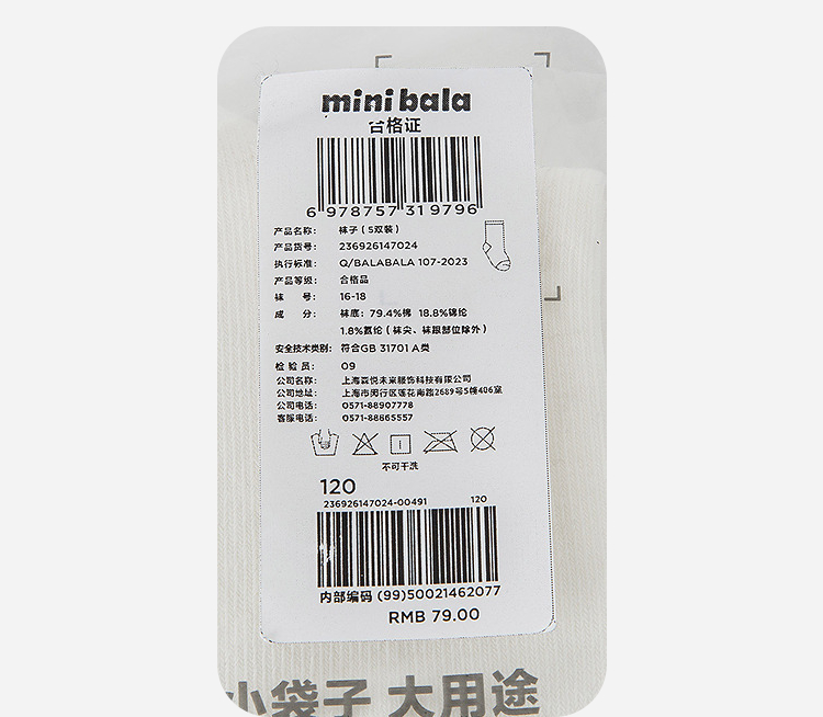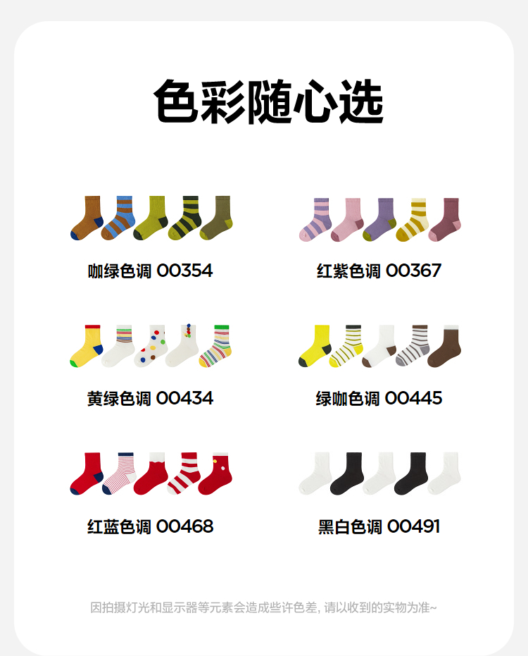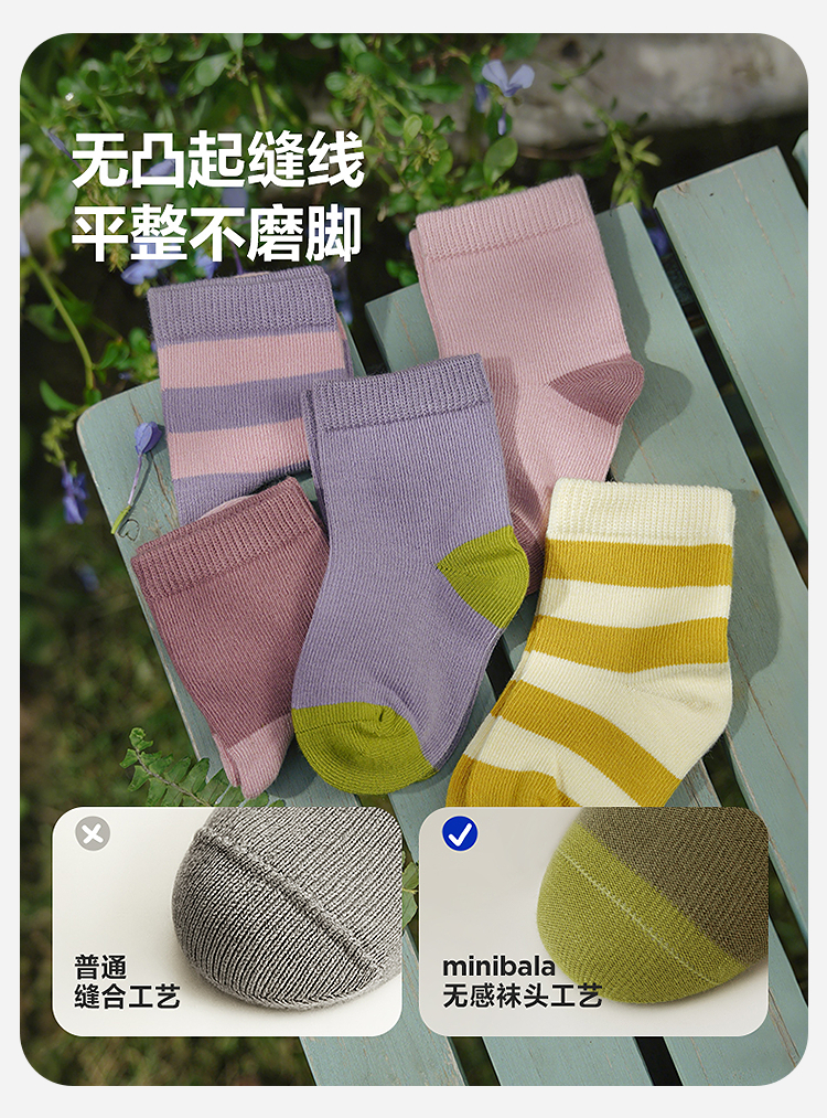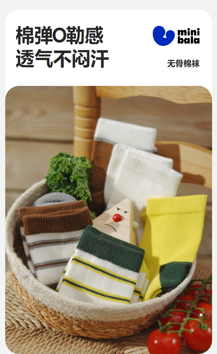 【5双装】迷你巴拉儿童袜子男女童宝宝条纹中筒袜柔软棉弹萌趣