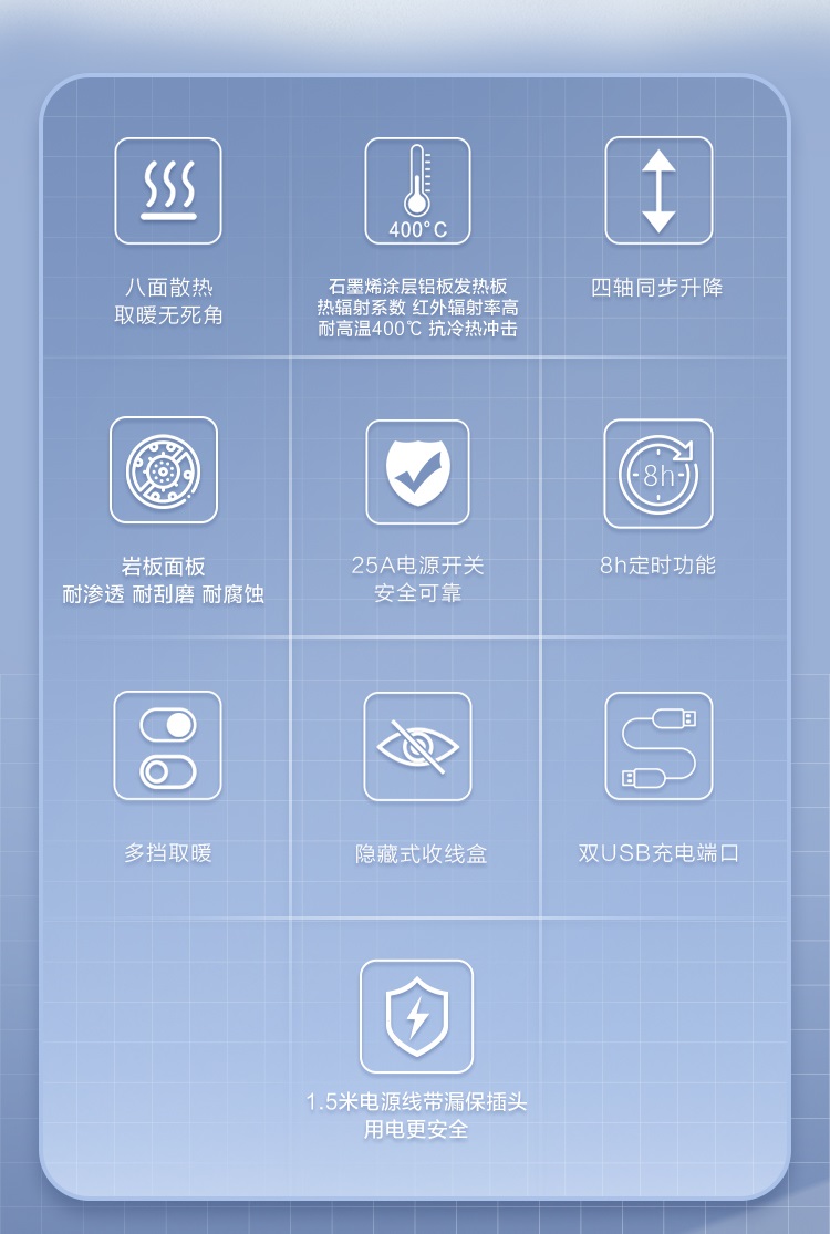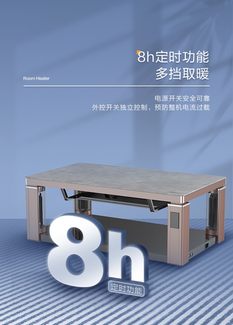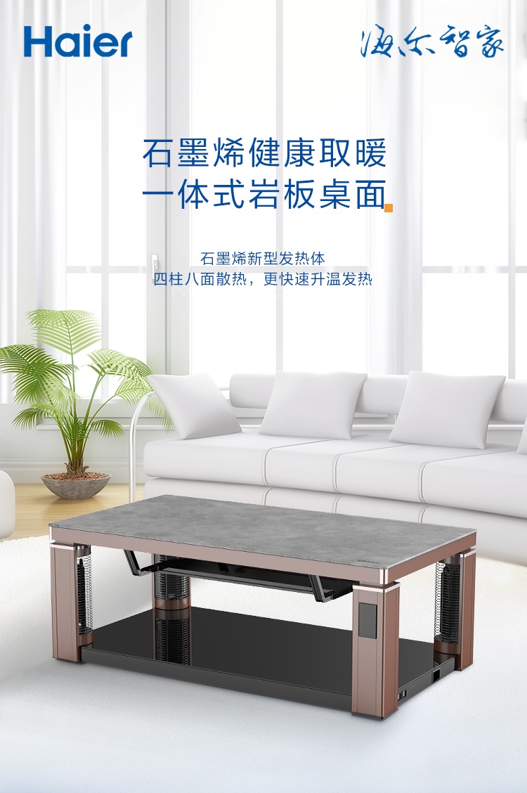 海尔取暖桌家用多功能电暖茶几 HTO7A 石墨烯健康取暖 一体式岩板桌面