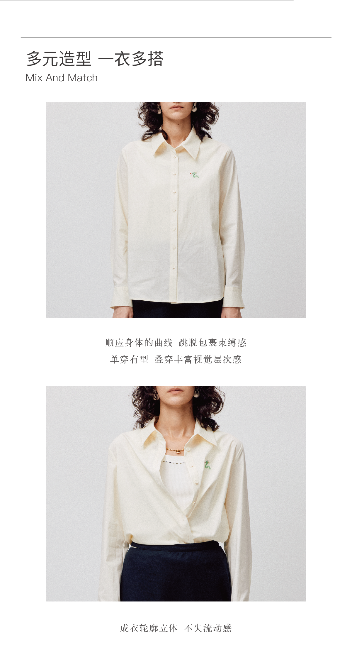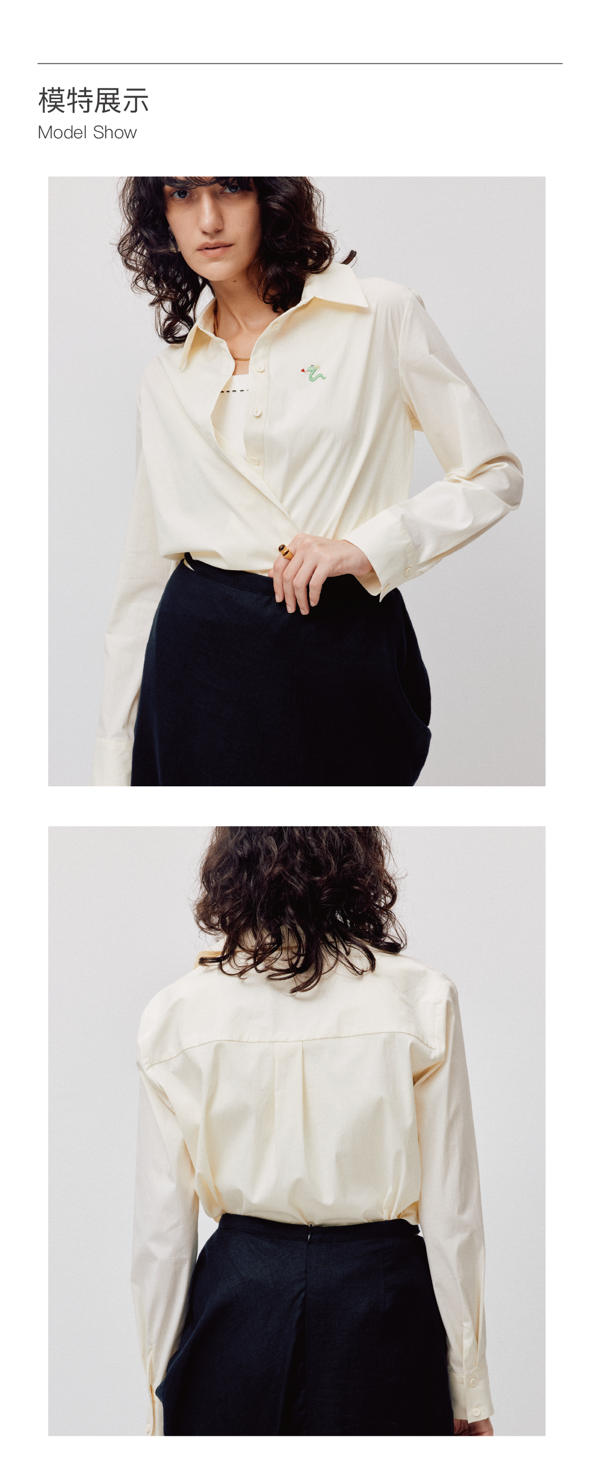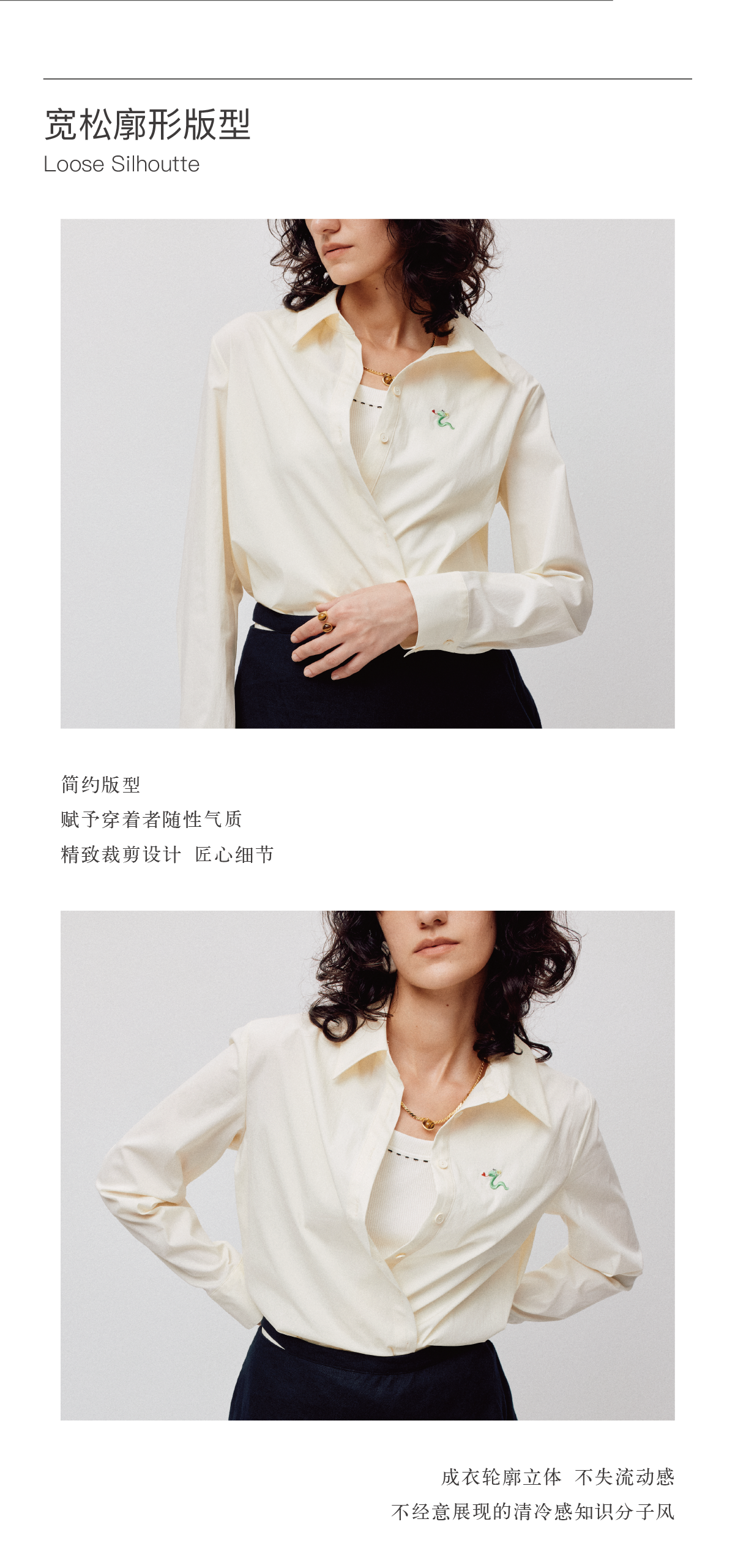 LIYIHAN序章丨25春棉刺绣小蛇正肩极简衬衫百搭女长袖上衣舒适