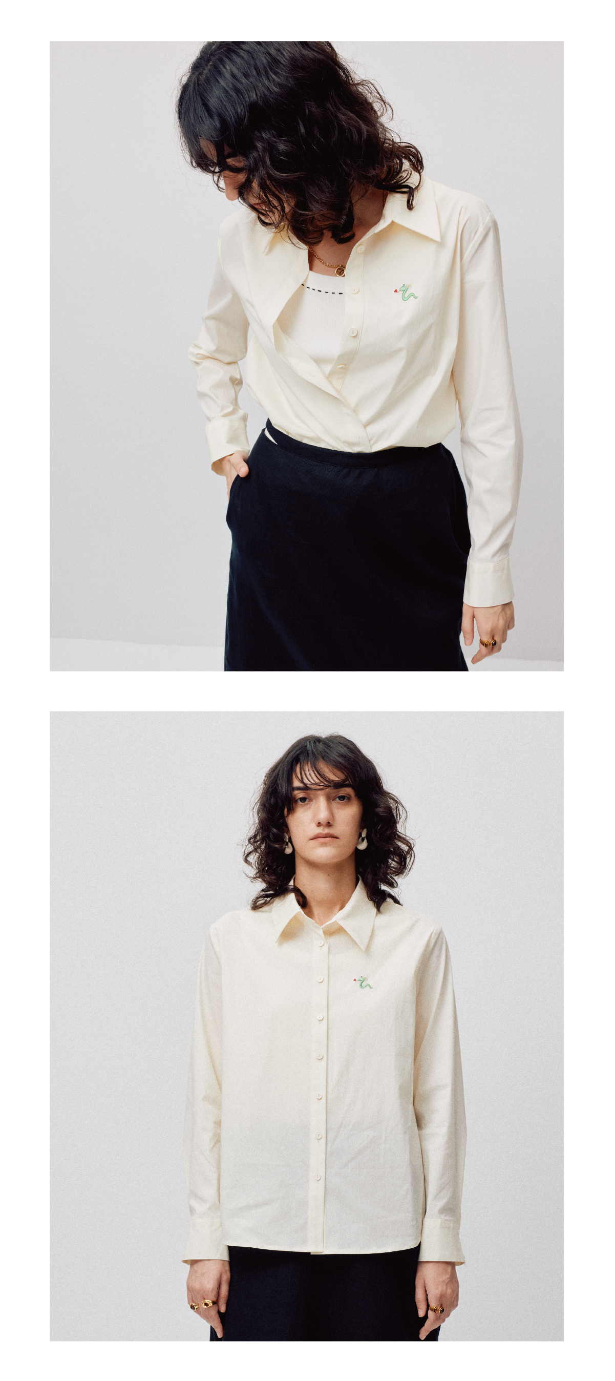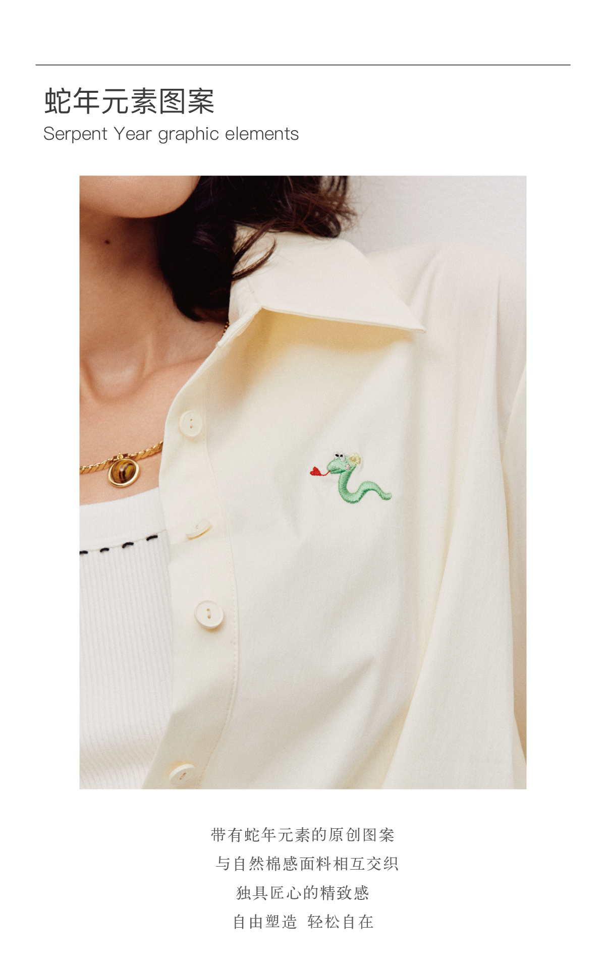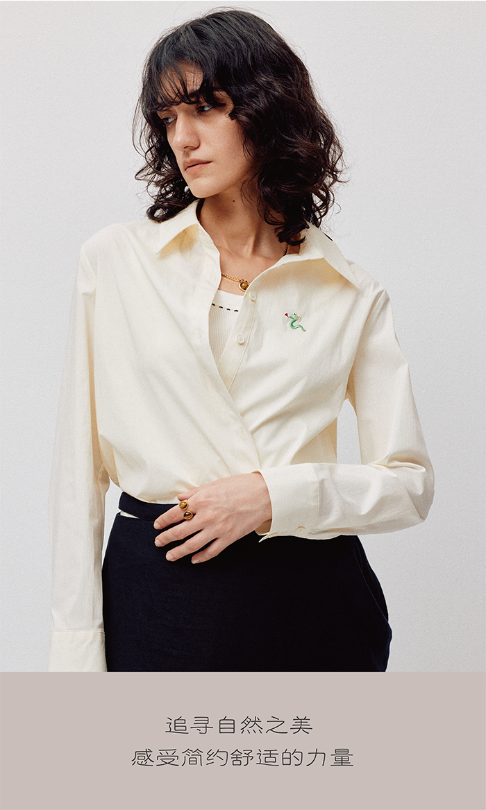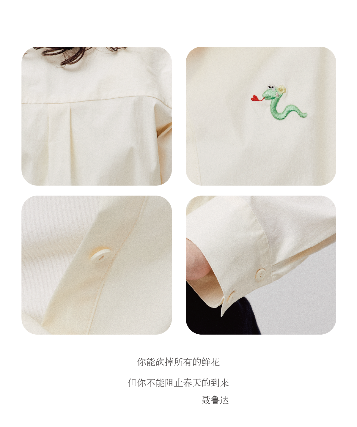 LIYIHAN序章丨25春棉刺绣小蛇正肩极简衬衫百搭女长袖上衣舒适