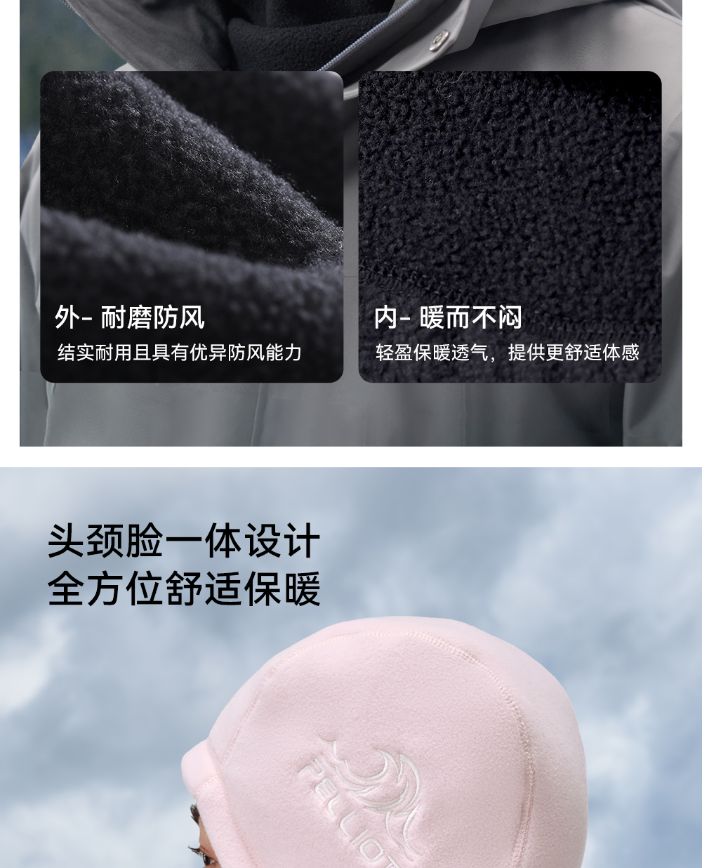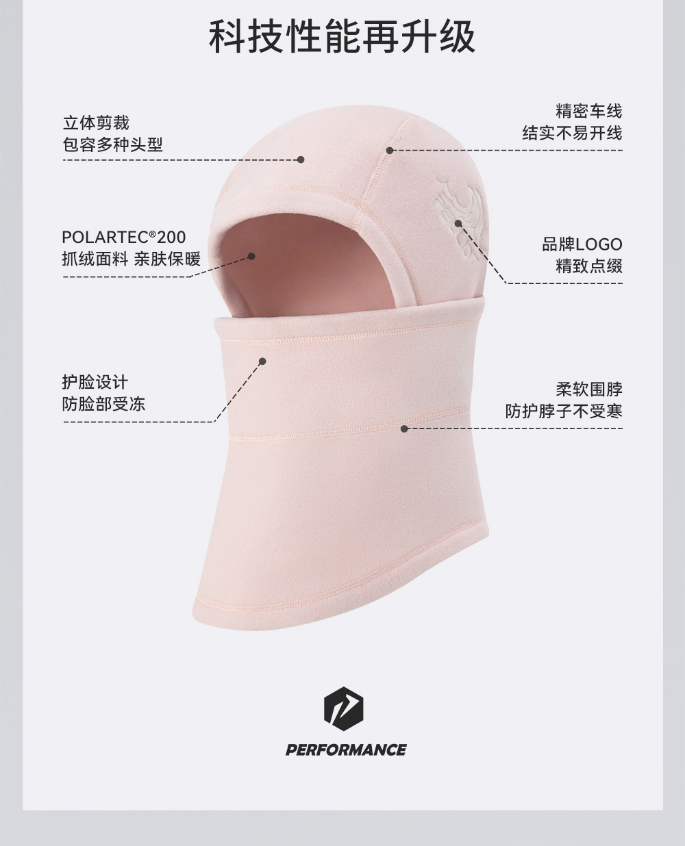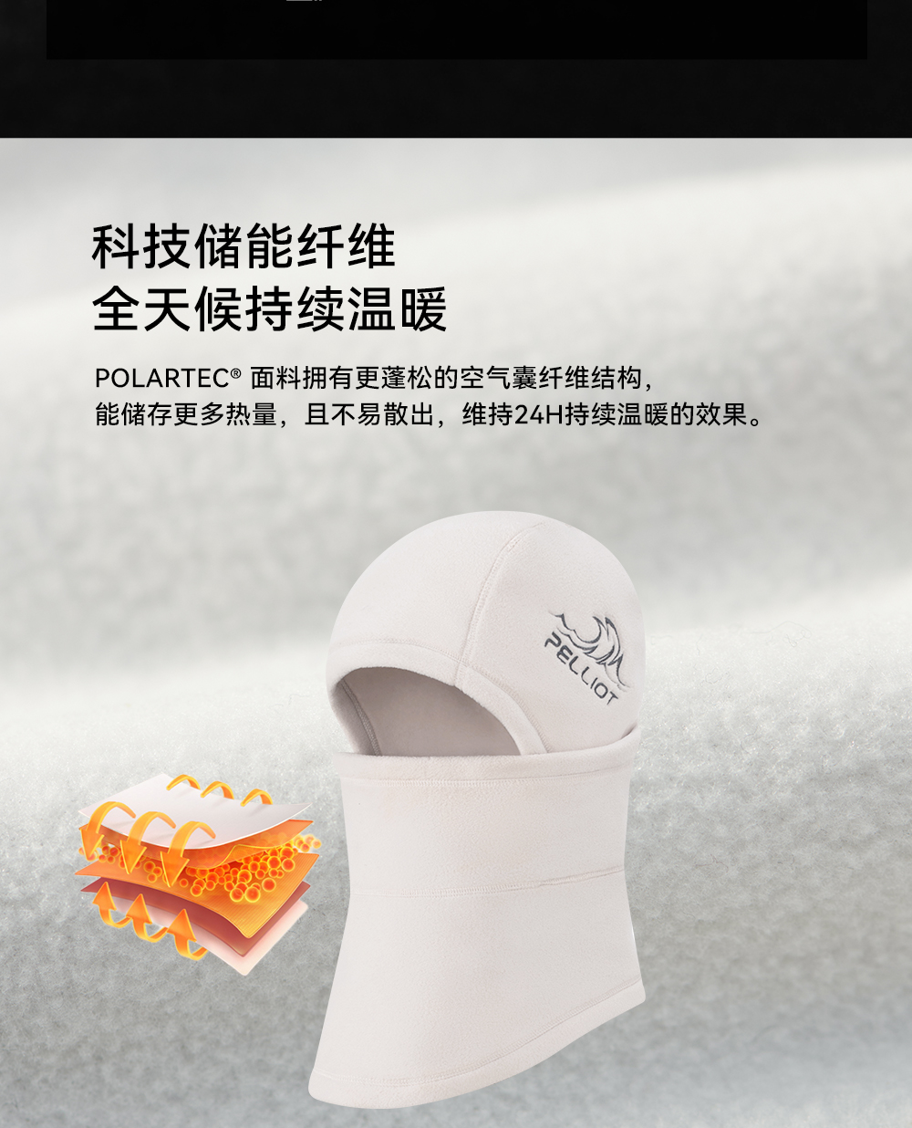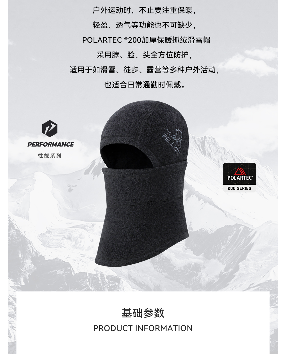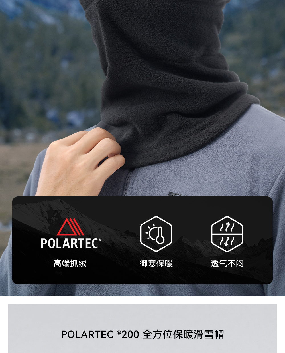 【P系列】伯希和户外抓绒帽Polartec200登山围脖骑行帽子防风面罩