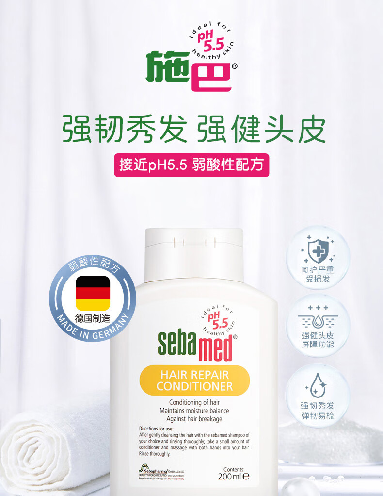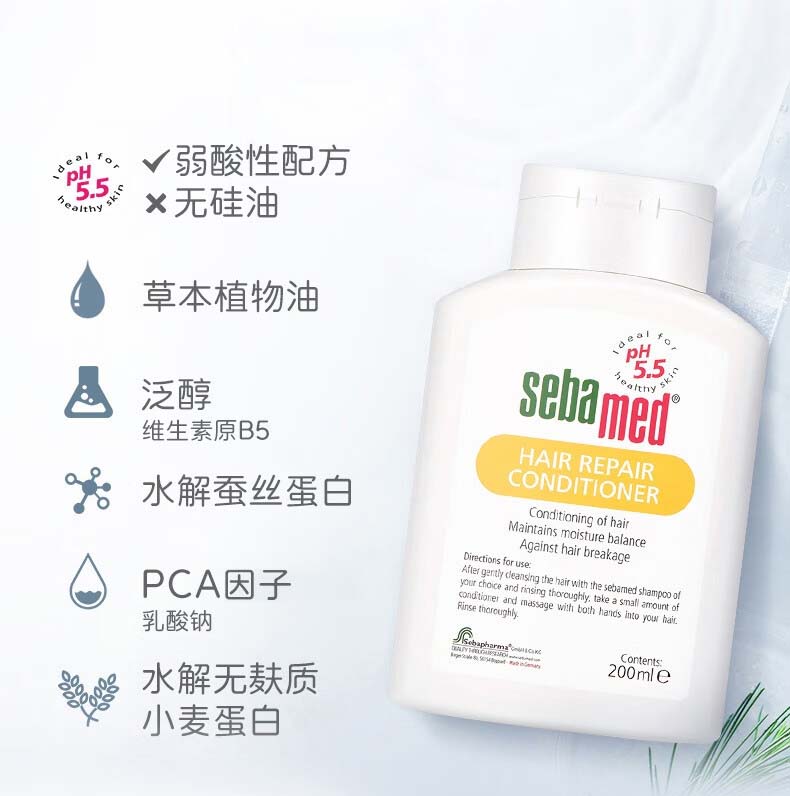 【中欧班列精选】德国施巴修护护发露 原装进口控油去屑柔顺滋润柔顺修复烫染损伤洗发水 200ml/瓶