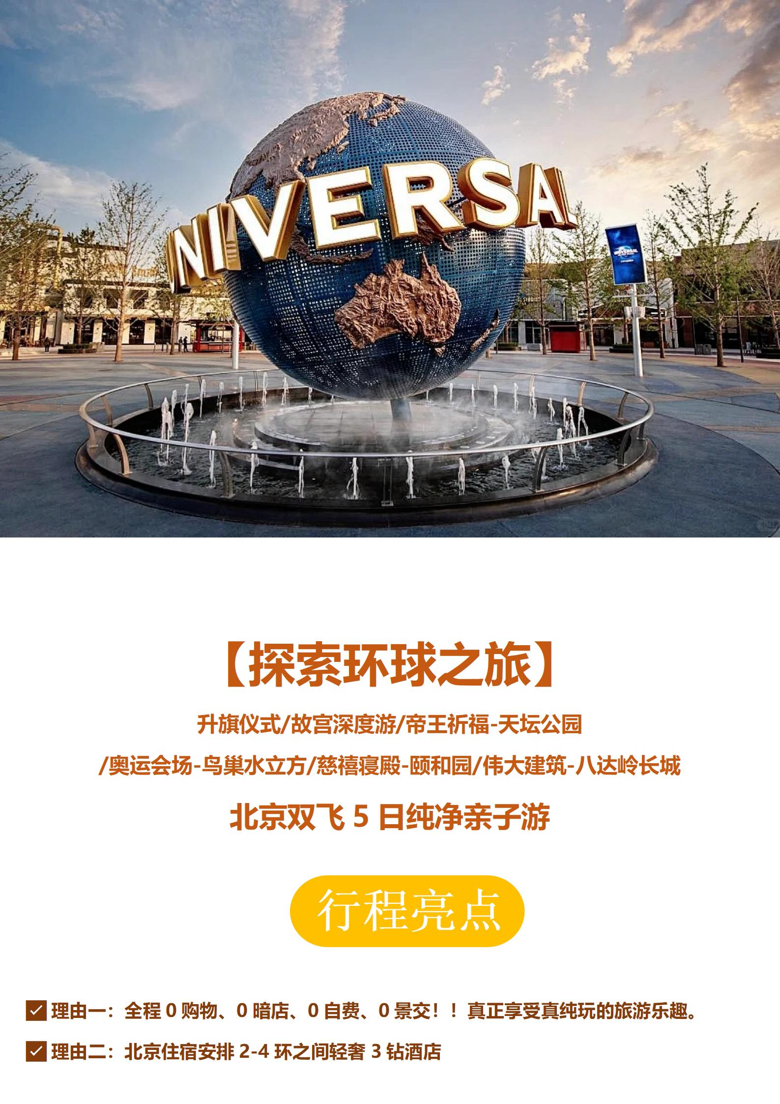 【探索环球之旅】北京双飞5日纯净亲子游