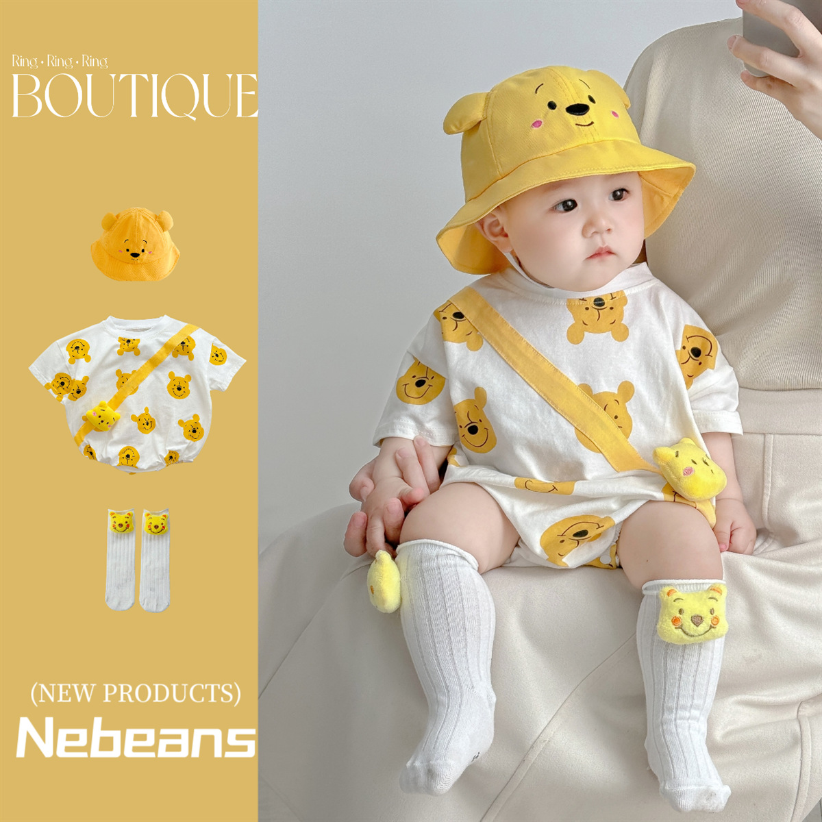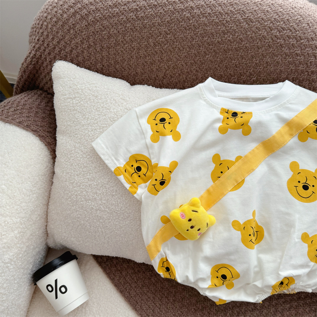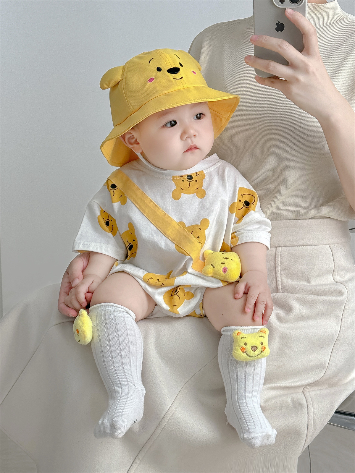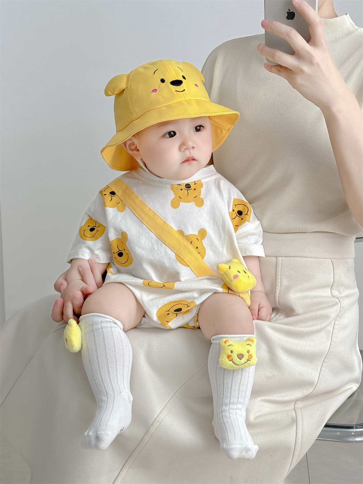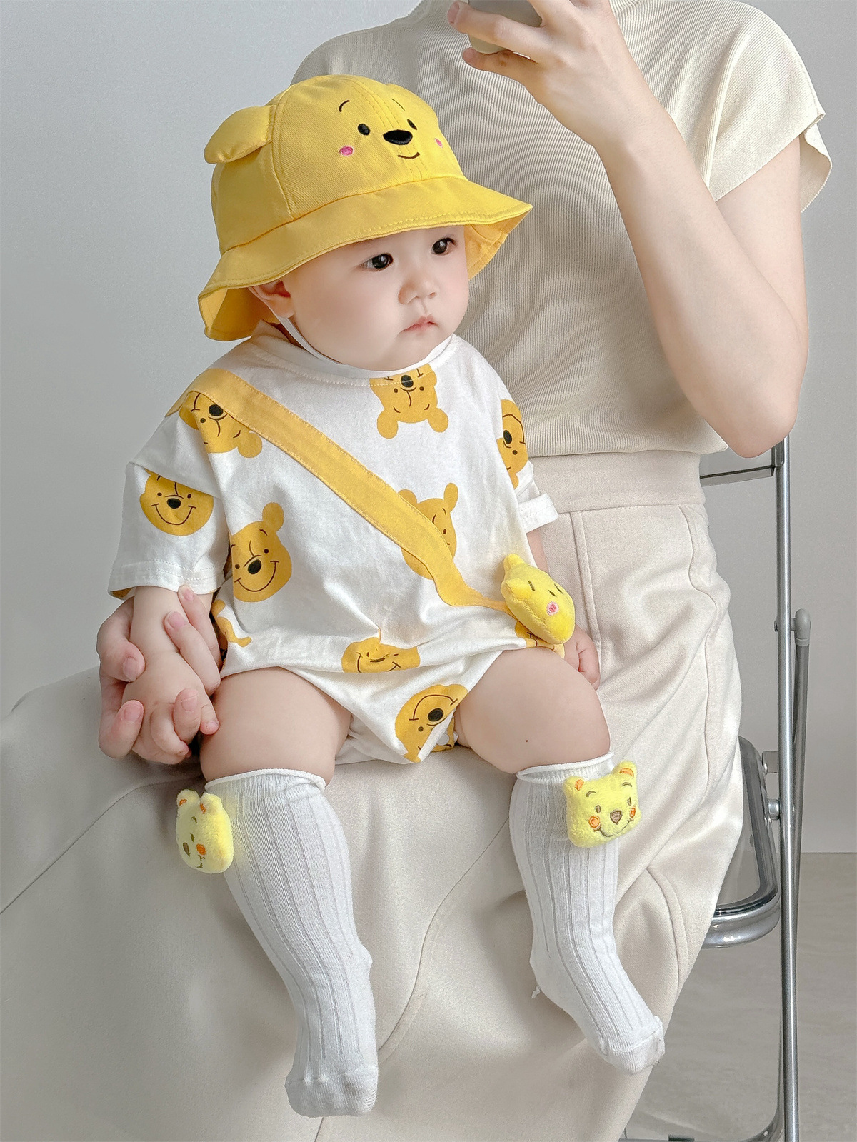 【套装秒杀价65.9】卡通维尼熊三角哈衣夏天柔软棉质宝宝哈衣套装