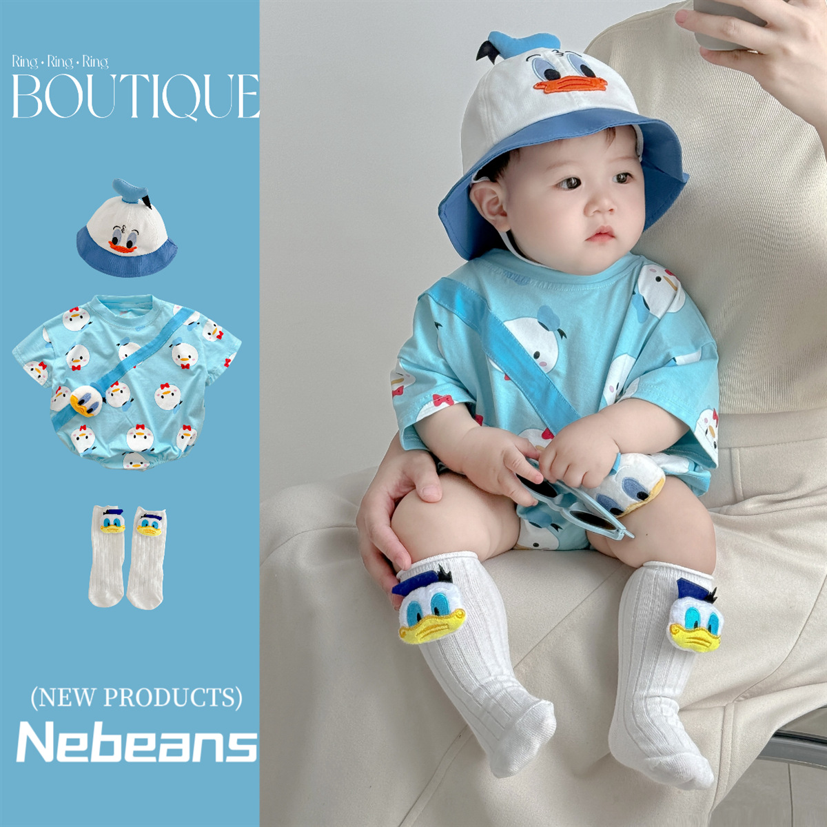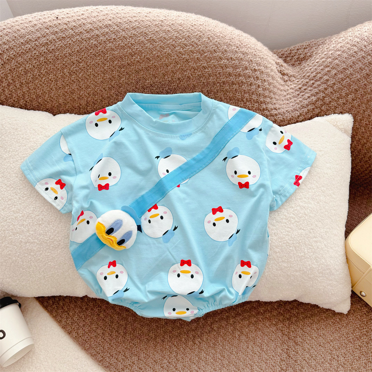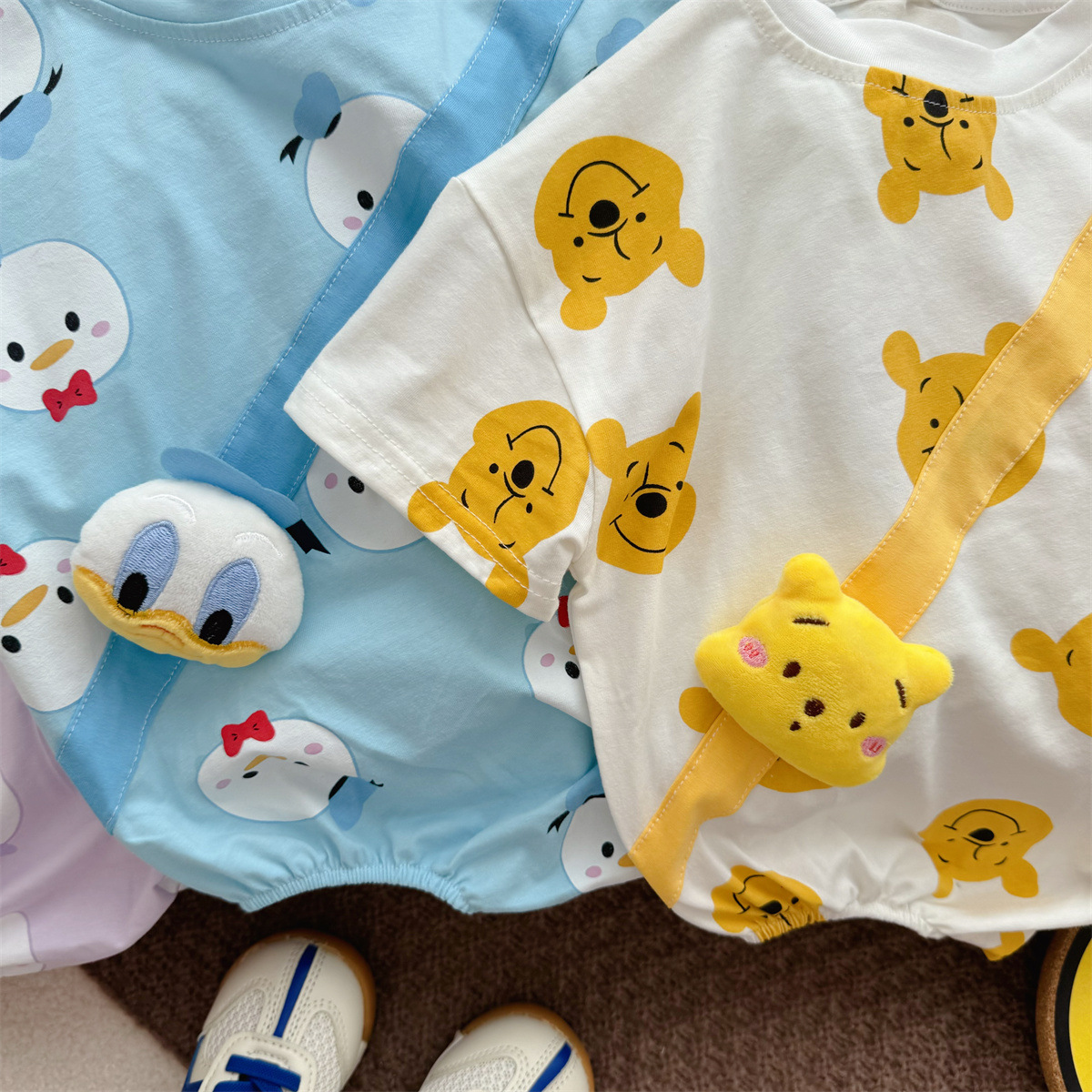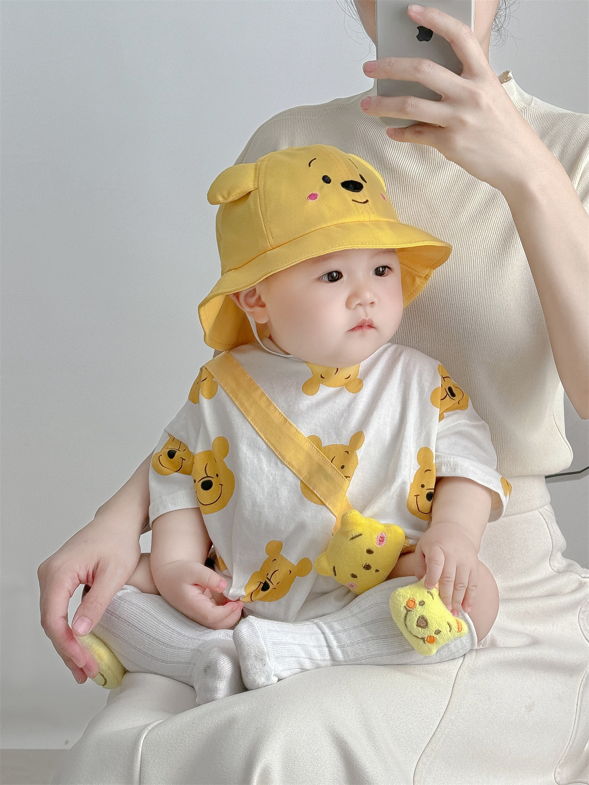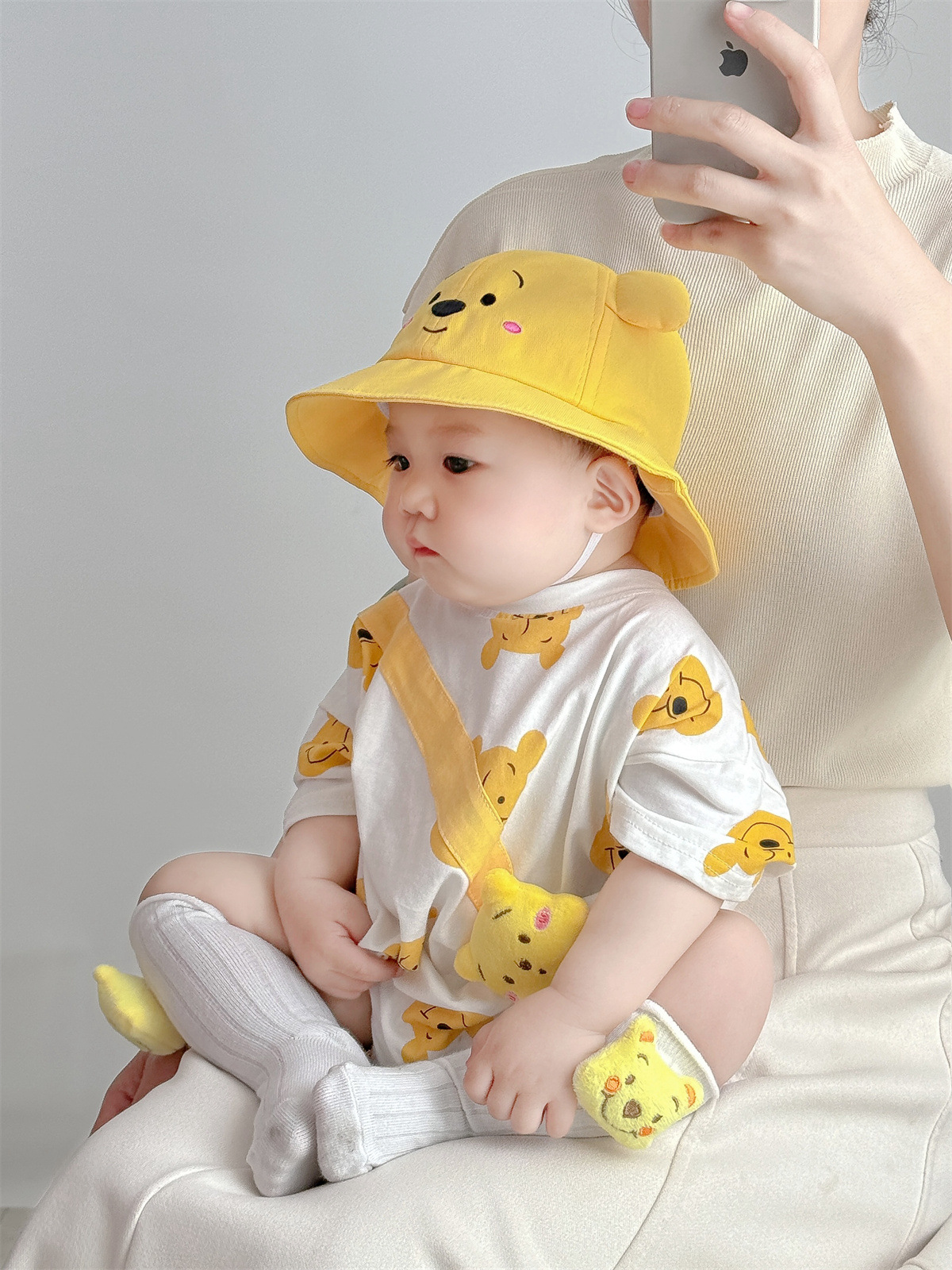 【套装秒杀价65.9】卡通维尼熊三角哈衣夏天柔软棉质宝宝哈衣套装