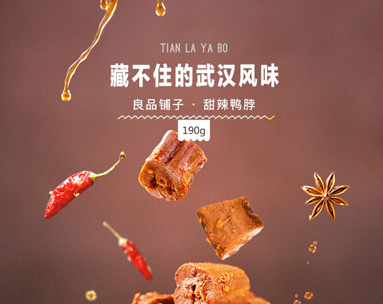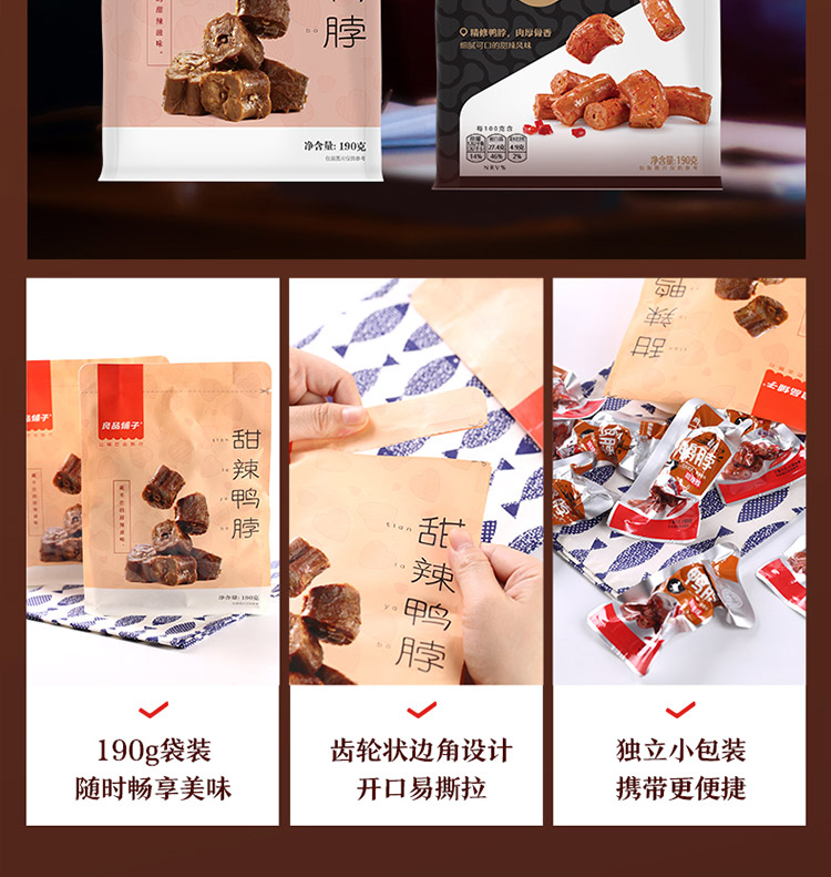 良品铺子高端零食 甜辣鸭脖肉类网红零食麻辣鸭脖子休闲零食小吃190g*1