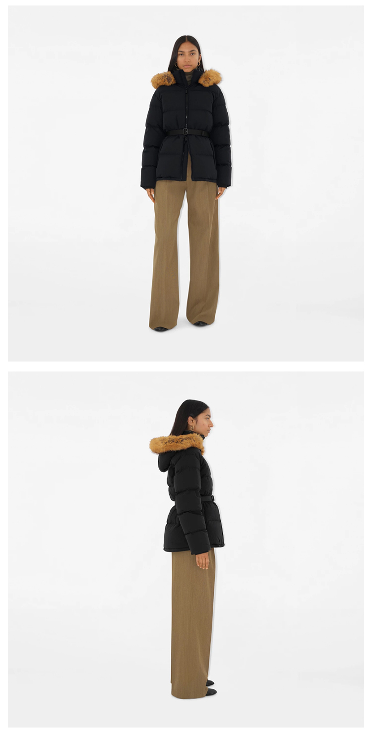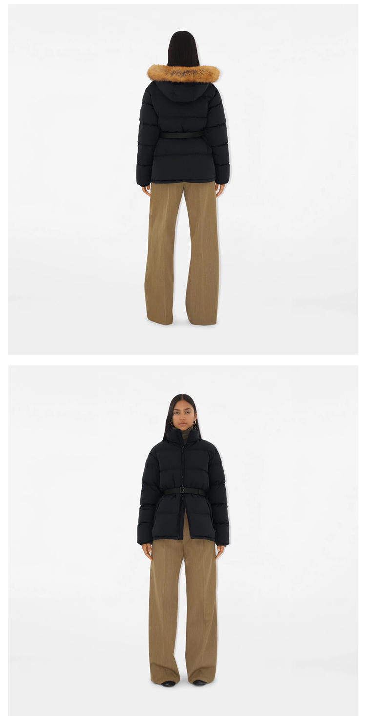 BURBERRY 巴宝莉 女士“B”字徽章尼龙连帽羽绒服 黑色 8096910 C1307