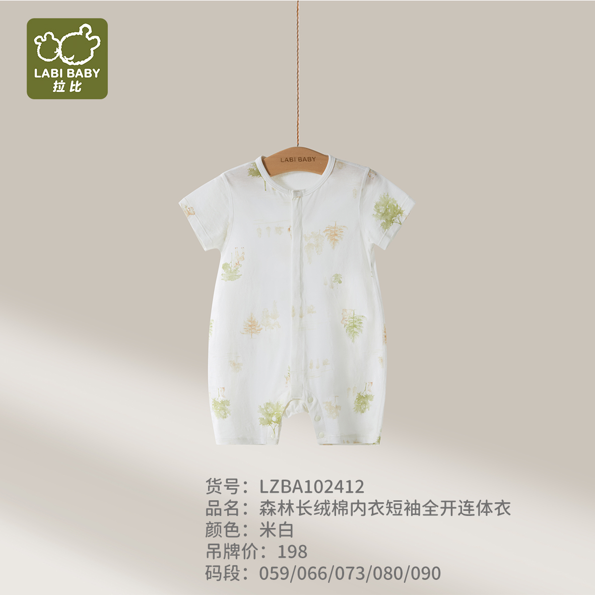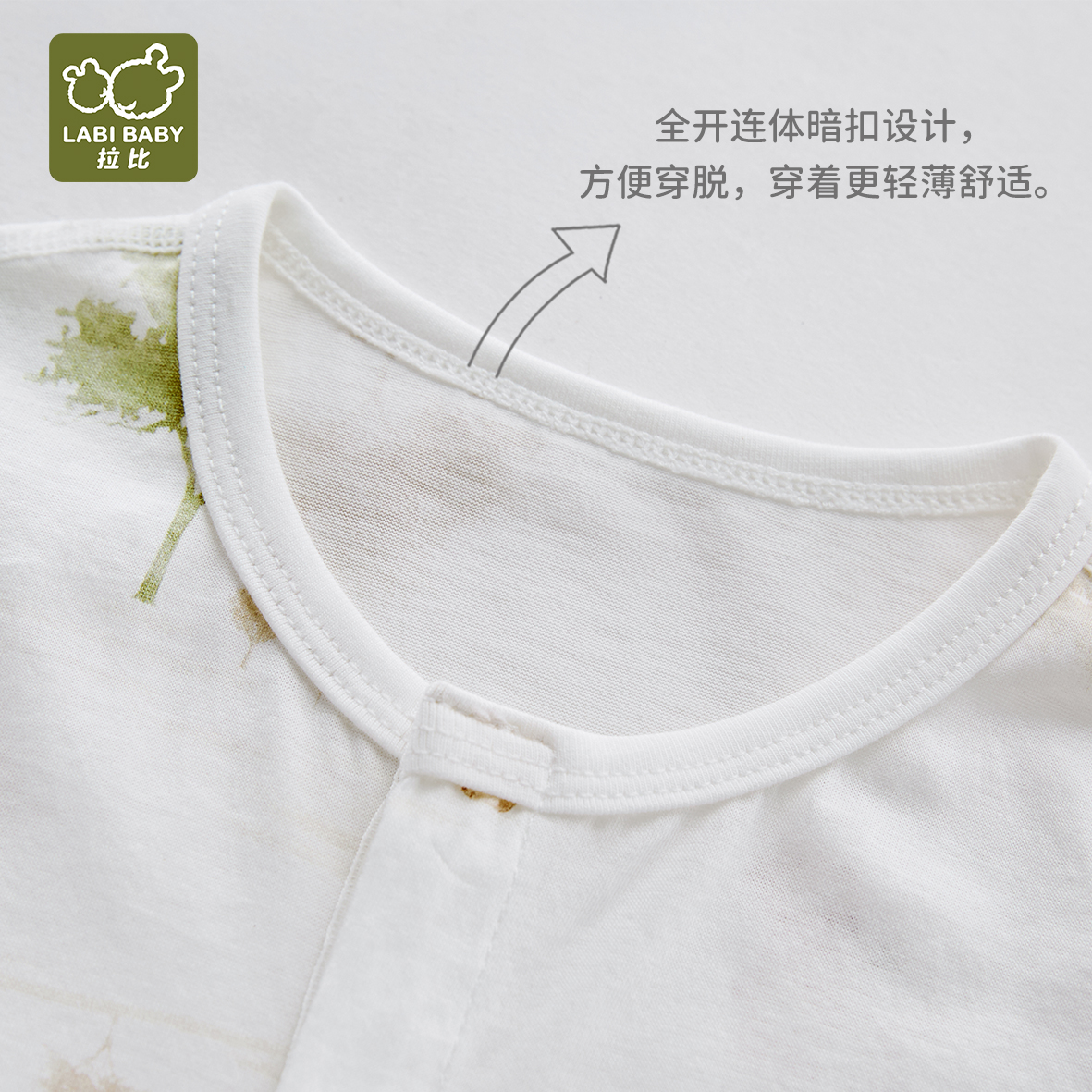 拉比内衣夏森林长绒棉内衣短袖全开连体衣j6LZBA102412