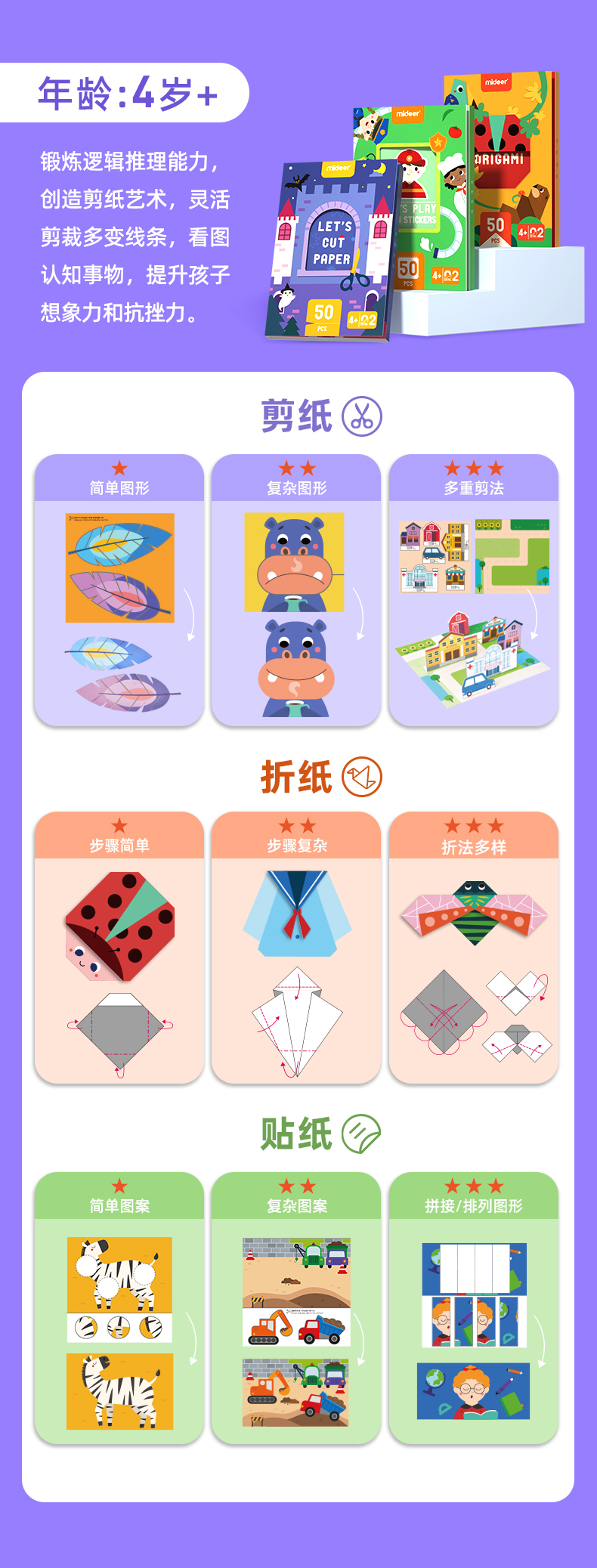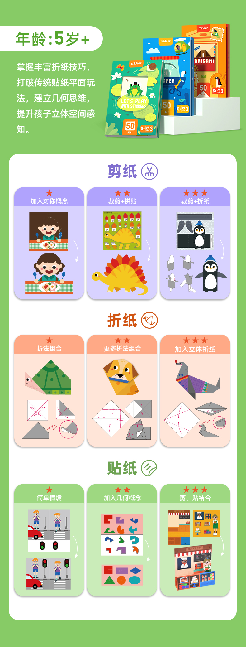 mideer弥鹿儿童手工剪纸折纸幼儿园立体制作diy益智3-6男女孩玩具