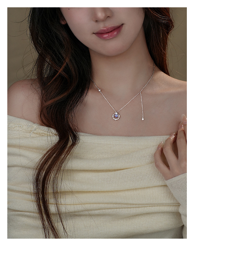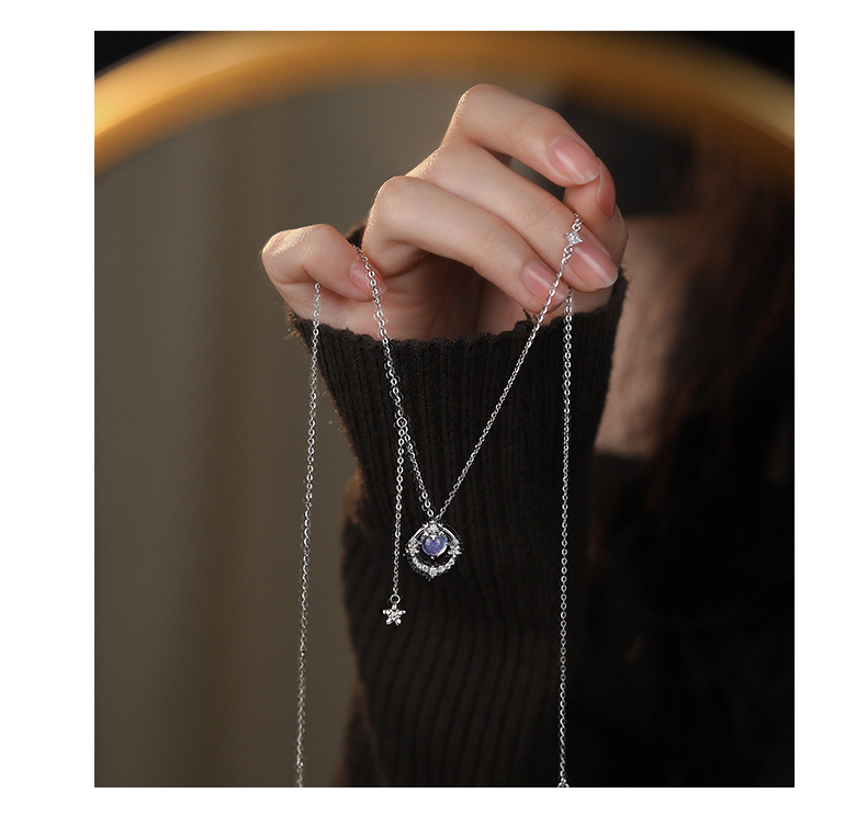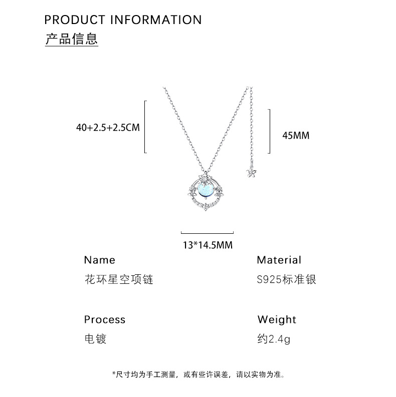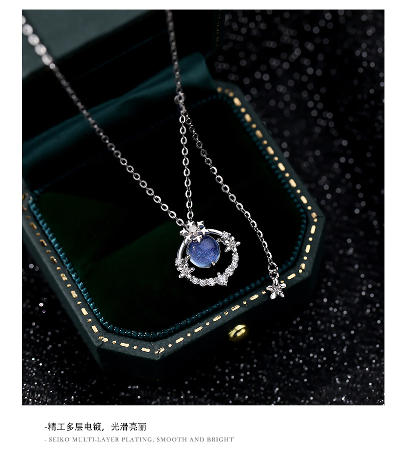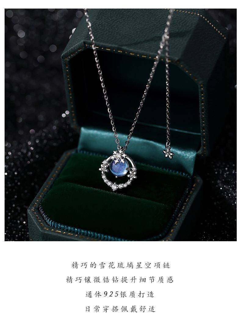 【沐雪】S925银蓝色琉璃石雪花花环项链【YXS-YA0426】