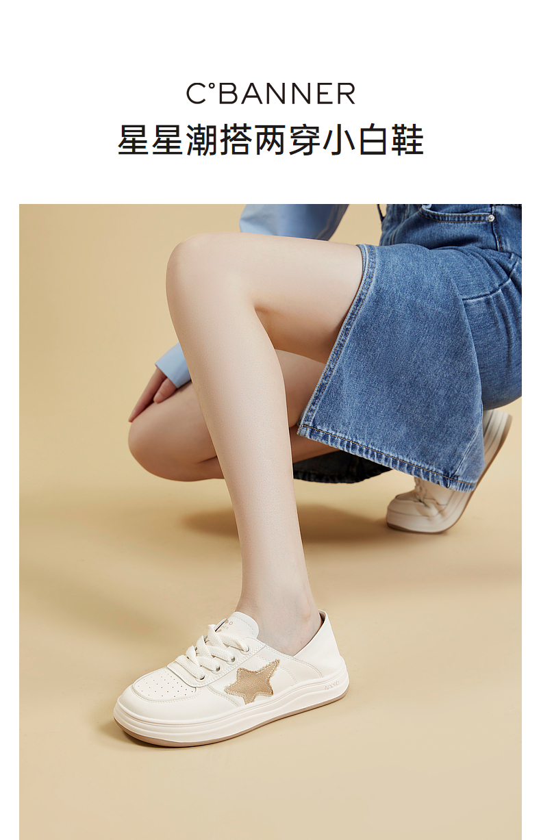 千百度复古板鞋女鞋春季两穿小白鞋百搭时尚休闲运动鞋A24113686
