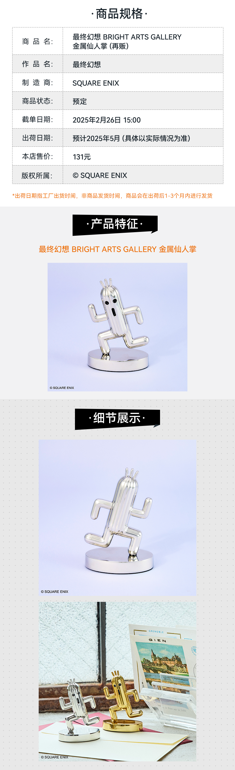【GSC现货】最终幻想 BRIGHT ARTS GALLERY 黄金仙人掌/金属仙人掌/陆行鸟