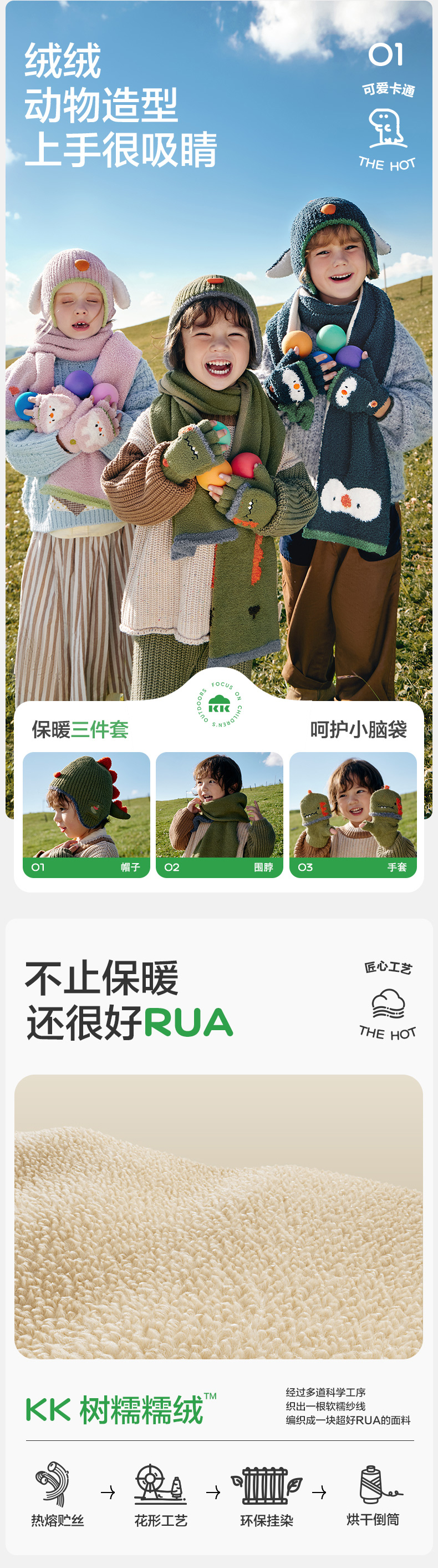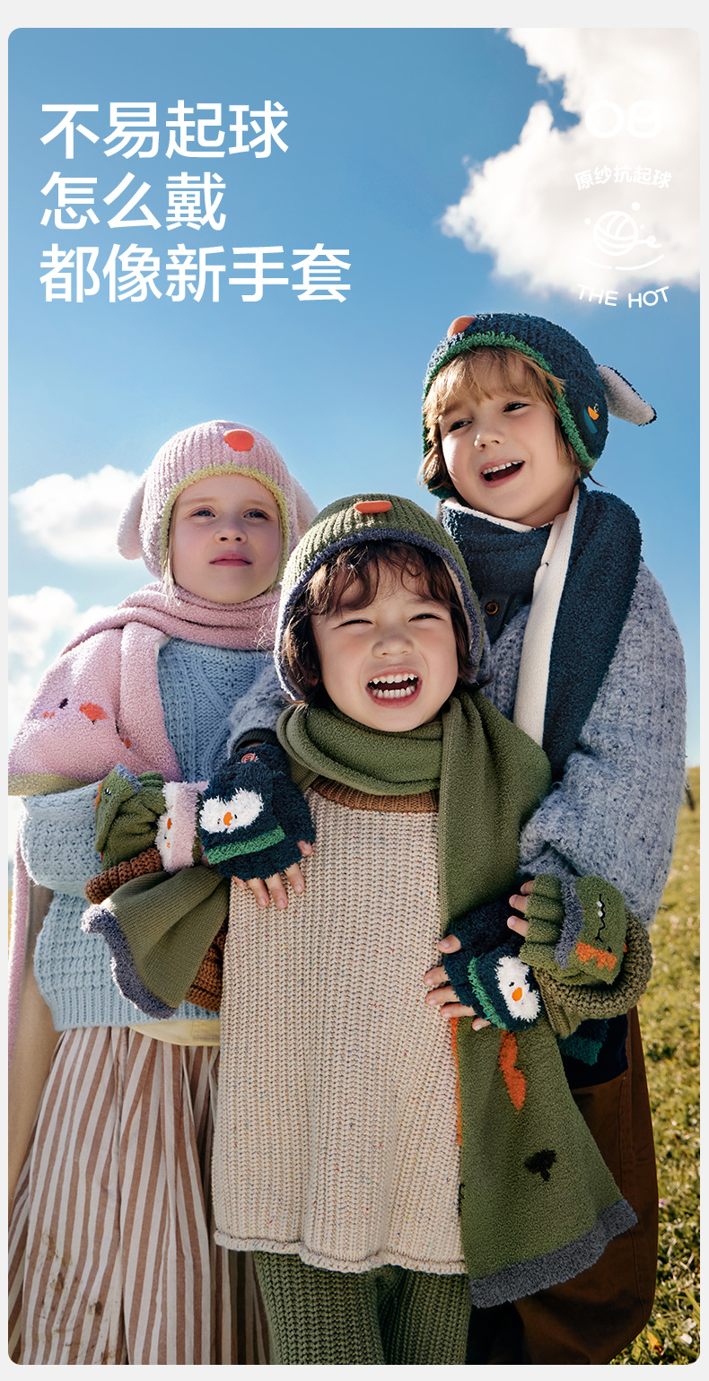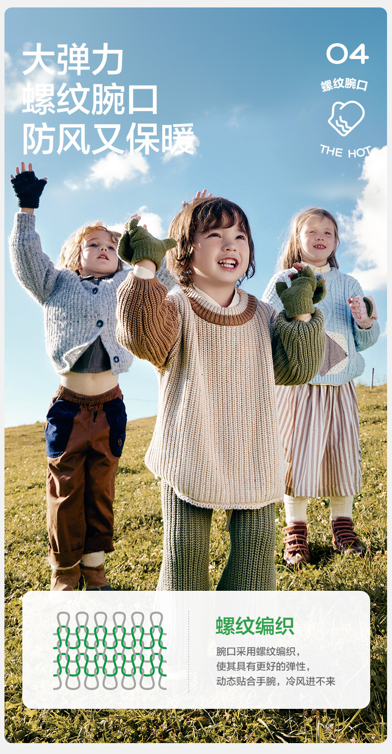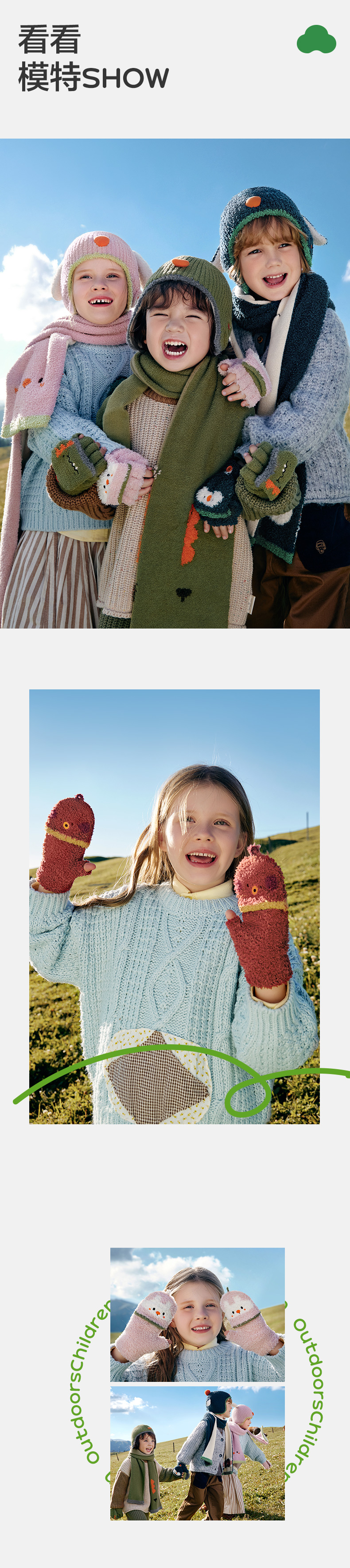 KK树儿童手套秋冬季男女童半指翻盖原纱保暖半边绒小学生写字手套超好rua翻盖手套