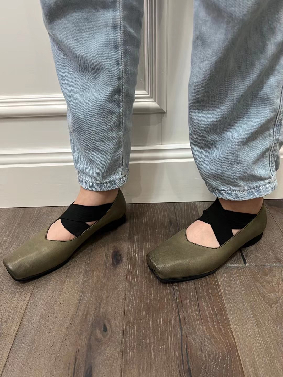 有赞上新88-6:Uma经典款 复古做旧 交叉松紧带 芭蕾舞鞋,专柜一上全部断货,难买程度堪比GUDI稀有。浓浓的芭蕾舞团的艺术气质,复古做旧的绿野仙踪feel,神秘艺术且高级感满满。整体超级软,软糯如袜套的感觉,减龄时髦,独特高冷。暗黑系芭蕾舞鞋,高端的手工鞋要的就是味道。599特