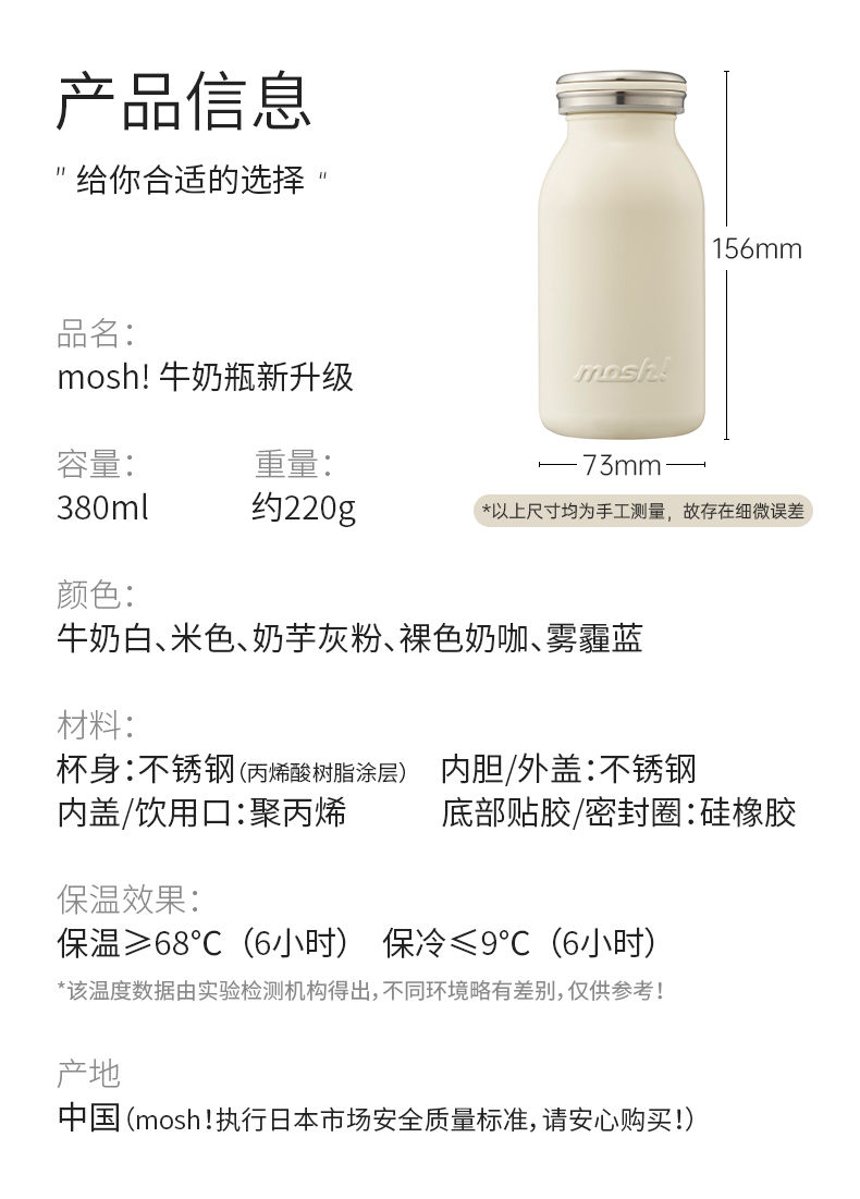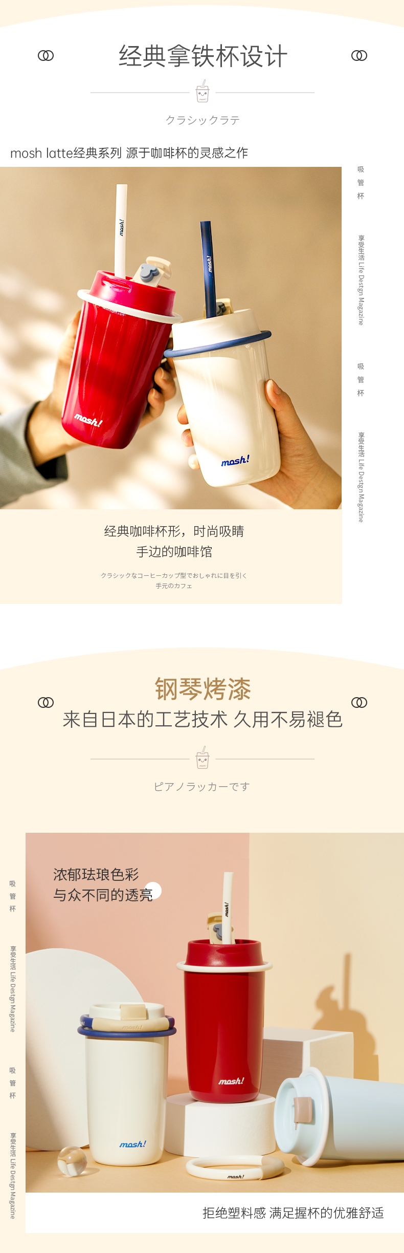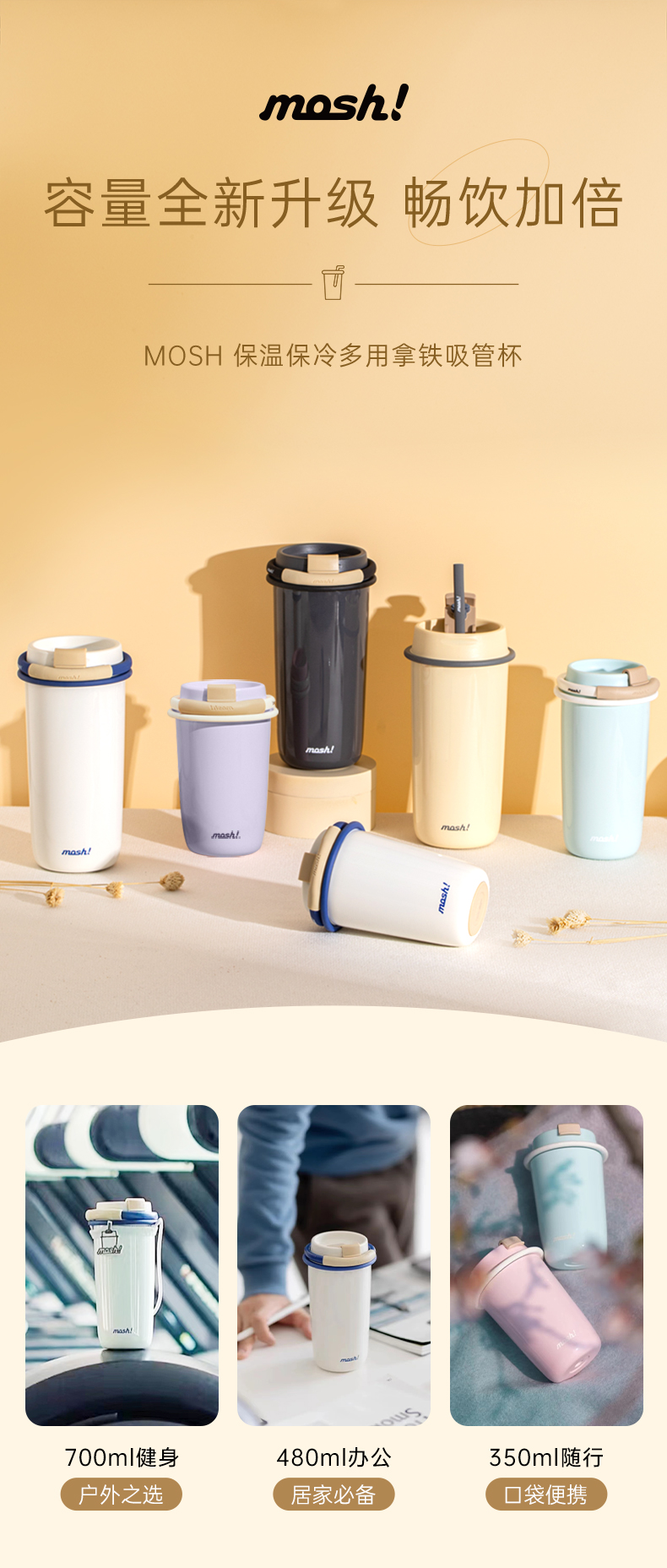 mosh!保温保冷便携水杯吸管/直饮/牛奶杯