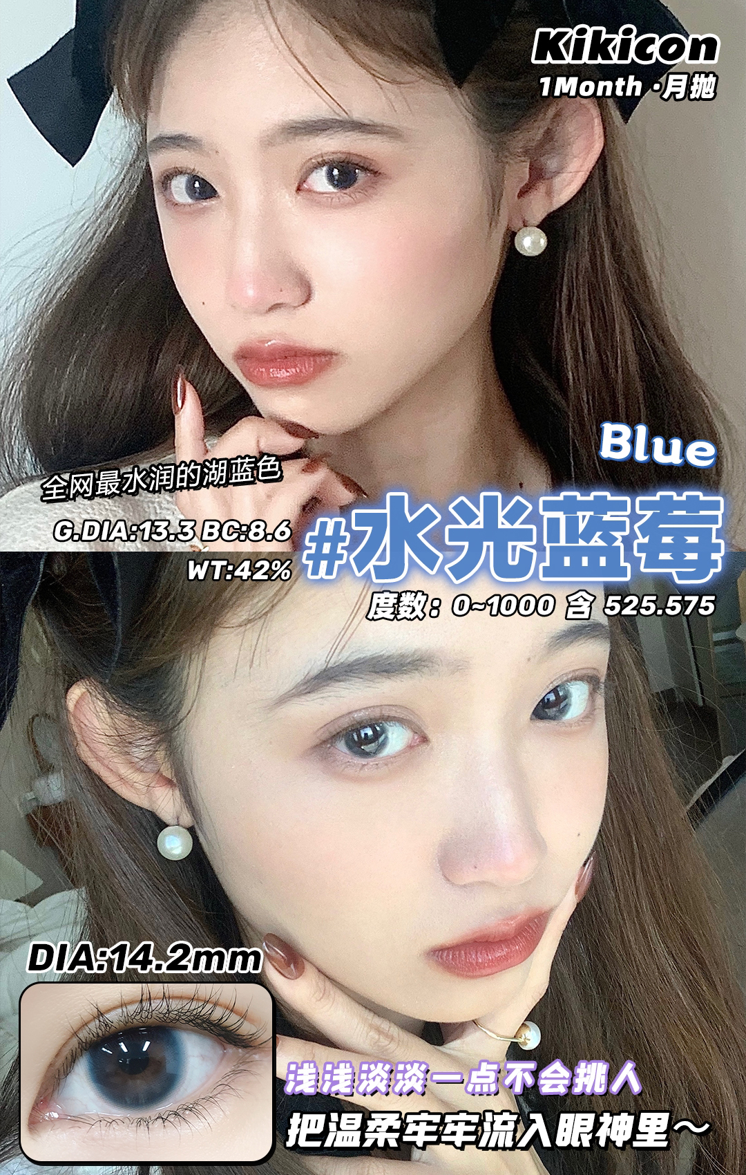 kikicon 月抛 水光蓝莓 14.2mm