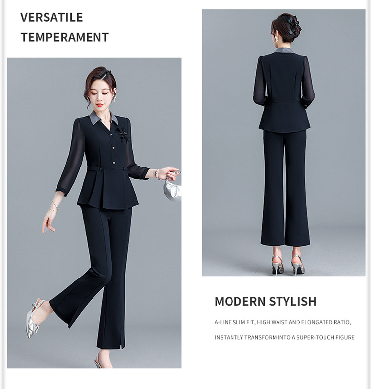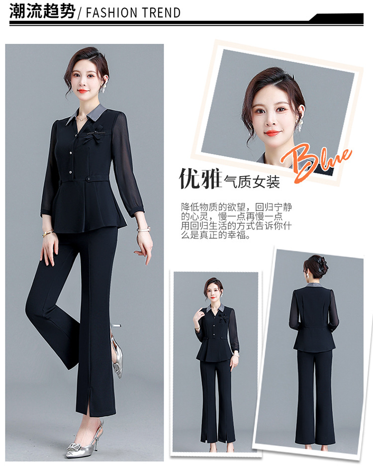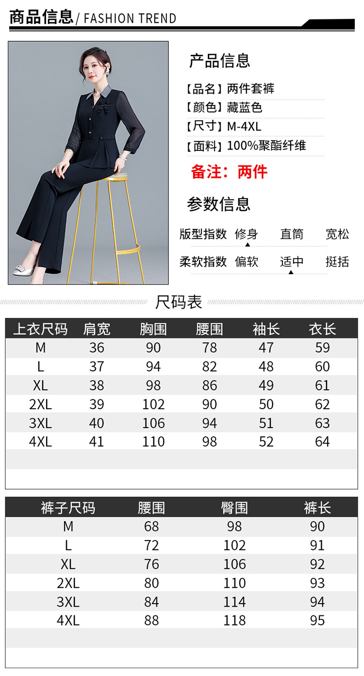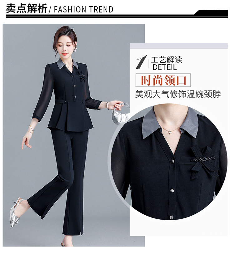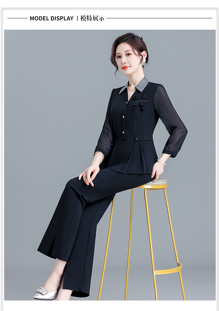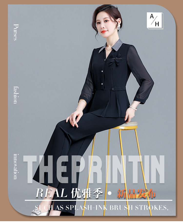 POLO领九分袖修身时尚小衫休闲气质微喇裤两件套QYM-AH-23A1654-L