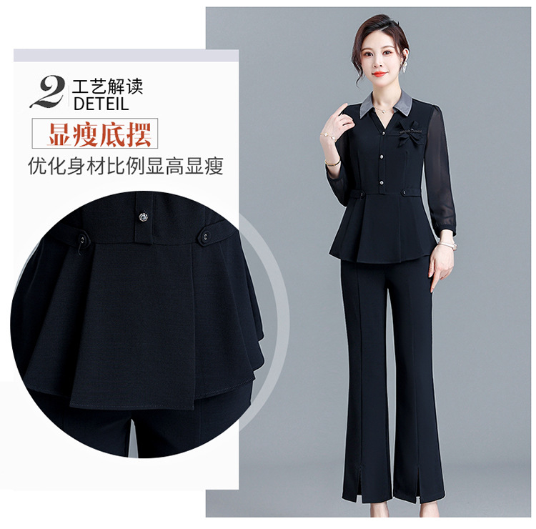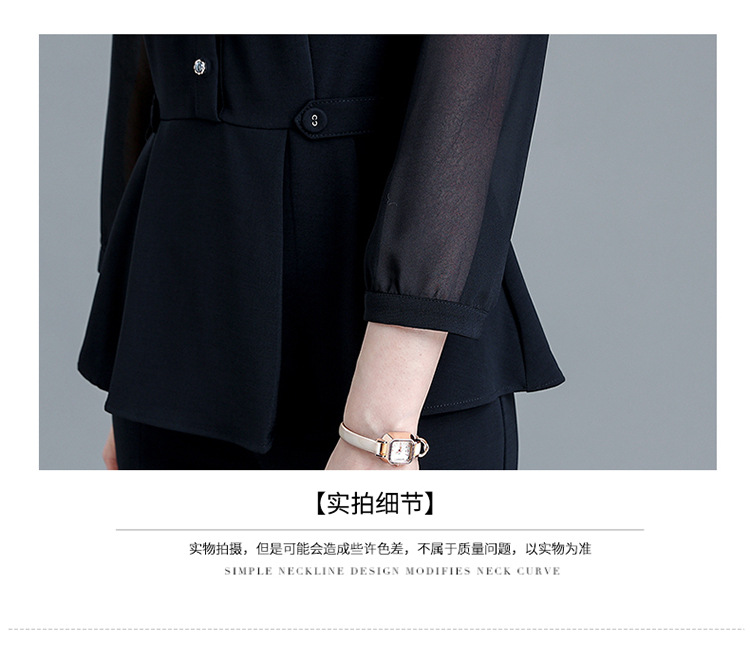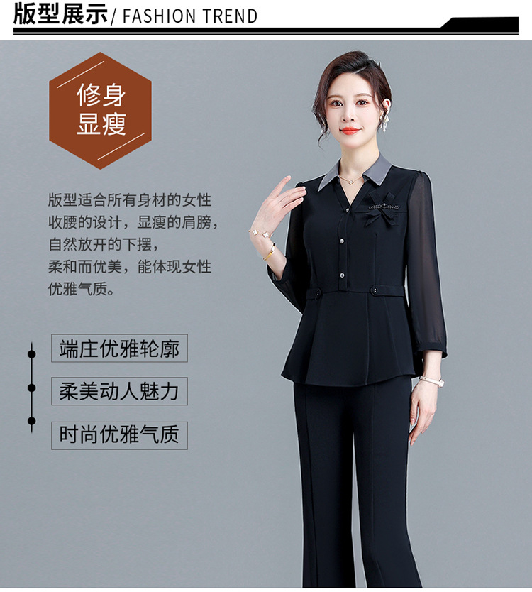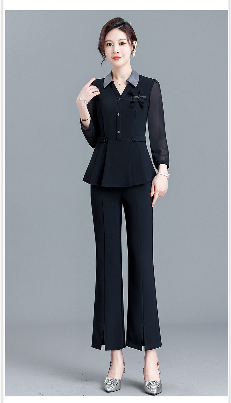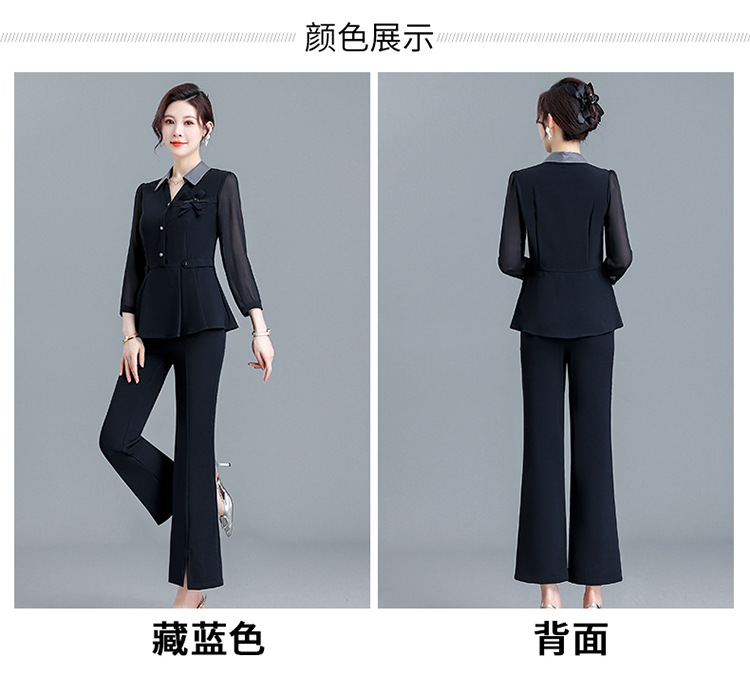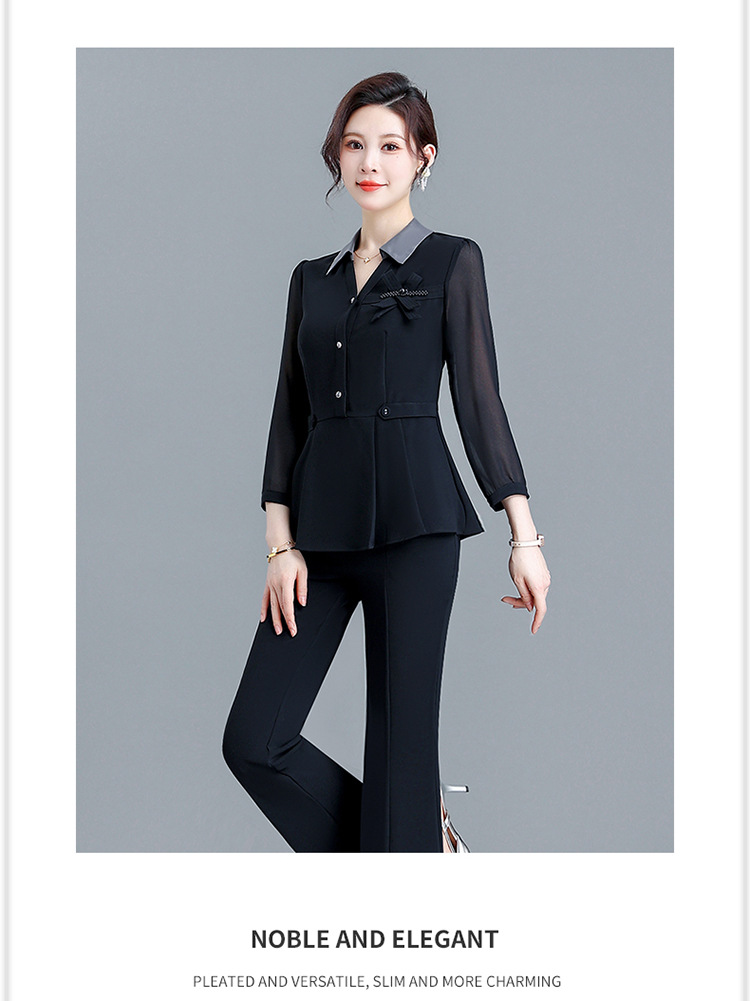 POLO领九分袖修身时尚小衫休闲气质微喇裤两件套QYM-AH-23A1654-L
