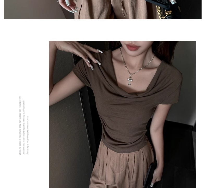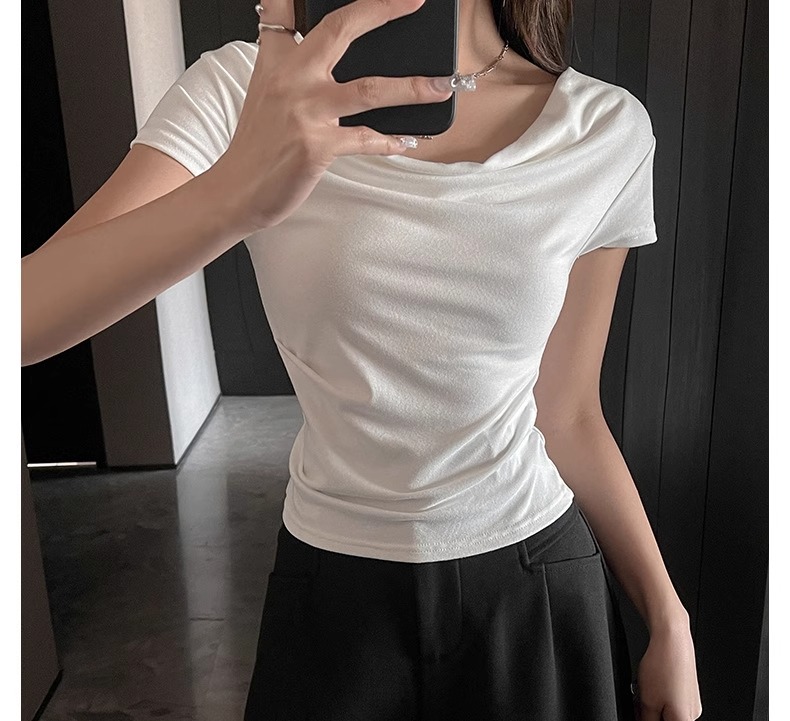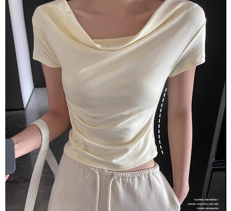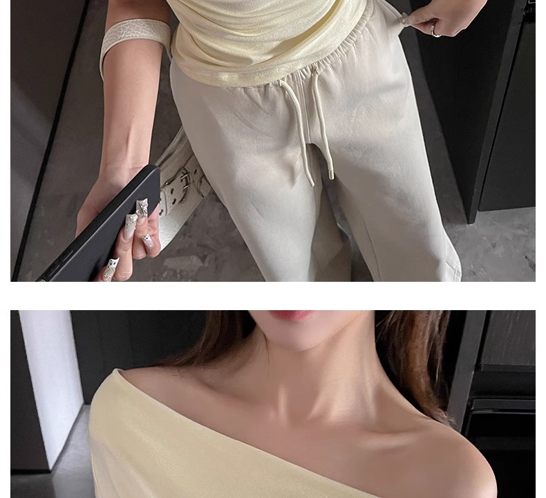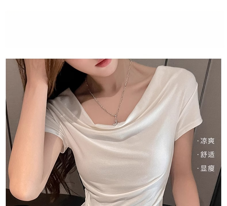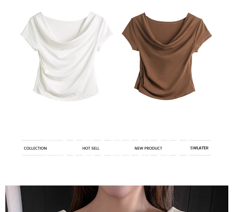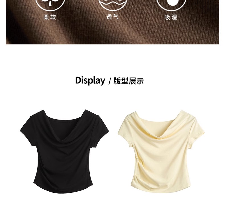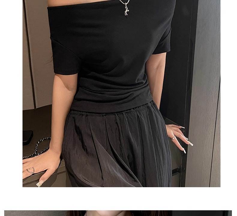 (49元限时秒杀价,一衣多穿 超高品质!) 严选纯色高级感法式荡领一字肩短袖t恤女夏季休闲露肩气质上衣