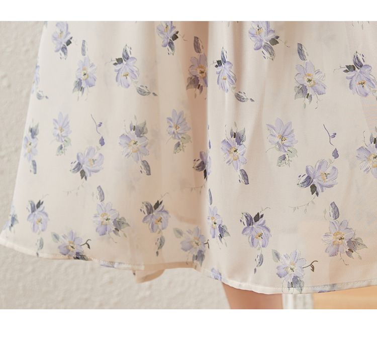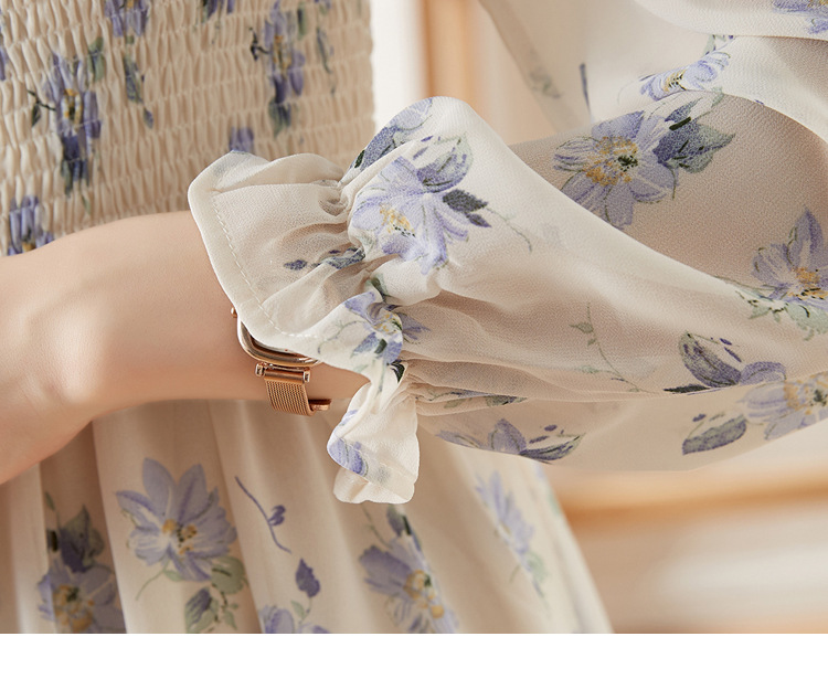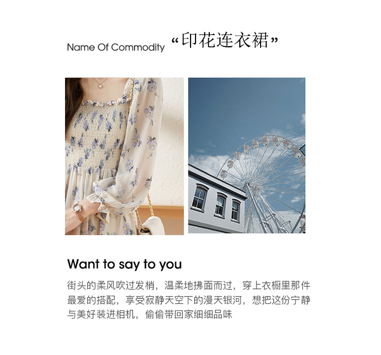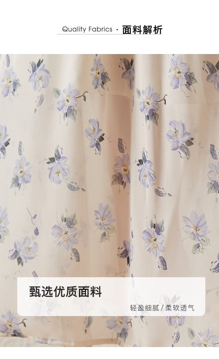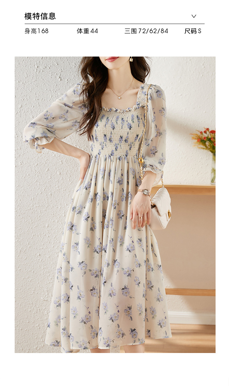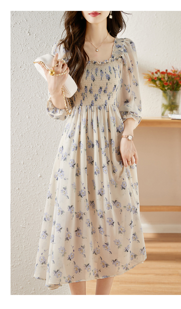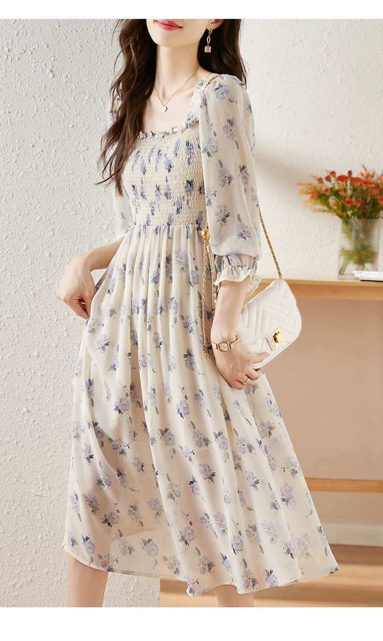 甜美法式雪纺碎花连衣裙长款2022秋新款设计感小众方领裙子 DL1922