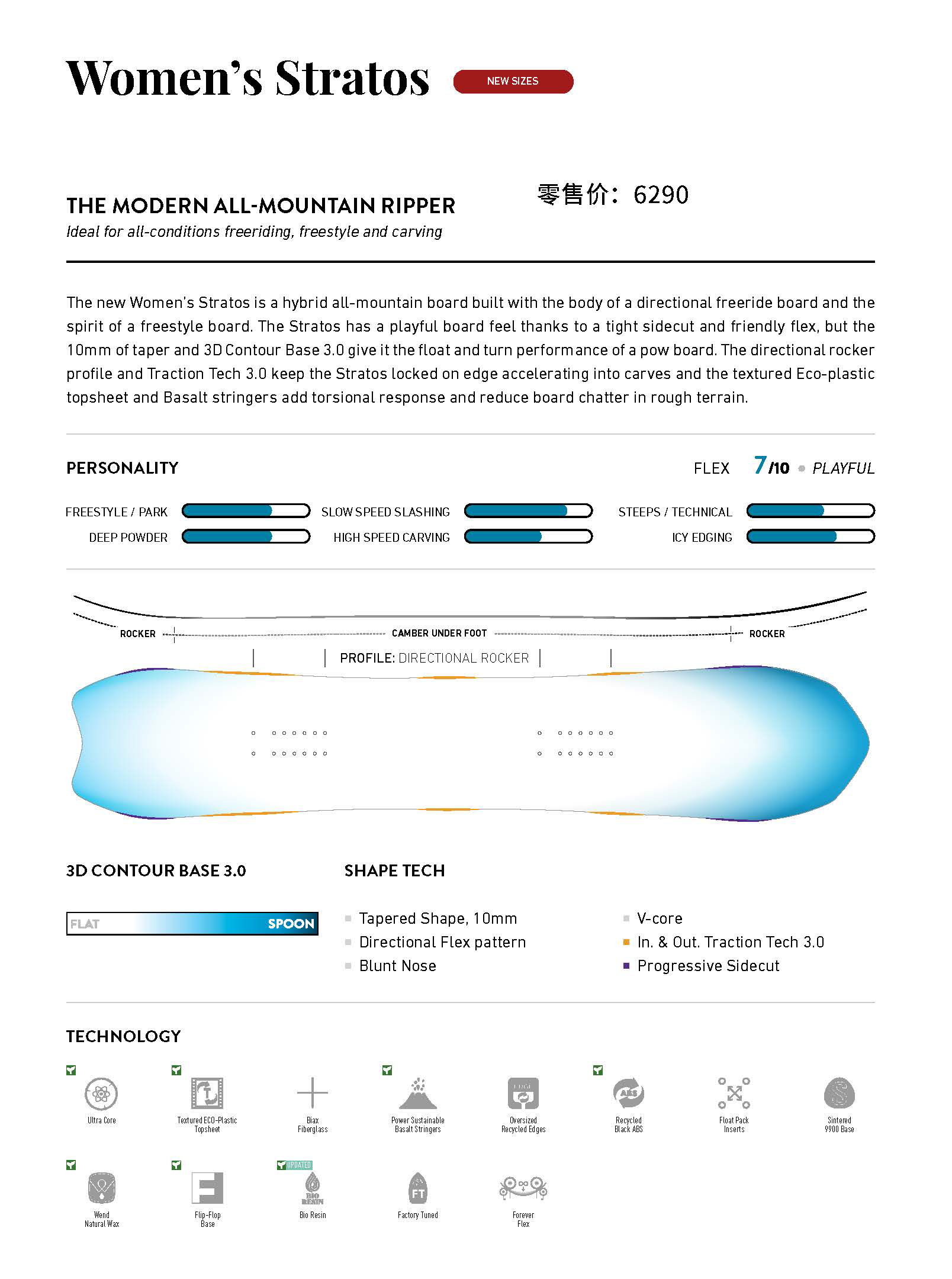 Jones 22-23 Women's Stratos 新款女板 143 146 单板雪板