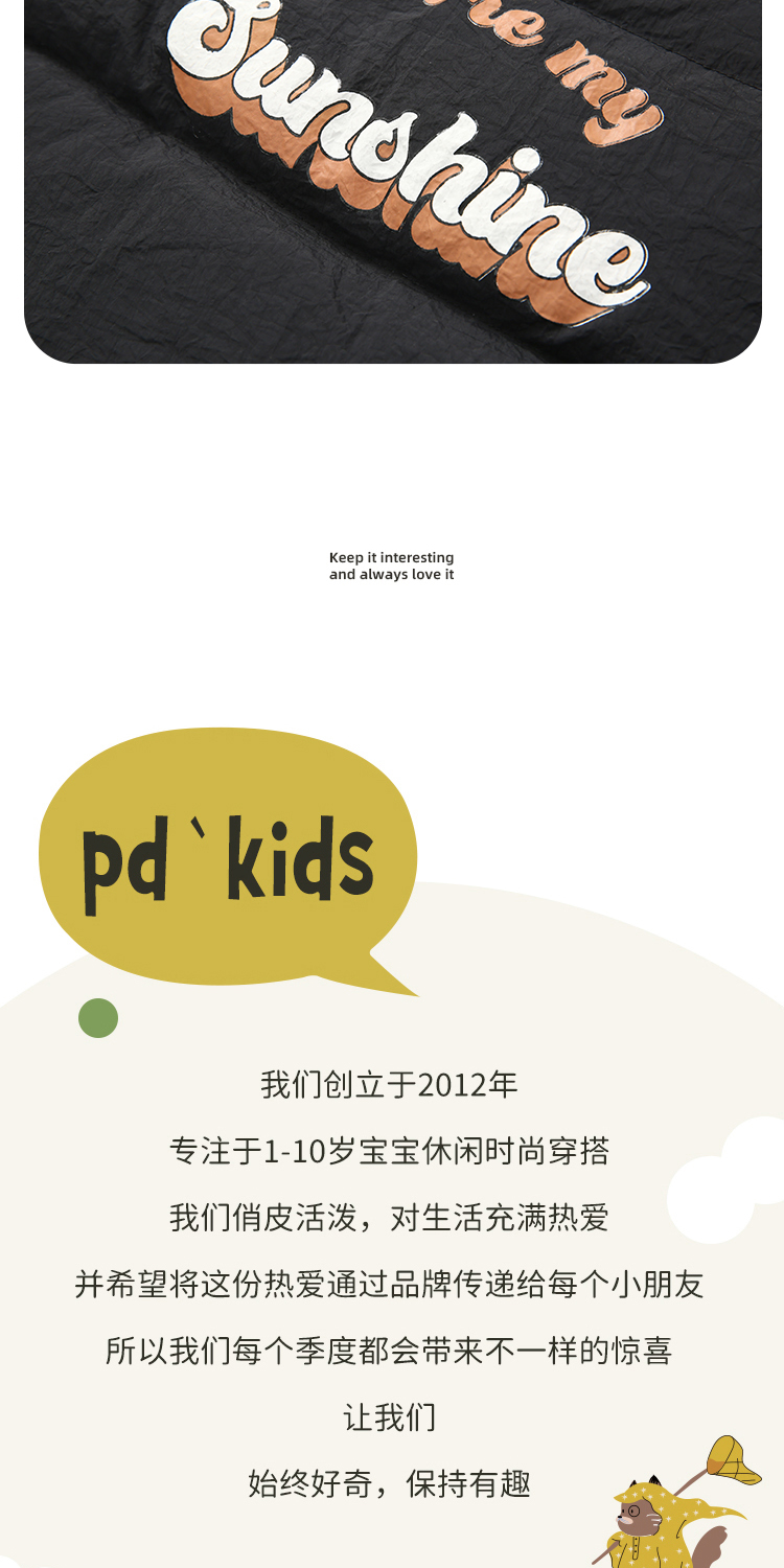 - Purrfect-Diary专注于贴近自然随性的穿着概念,轻奢平价的童装文化传播,在产品设计上更加注重婴童穿着的舒适性、安全性、更出众的国际化品牌,将欧美的育婴文化在中国进行深入的传播与推广。